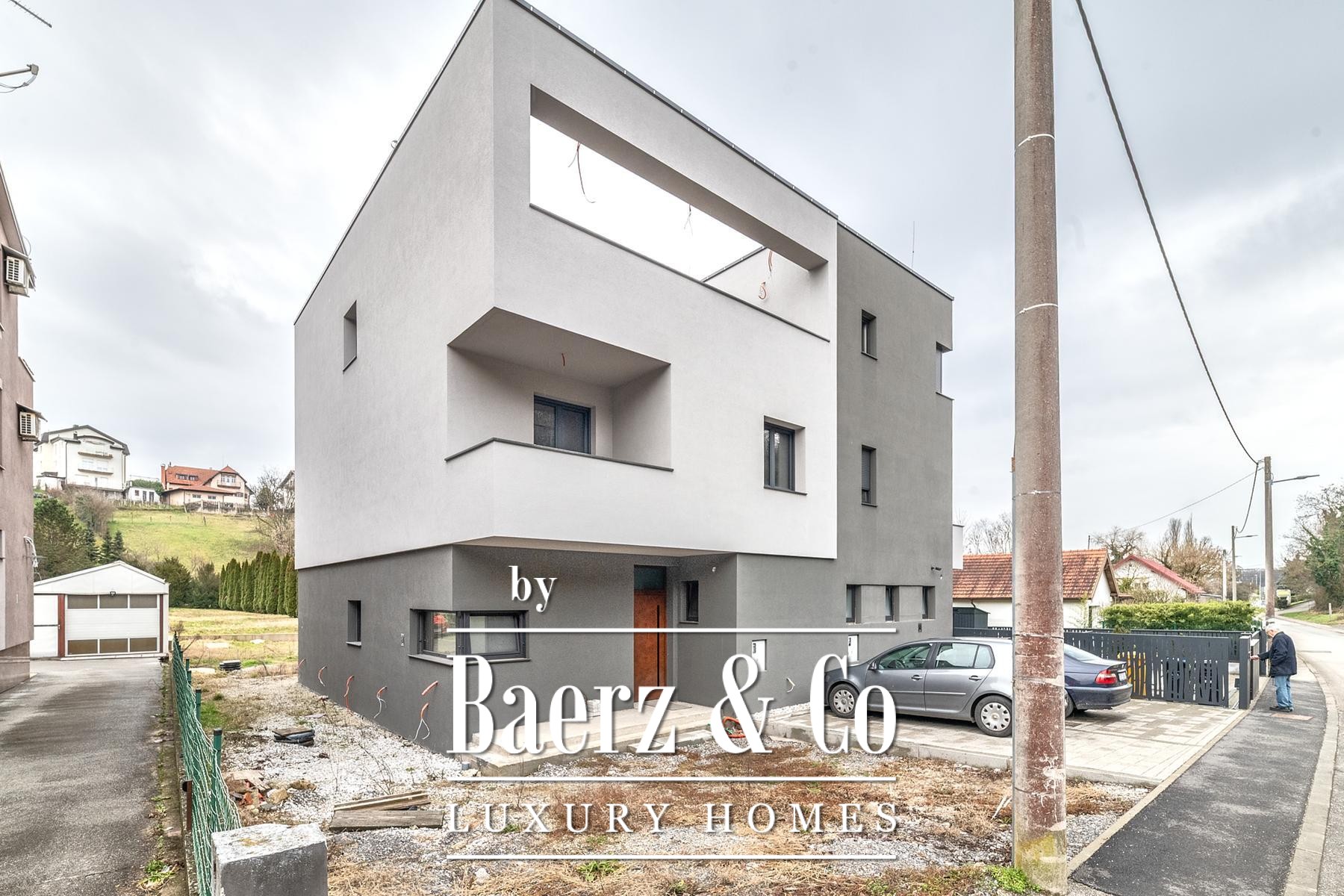 Schüco PVC joinery further enhances insulation and quietude. Set on a 300 m² plot, the property balances peace and community, with good access to central Zagreb and the essential amenities nearby. This luxury semi-detached house for sale in Maksimir offers a combination of privacy and proximity, underscored by discreet garden spaces and an understated architectural solidity.