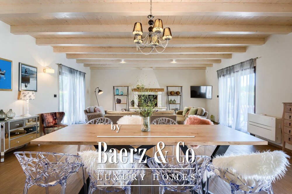 Villa Marčana stands on the edge of a tranquil Istrian village, reflecting the region’s serene pace and distinctive landscape. This villa in Marčana offers 280 m² of refined living space set within a landscaped 2800 m² garden. Inside, an expansive ground floor features an open-plan living area with a fireplace, a fully equipped kitchen, and a dining room, seamlessly designed for social gatherings. Two bedrooms on this level each come with separate bathrooms, complemented by a games room complete with billiards, darts, a bar, and a second dining area.