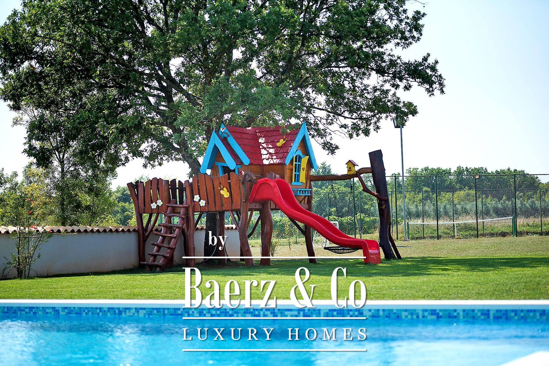 A dedicated wellness room with a sauna and heated hydromassage pool fosters relaxation after a day of activity. This villa in Marčana is close to the Adriatic coast, offering both privacy and access to the sought-after amenities and beaches of Istria. An additional 2000 m² of adjoining construction land is available for those interested in future expansion.