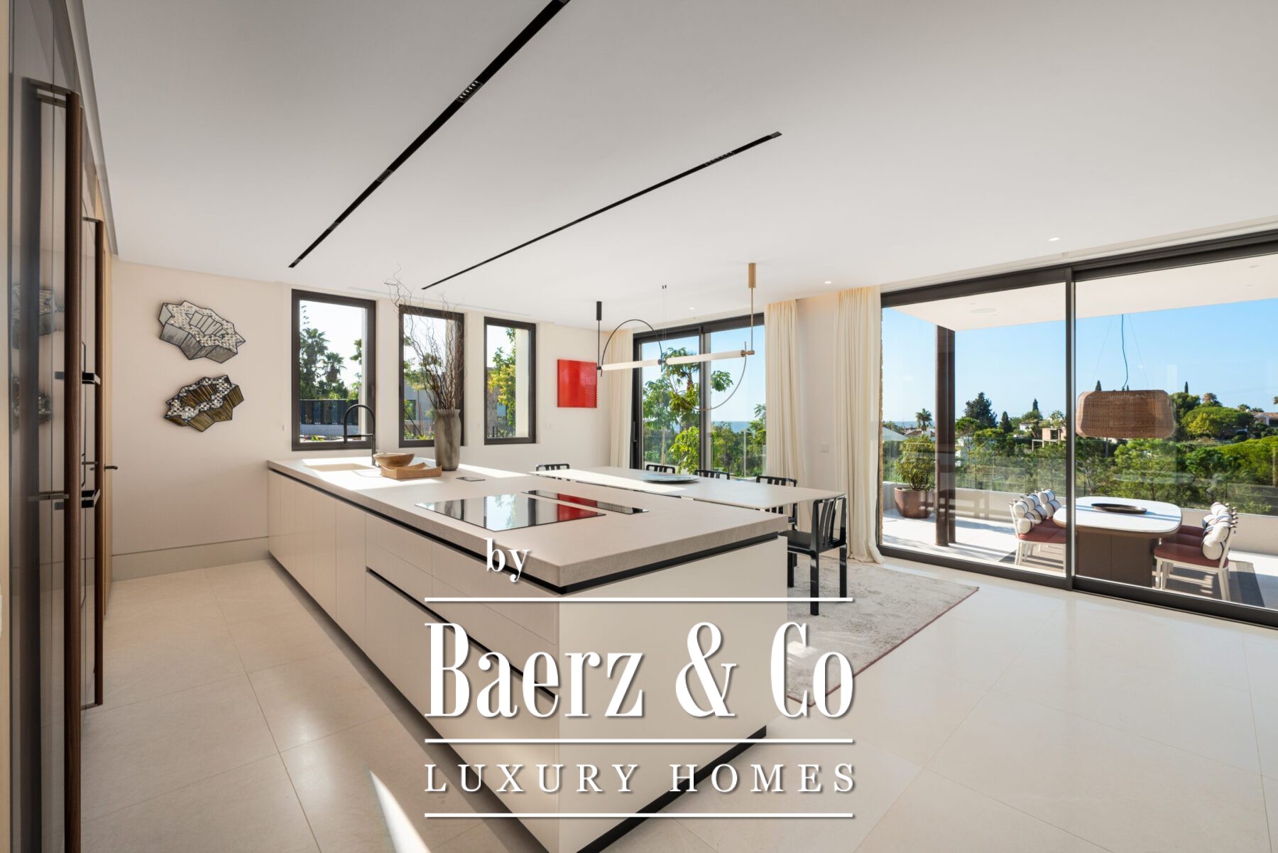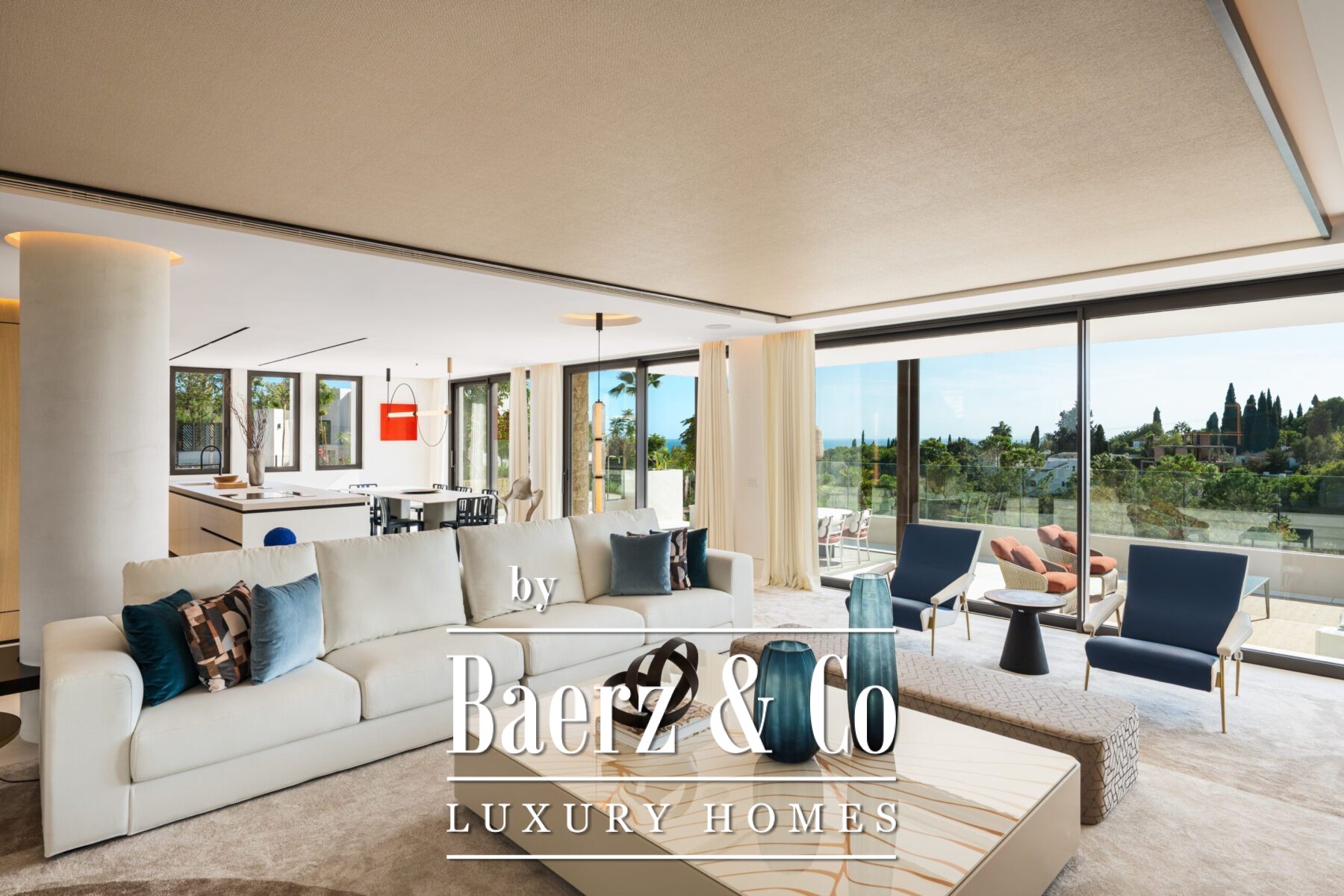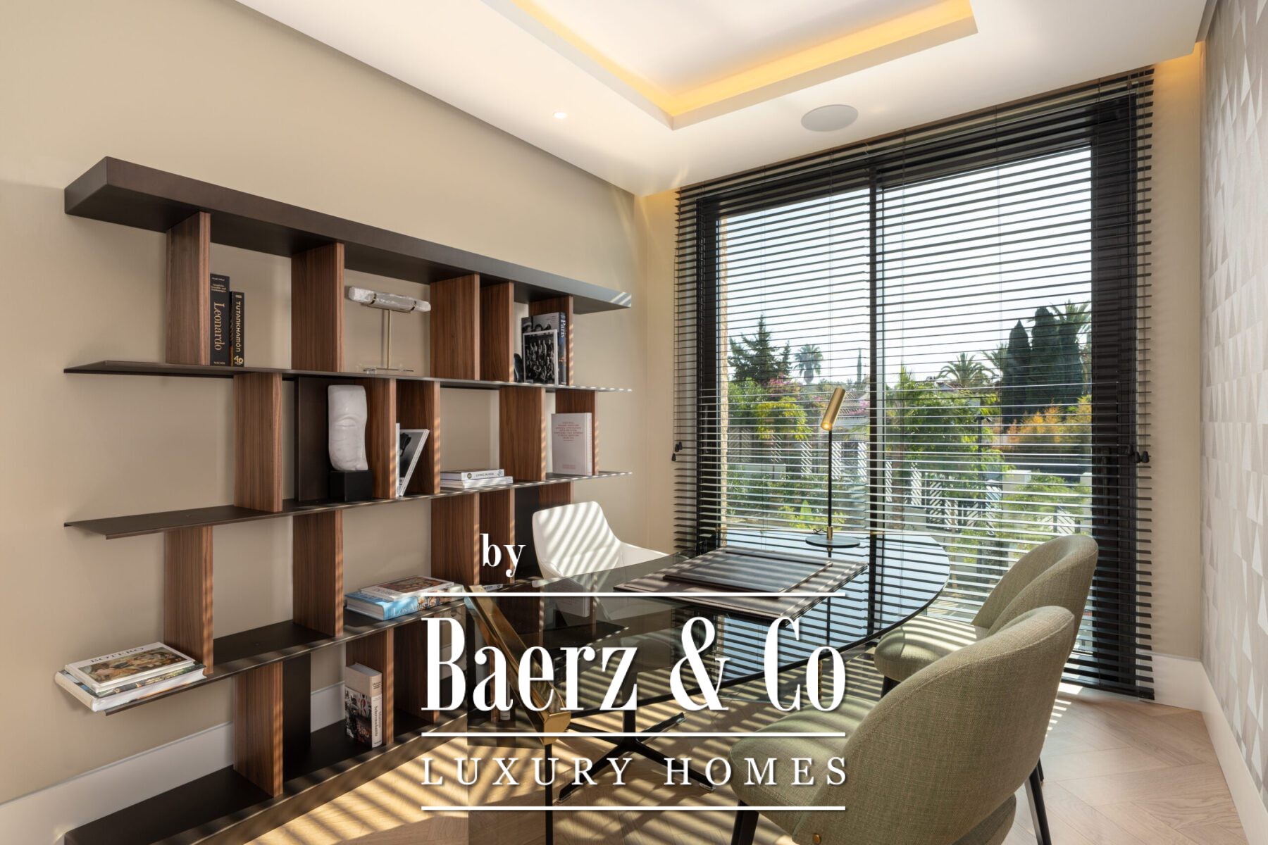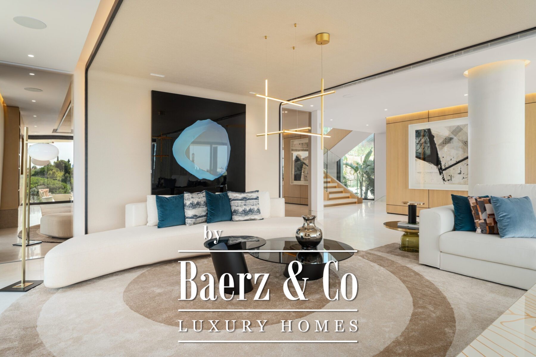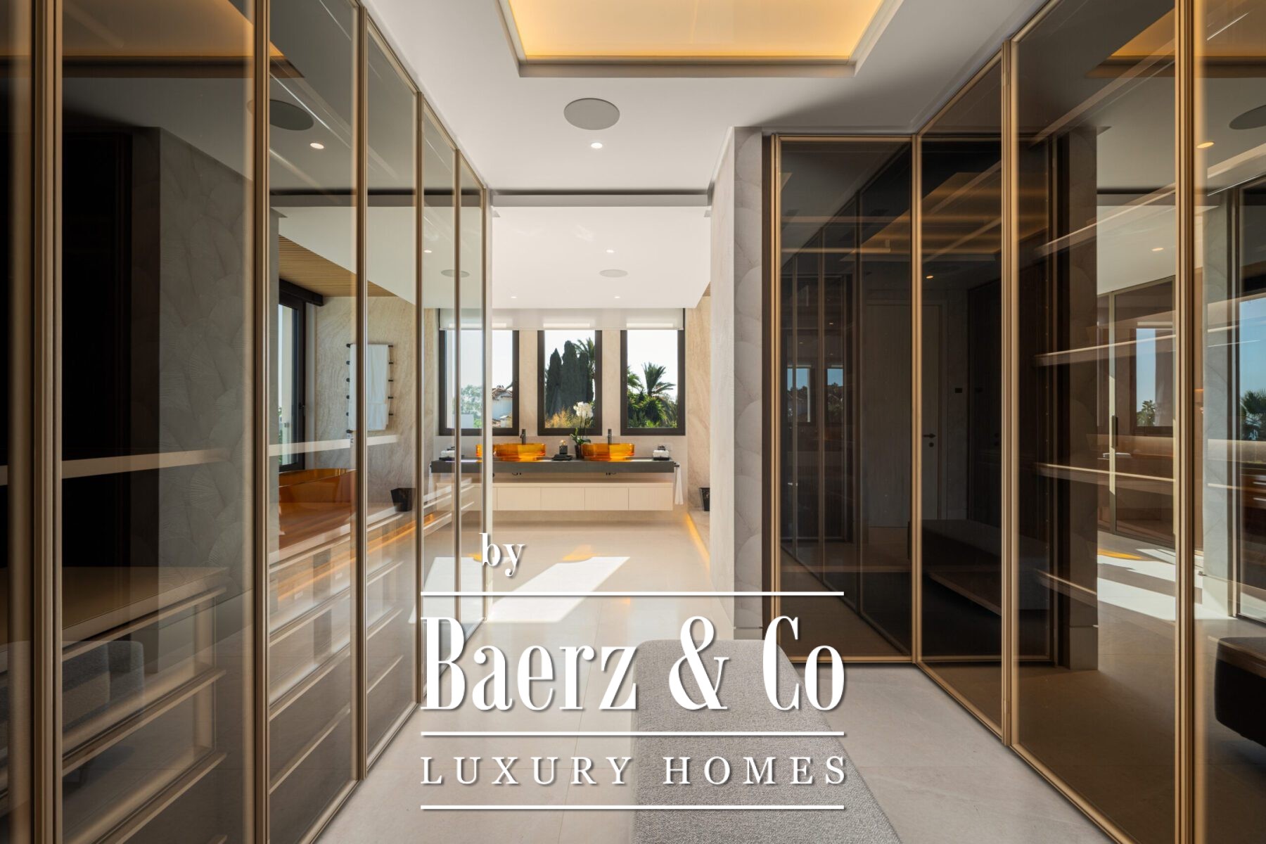 Above, the master suite commands sweeping views and includes a walk-in closet, refined bath, and its own terrace retreat. An additional guest suite and a tranquil home office complete the upper floor, with an elevator linking each level. Brand new, secure, and fully serviced with advanced amenities such as air conditioning, underfloor heating, 24-hour security, and private garage, this luxury villa for sale in Marbella Hill Club offers a rare synthesis of elegance and ease. Access to golf, the sea, and prime amenities is moments away, emphasising both the property’s privilege of location and immersive sense of place.