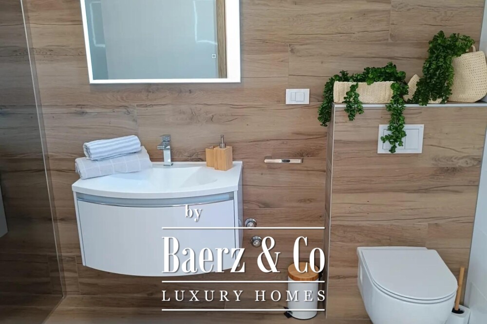 Central to the landscaped courtyard lies a 45 m² swimming pool, bordered by a sunbathing area, summer kitchen with barbecue, an outdoor shower, and a playground. Four parking spaces are conveniently positioned by the entrance. Floors throughout are finished in refined ceramics, with electric underfloor heating in bathrooms and inverter air conditioning in every room. Villa Medulin is presented fully furnished and is currently operated as a tourist rental, offering a blend of comfort, design, and discretion on the Adriatic coast.