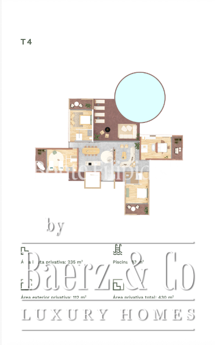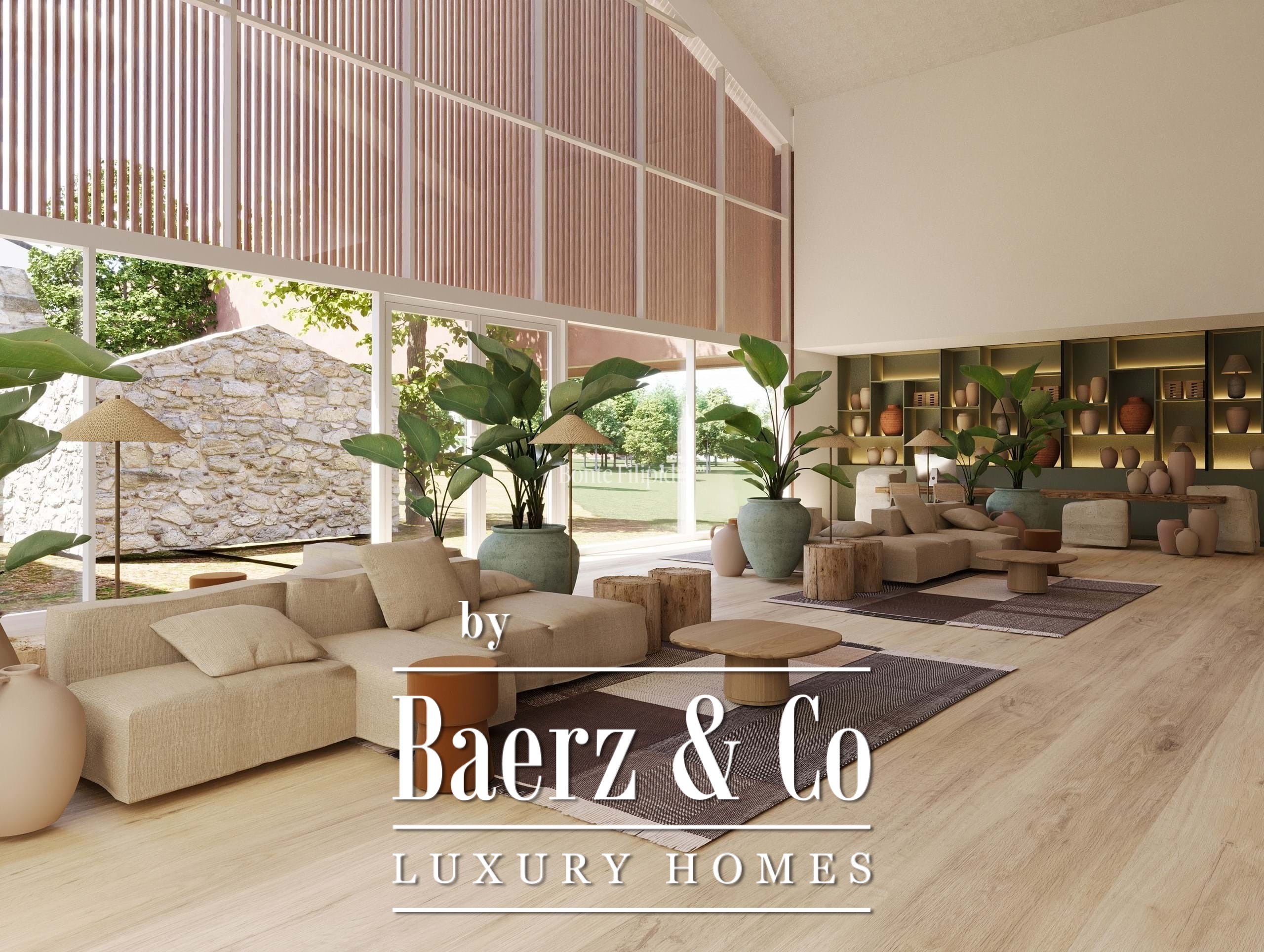 Large outdoor areas encompass 112 m², anchored by a private pool of 83 m², inviting extended afternoons in the sun or quiet mornings beside the water. Each residence is curated with considered materials, wood and stone lending a sense of authenticity and warmth, while architecture by WEWOOD balances functionality and refined style. Expansive terraces look out toward rural vistas, creating a retreat for contemplative breakfasts or evening gatherings in complete privacy.
