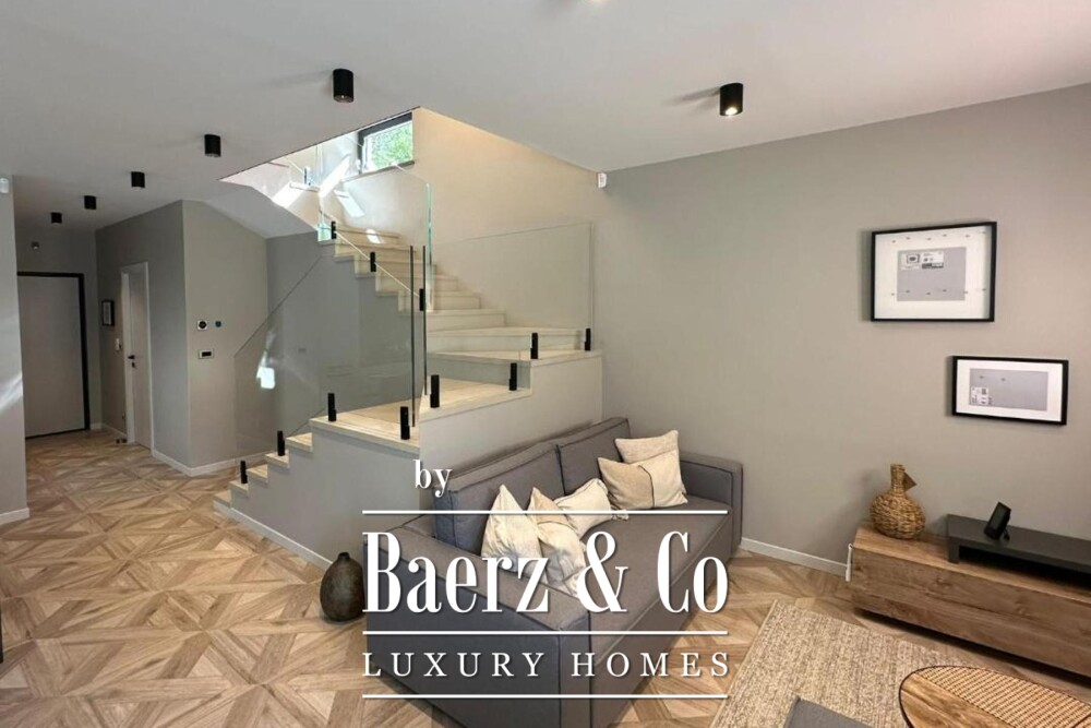 Upstairs, four bedrooms each offer their own private bathroom, with two enjoying direct access to a generous balcony. Completed in 2024, this villa Mošćenička Draga presents quiet contemporary living for those seeking long-term discretion, refined quality, and the ease of proximity to the sea.