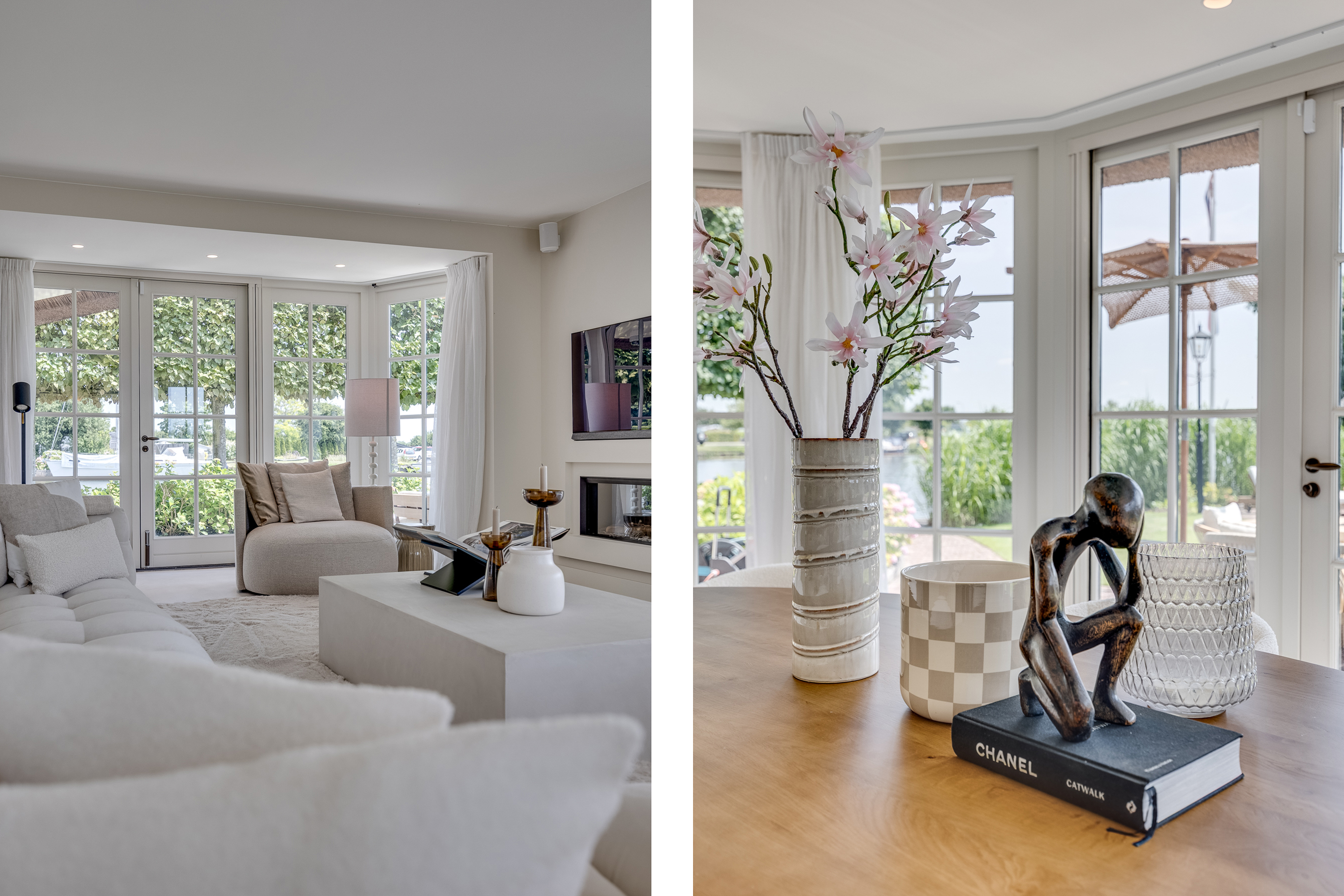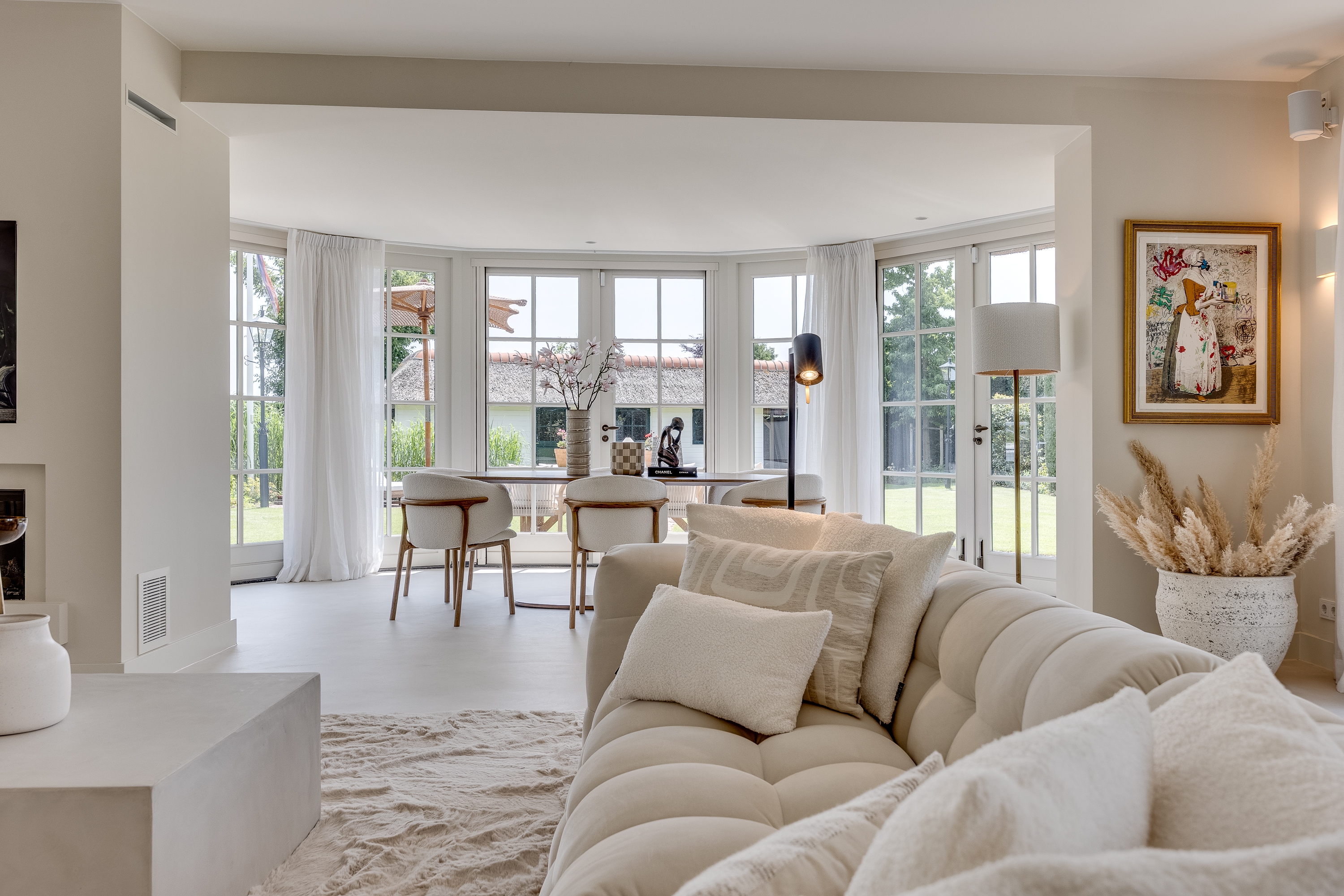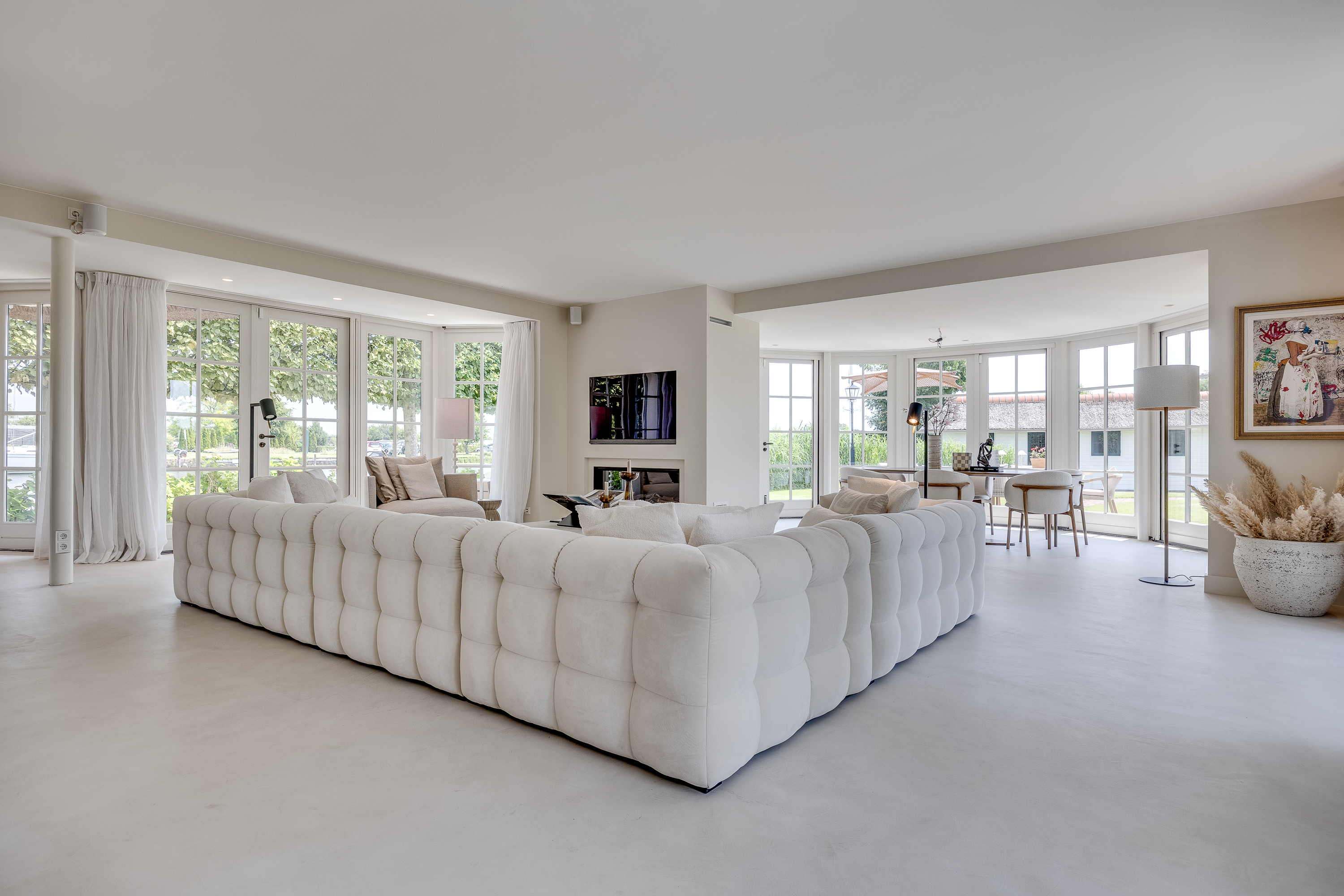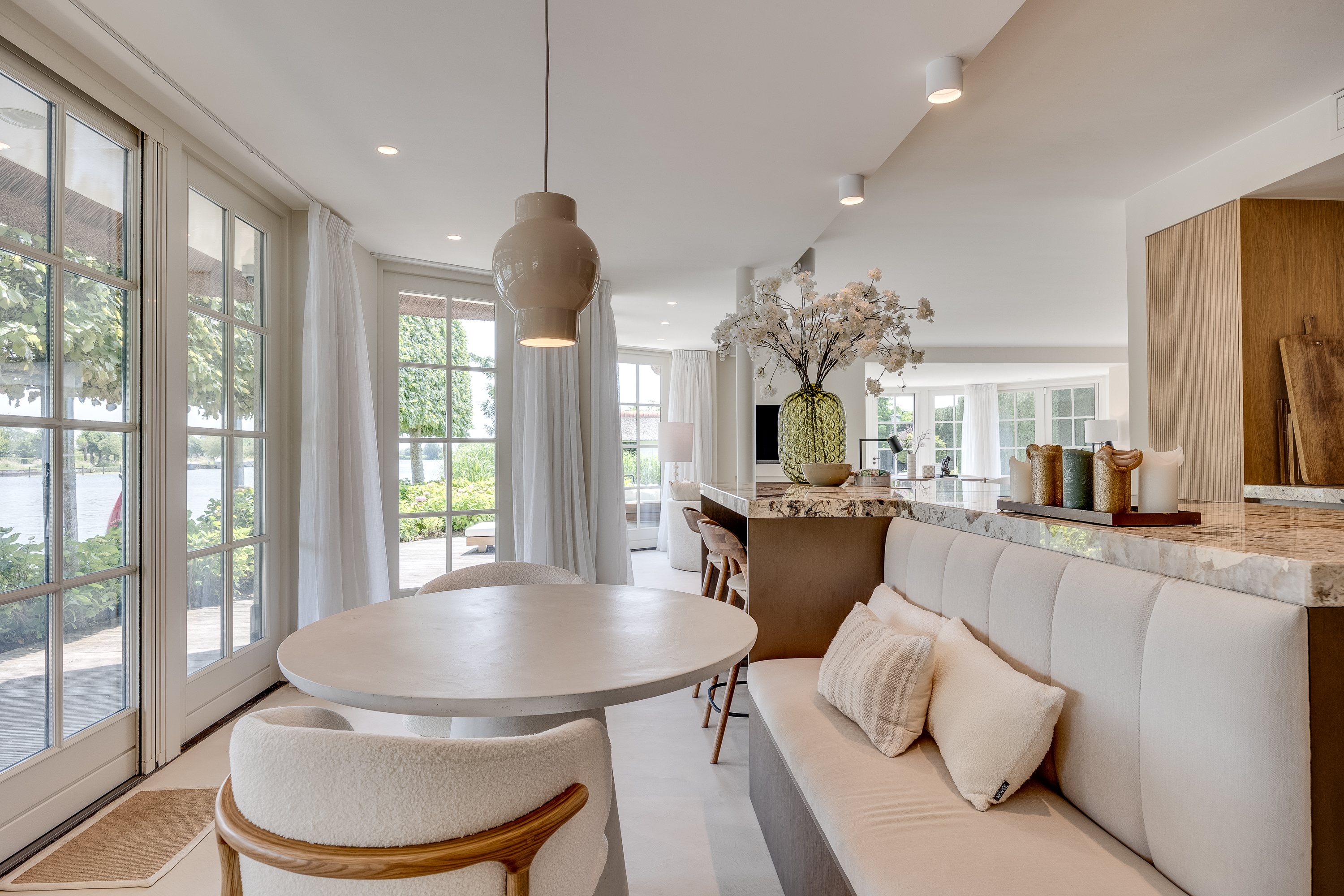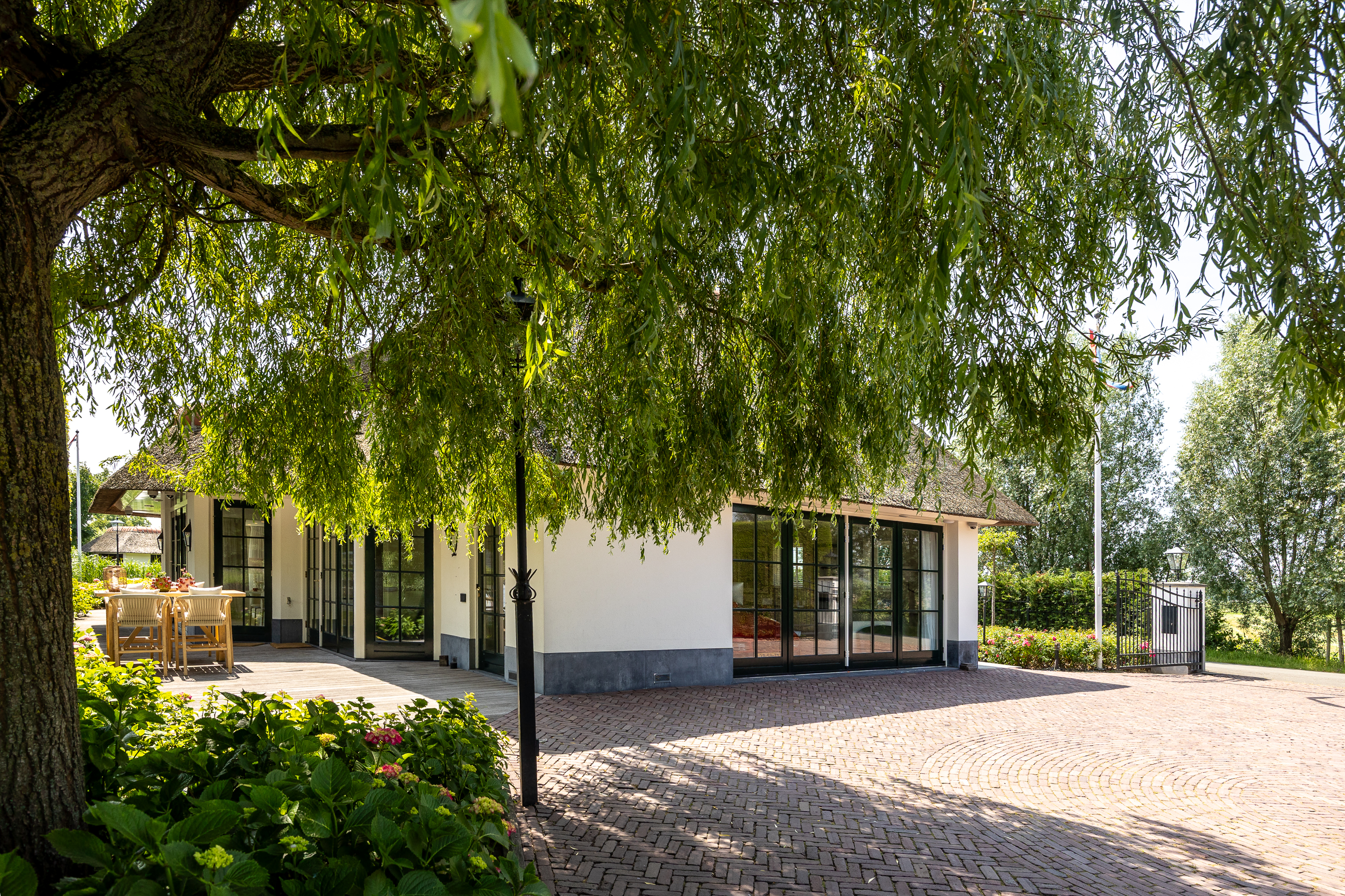 Vreelandseweg 99 in Nigtevecht - A beautiful, modern (completely renovated in 2023), luxurious, thatched villa on the majestic River Vecht, just outside Amsterdam. Living here means endless enjoyment with family and friends of the beautiful nature, the conviviality of water sports on the river, but also the ultimate peace and privacy that this magnificent place has to offer. And all this just a stone's throw (20 minutes) from Amsterdam and the charming villages of Nigtevecht and Vreeland (5 minutes).