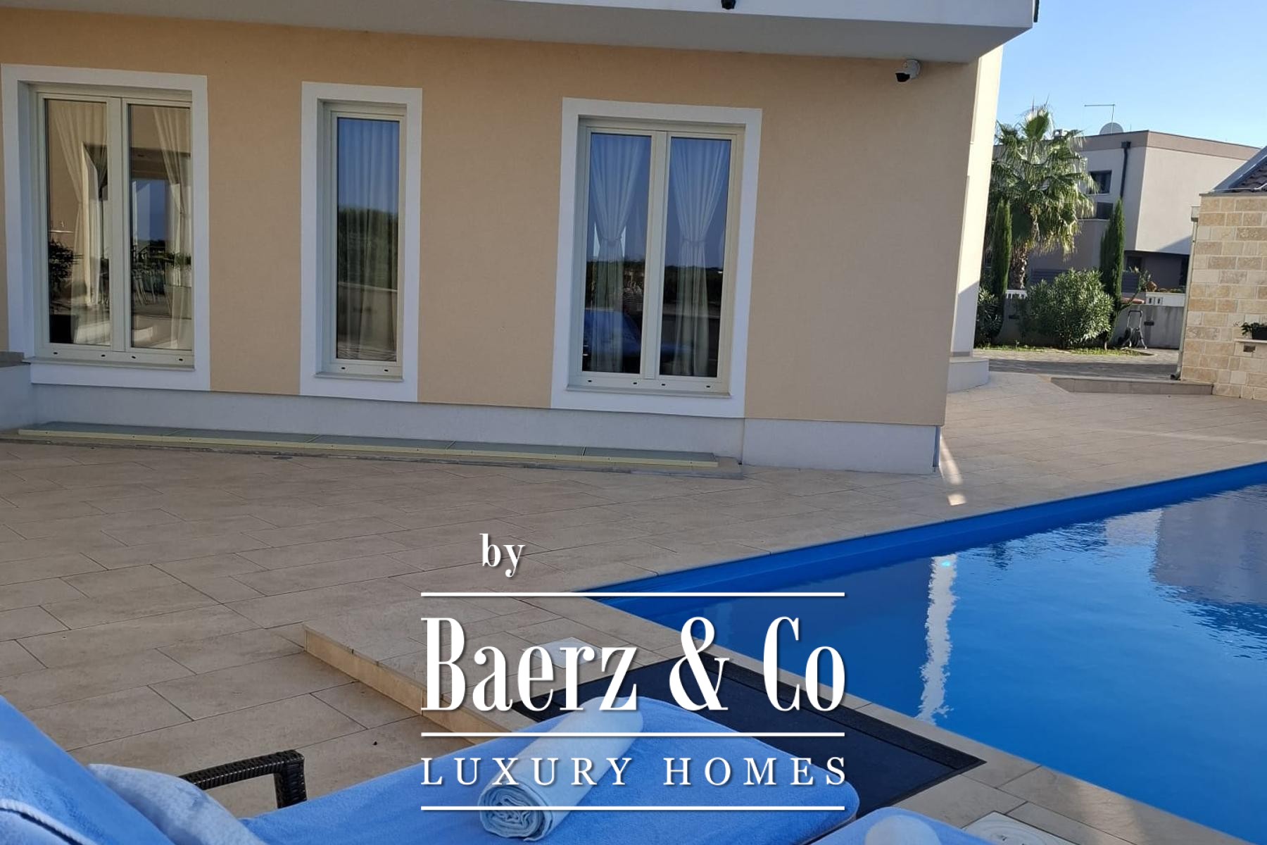Outdoors, a pool and sunbathing lounge merge into meticulously landscaped gardens, offering serene settings for privacy or quiet gatherings. A detached garage and ample parking provide further ease, making this luxury villa for sale in Zadar Nin a synthesis of aesthetics and utility, tailored for those drawn to the lasting pleasures of design and discretion.