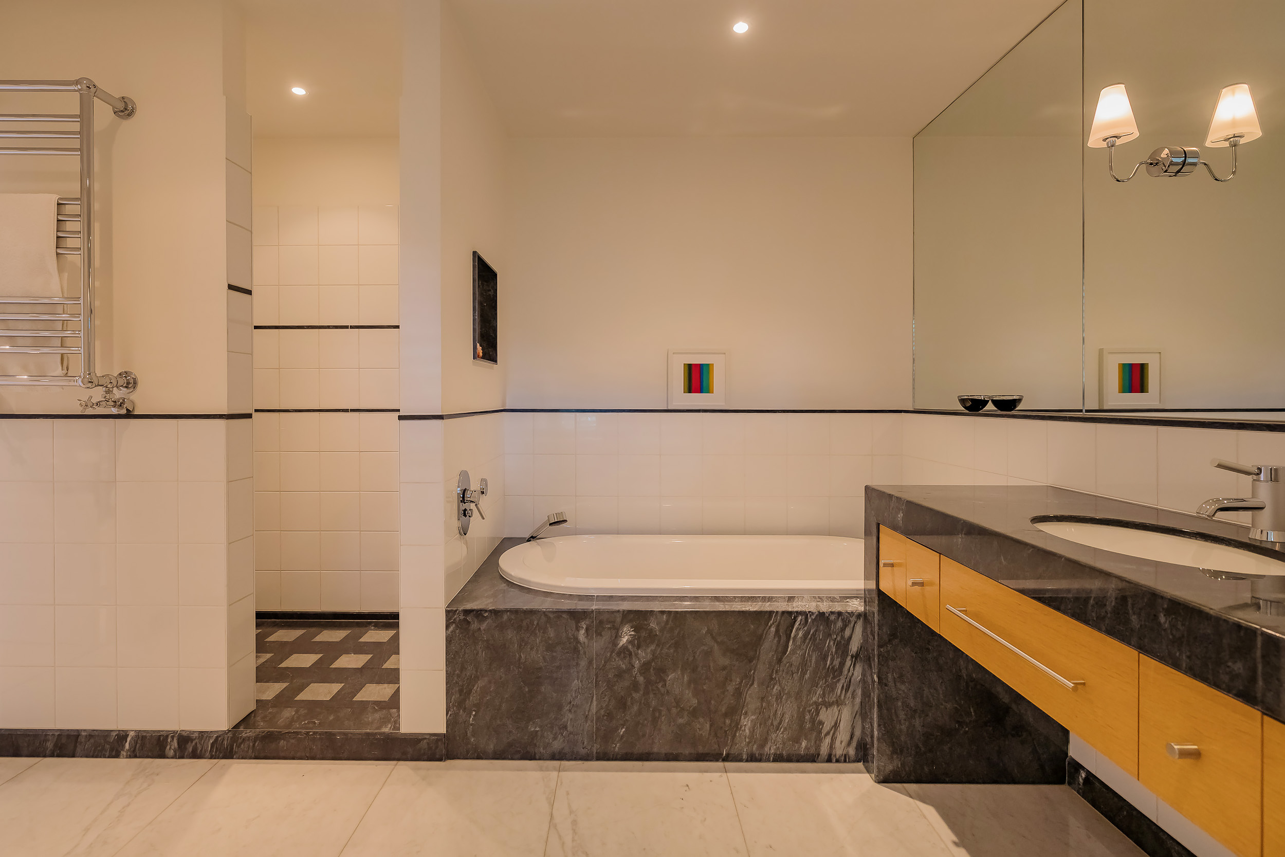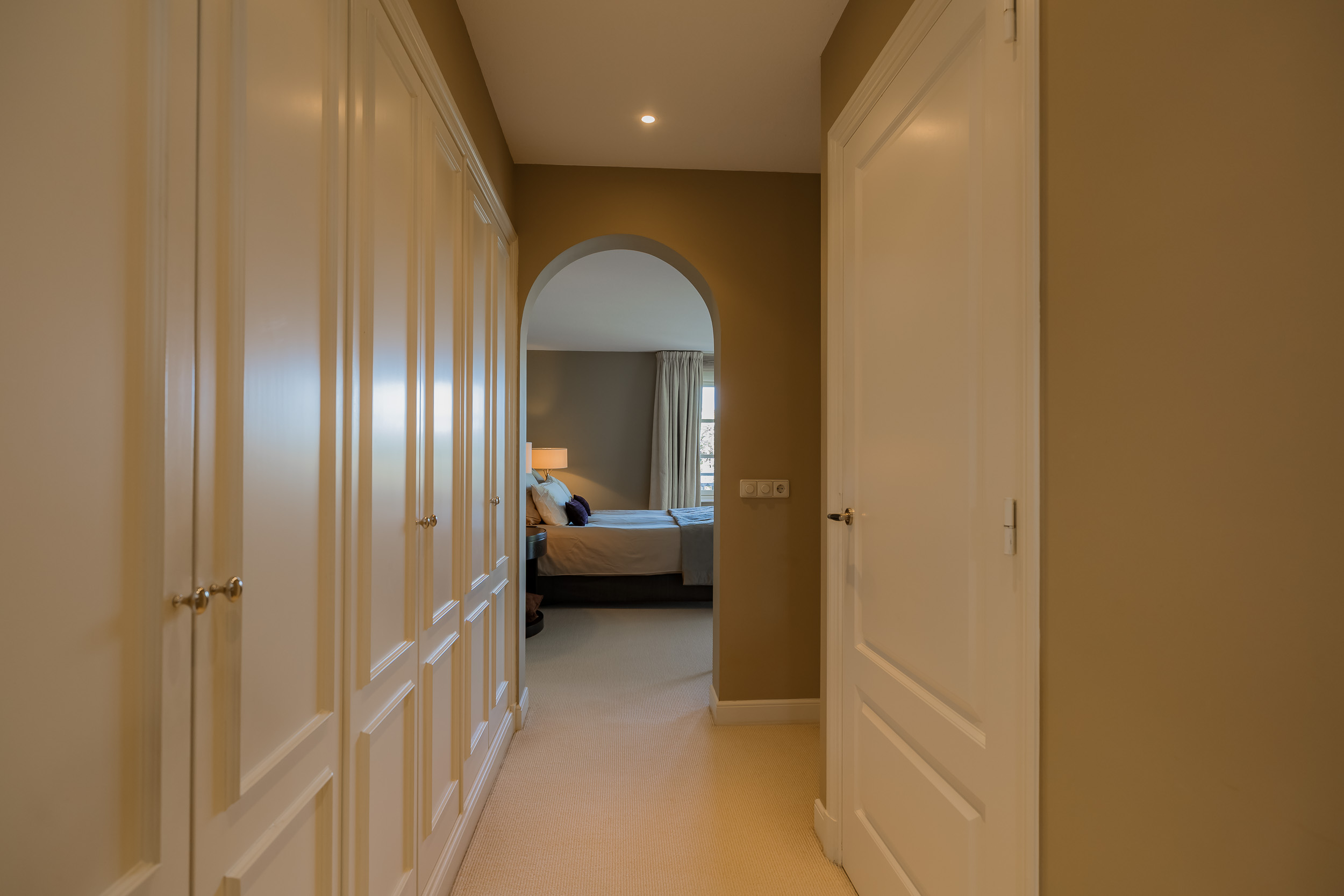 The villa exudes tranquility, space, and elegance. An elegant entrance, richly surrounded by flowers, welcomes you at the door. The spacious hall leads to the cozy living room with fireplace, adjacent dining room, and delightful kitchen with French doors to the garden. A place that invites you to spend long evenings cooking, dining, and enjoying life. A practical utility room and a spacious study on the ground floor complete the picture. All rooms have direct access to the garden, veranda, or one of the balconies.