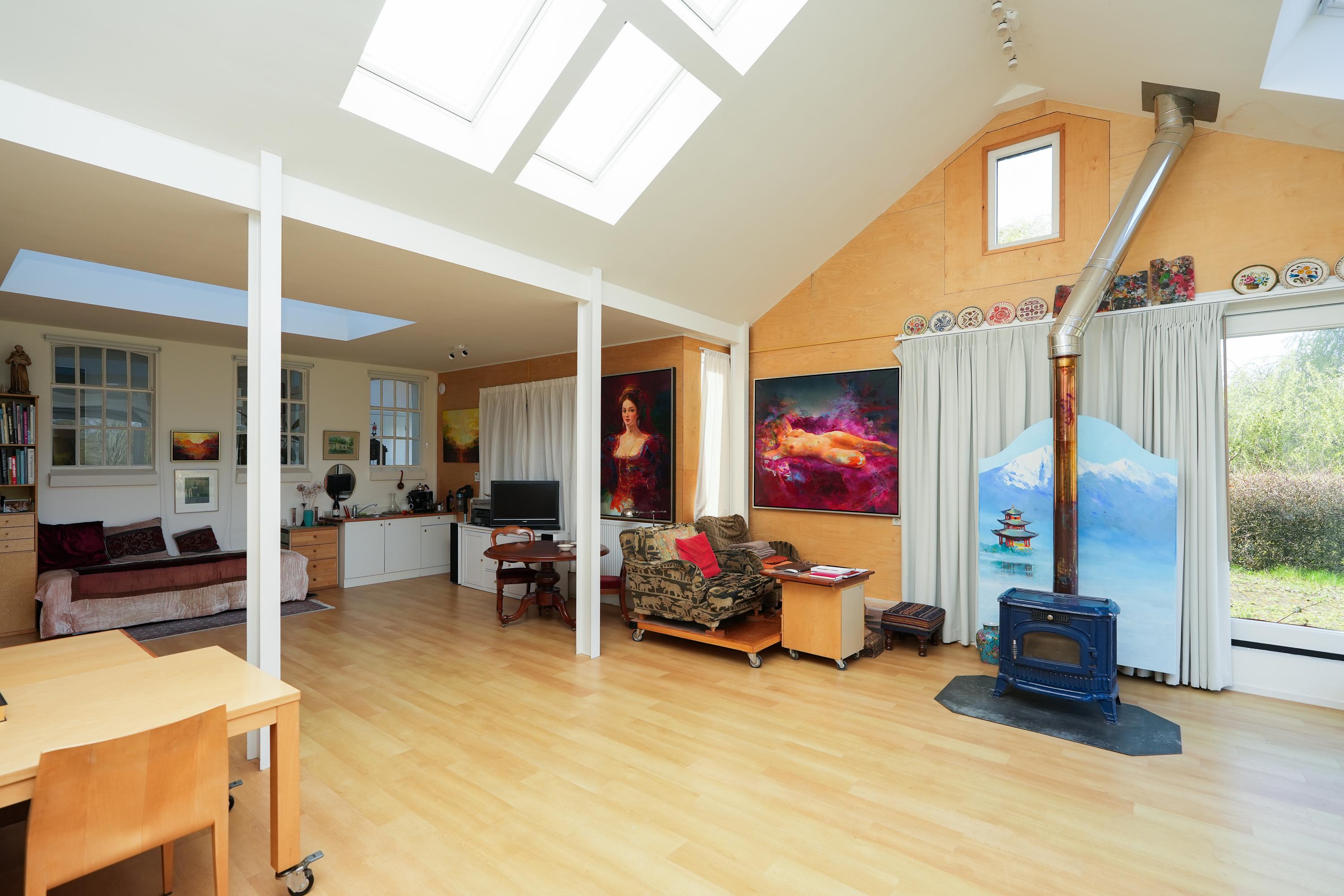 Historic house Ooij is positioned high on an old river mound beside a picturesque kolk in the rural outskirts of Ooij. Built in 1875 as a rectory and now recognized as a municipal monument, this residence has been sensitively renovated, seamlessly marrying original character with contemporary refinement. The home comprises two full floors and a spacious historical cellar, while a generous atelier extension welcomes light and sweeping views of the garden and surrounding meadows.