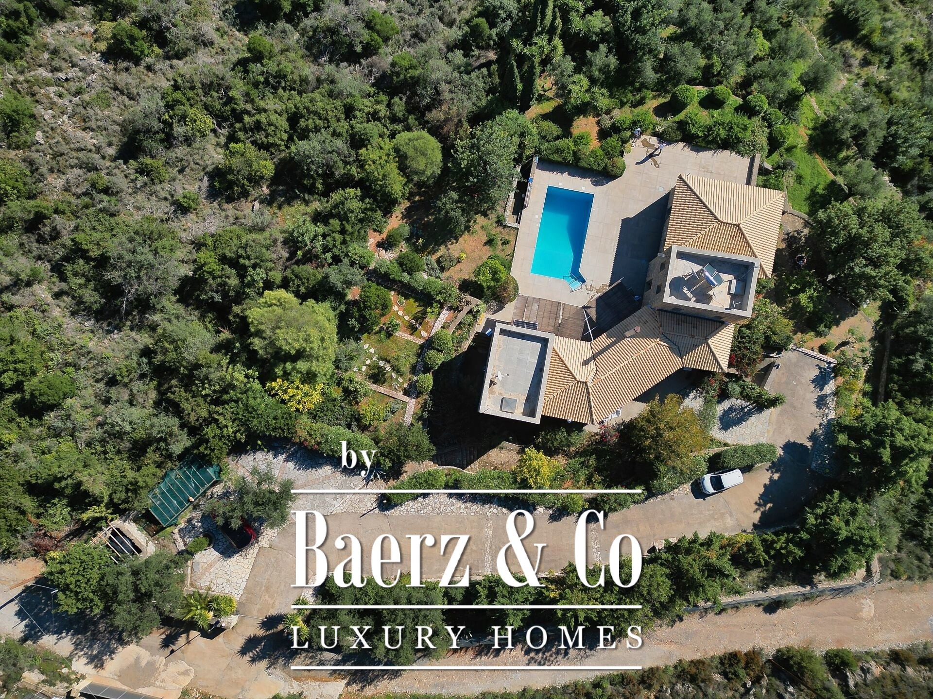 On the same level, a flexible open-plan area with its own bathroom can serve as a guest house, wellness suite, or creative atelier. Outdoors, a private swimming pool frames the mountain-to-sea panorama, inviting quiet reflection. Heating systems—central, oil, solar water, and boiler—support year-round living. This luxury villa for sale in Prosilio honors the Mani tradition, delivering a home of enduring quality, privacy, and serene connection to both land and sea.