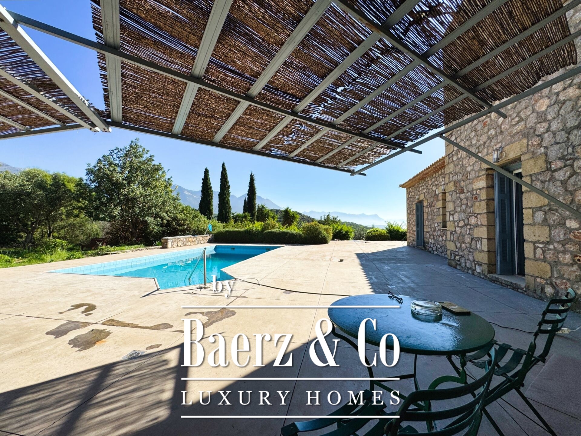 This stone house Prosilio Mani stands as an authentic expression of Maniot architecture, with a presence deeply set within one of Greece’s most unspoiled enclaves. The property, offering 212 m² of living area on a 6,000 m² plot, presents sea views and full immersion in the untamed landscapes of Exo Mani.