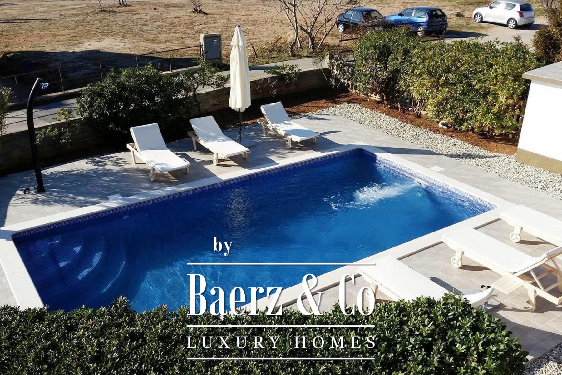 Detached house Punat presents 200 m² of living space arranged over two independent floors on the storied island of Krk. This property comprises two fully furnished and well-outfitted apartments, each designed with two bedrooms, a living area, a kitchen, and a bathroom, enhanced by balcony and terrace access that invite a gentle rhythm of indoor-outdoor life.