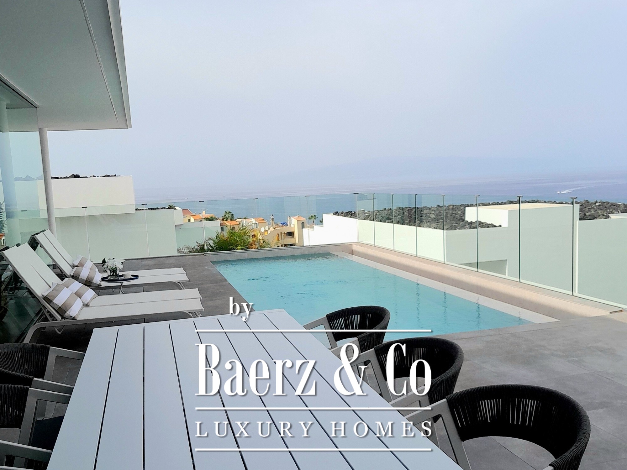 Air conditioning ensures climate comfort throughout the villa, while a carport offers convenient private parking. This luxury villa Rokabella embodies timeless appeal and seamless international accessibility, just 25 minutes from Tenerife Sur Airport. Privacy, tranquility, and the enduring sound of the sea define daily living in this exceptional Costa Adeje property.