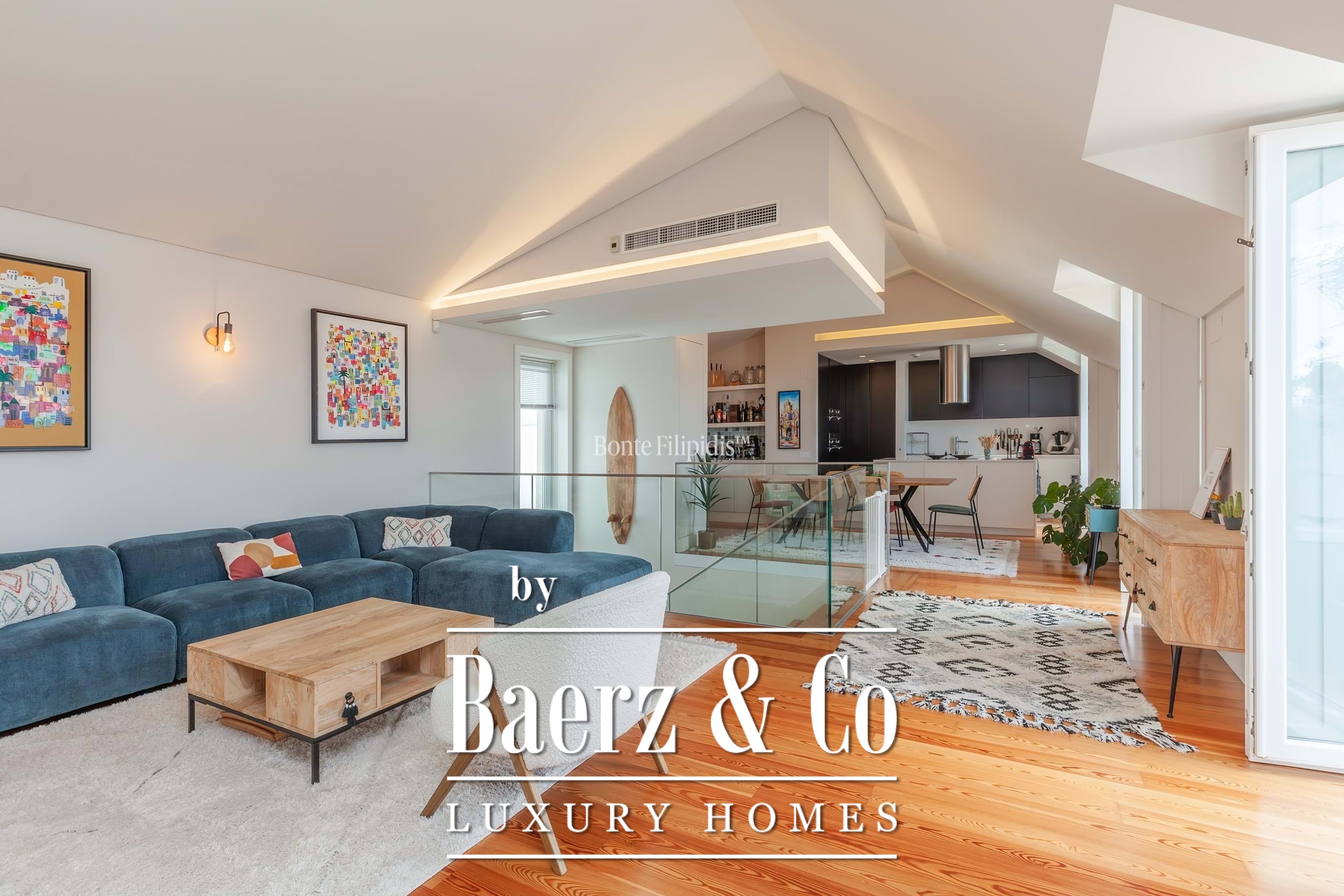 The social heart of this penthouse is its upper level, where a generous 52.88 m² living room flows into a 10.33 m² kitchen, equipped with premium appliances and refined finishes. Underfloor heating, air conditioning, and integrated home automation enhance daily living, while a state-of-the-art security system provides peace of mind.