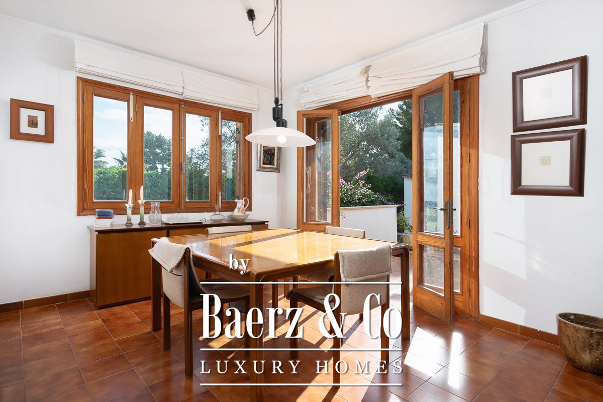 This Mediterranean villa Santa Ponça stands just minutes from the marina, set on a generous 1,224 m² plot. The constructed area reaches 330 m² with approximately 229 m² of living space arranged over two calm, purposeful floors. Across the ground level, a spacious living room centres on an elegant wood-burning fireplace, while a modern kitchen with dining area and separate entrance complements daily rhythms. Four bedrooms, including an en suite, and two well-finished bathrooms offer privacy and functionality.