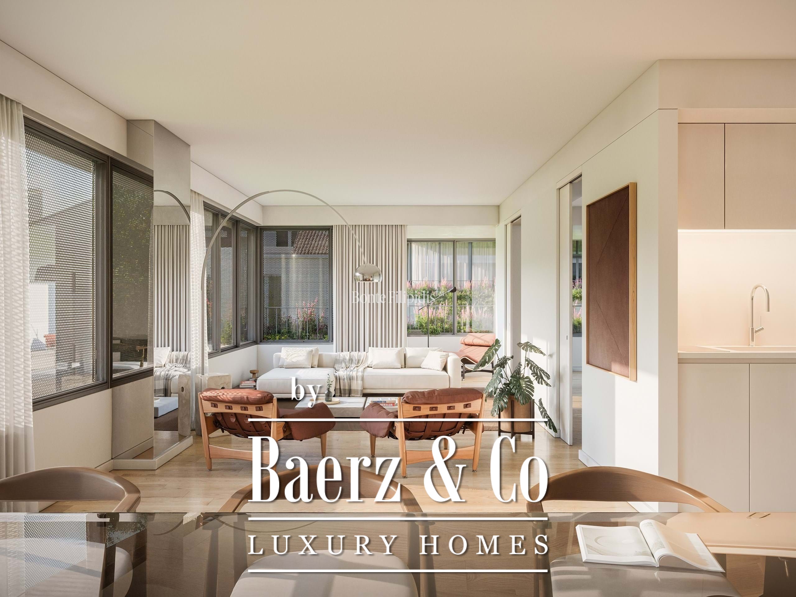 Aura’s architectural presence is at once contemporary and grounded, enveloped by manicured gardens and green spaces rarely found in the city centre. Residents benefit from the serenity of a private 180 m² garden, swimming pool, on-site gym, and secure underground parking. Solar energy solutions subtly underscore the commitment to sustainability. Every aspect of the condominium is curated for discretion, comfort, and well-being, offering a sheltered enclave above Lisbon’s vibrant rhythm.