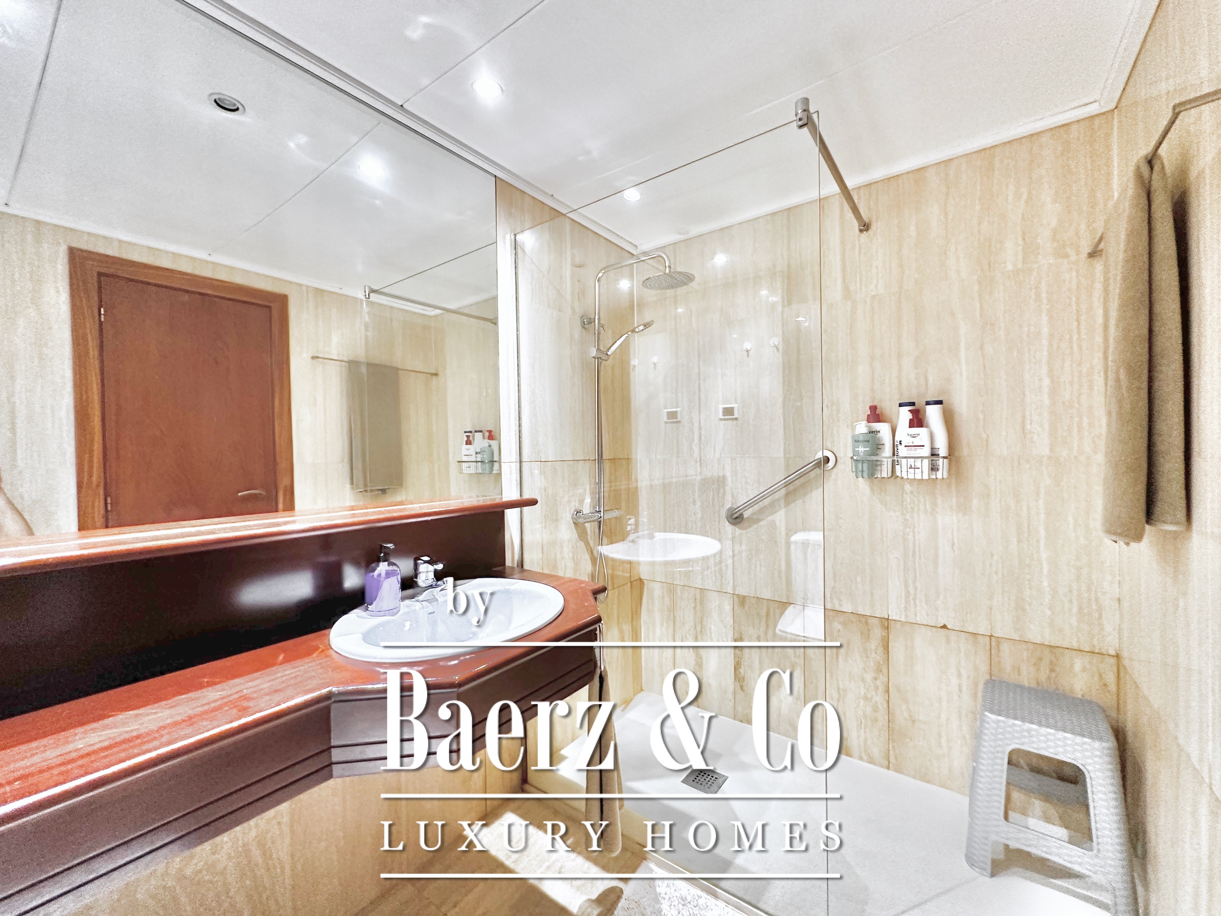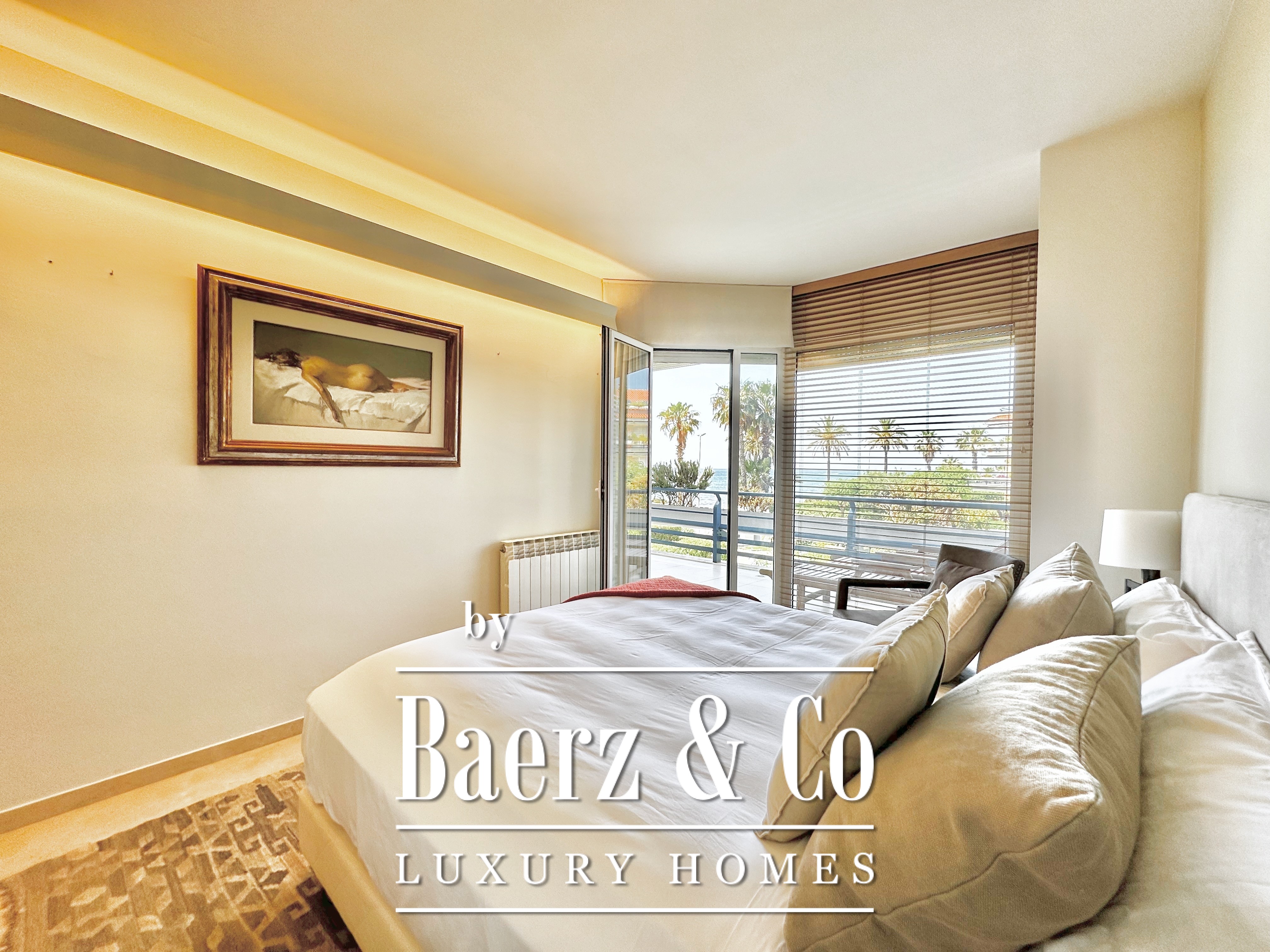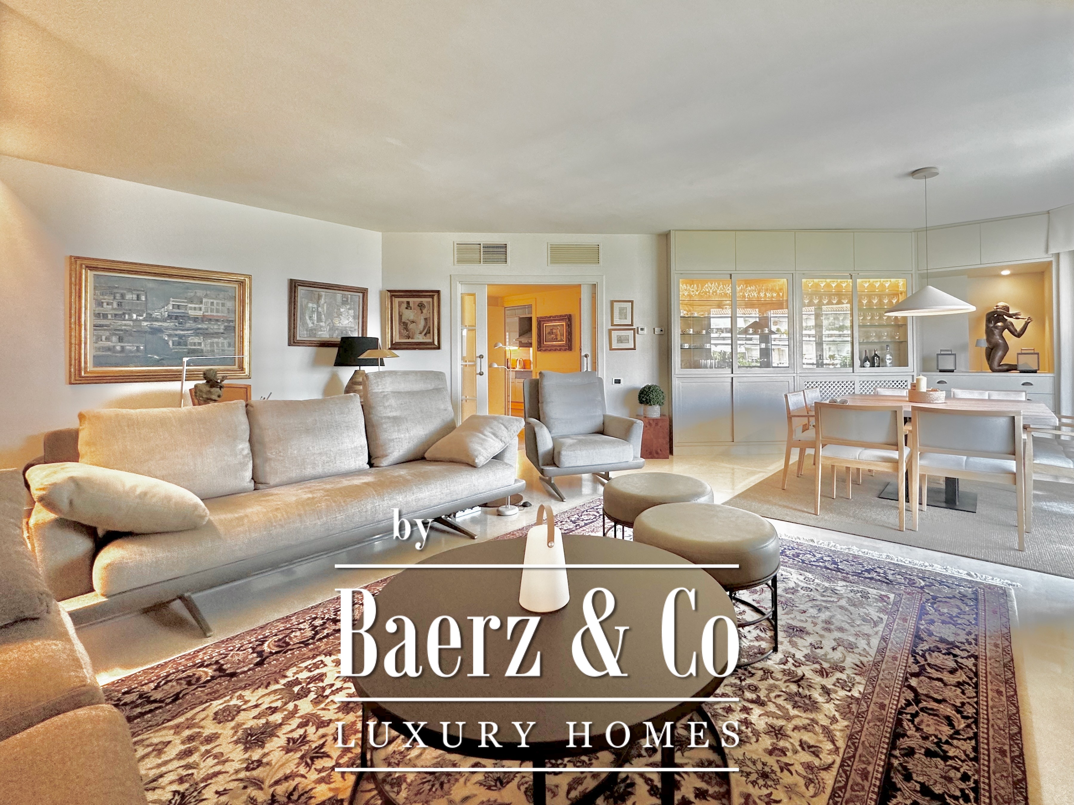 Two expansive terraces, totalling 71 m², trace the apartment’s perimeter, one overlooking the serene communal gardens and the other set directly above the shoreline for unobstructed views. The kitchen and dining space blend functionality and openness, extending onto a terrace framed by greenery. The property has been recently updated and includes two parking spaces and a 14 m² storage unit.