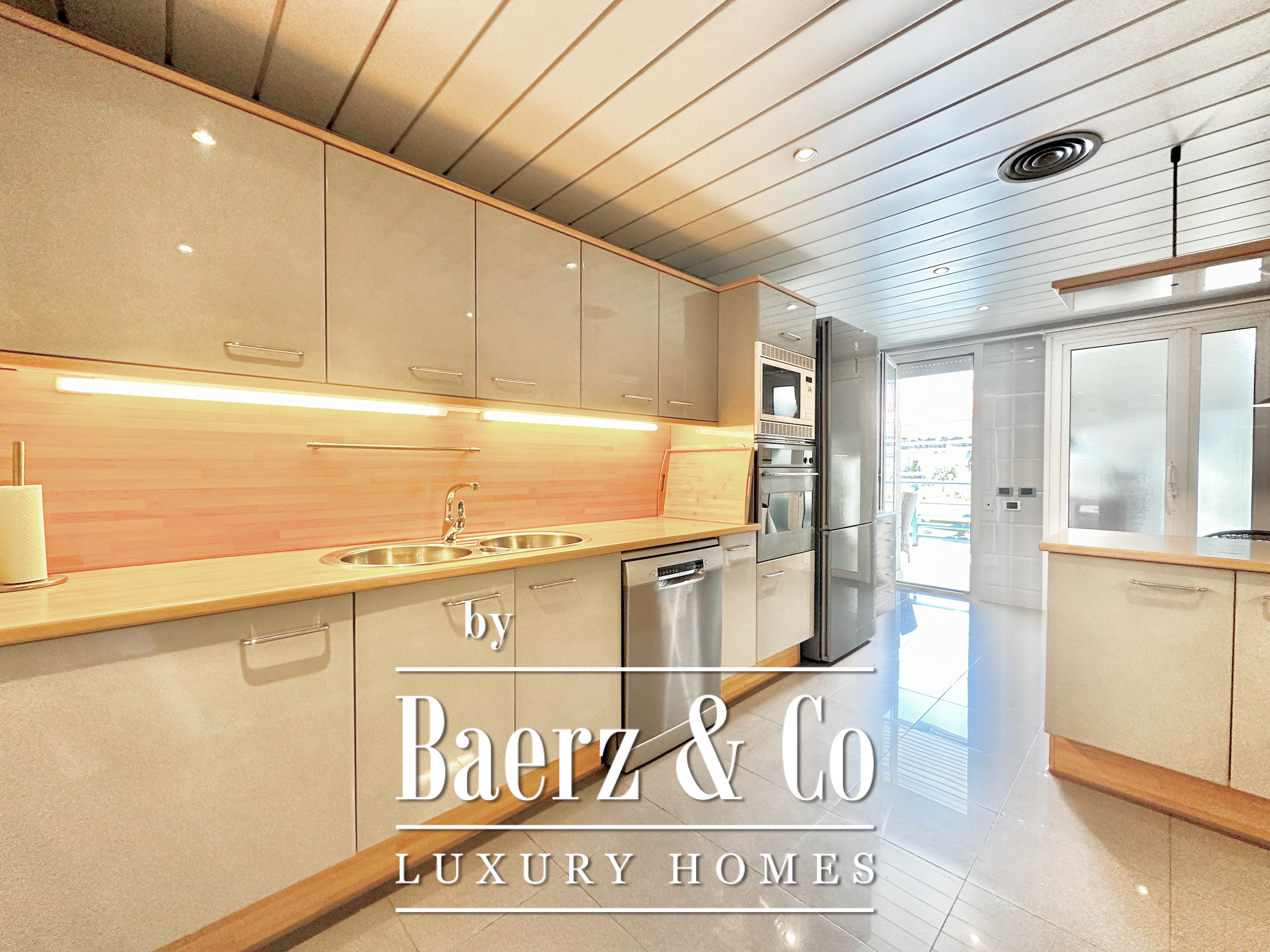 This seafront apartment Sitges stands in the coveted enclave of Terramar, opening directly onto the Mediterranean. Comfort and understated elegance define its 216 m² of carefully considered living space, where every room gives onto the outdoors. Four double bedrooms, each with direct terrace access and ensuite bathrooms, create a spatial rhythm of privacy and connection to the sea. The principal suite invites you to gaze over the water from bed, while the main living area lets light and horizon become part of daily life.