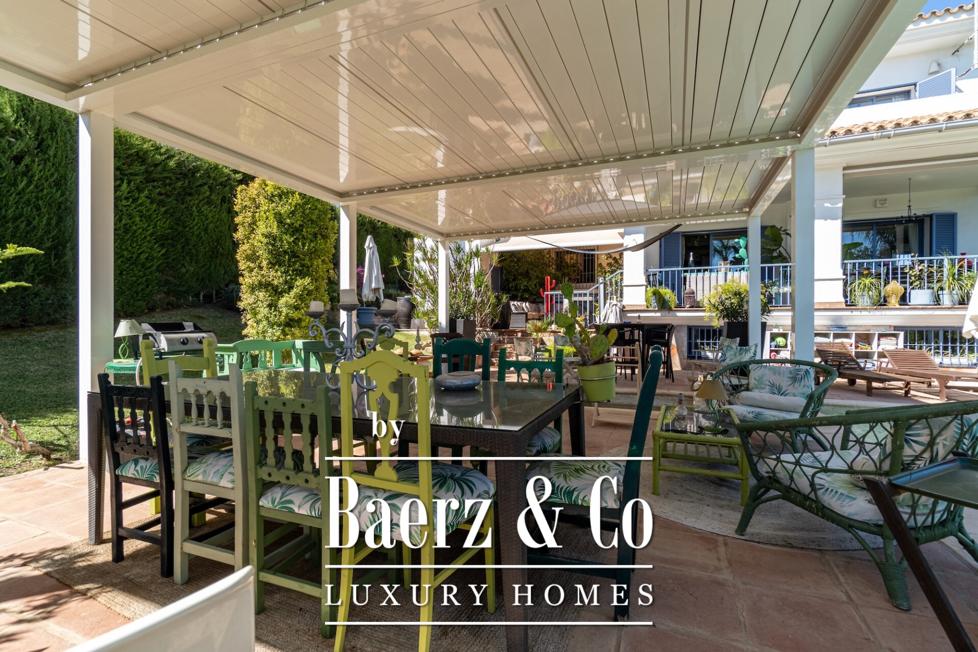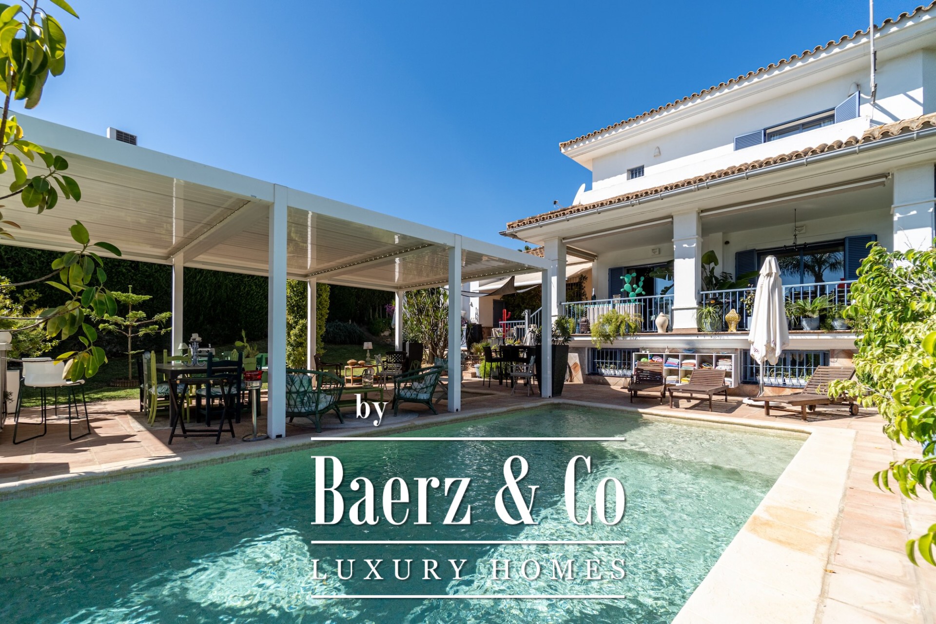 Villa Sotogrande with private pool is situated in the coveted B Zone of Sotogrande Costa, offering a rare opportunity for refined family living in a prime resort address. Set on a 1,398 m² plot and spanning 503 m² of built area, this residence merges contemporary architecture with lush gardens and the tranquillity of an established community.