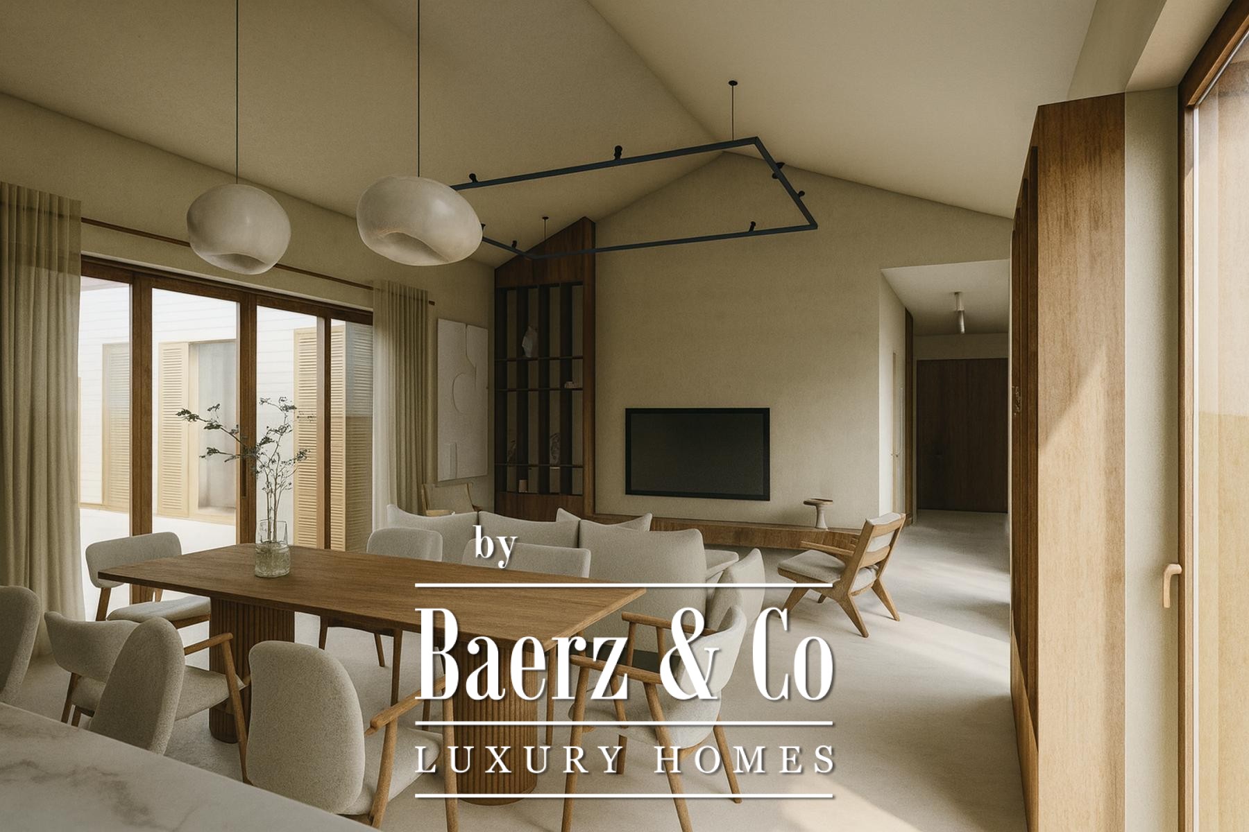 Inside, the villa offers three bedrooms and three understated bathrooms. A modern kitchen flows into the open-plan dining and living space, creating an atmosphere defined by clean lines, natural light, and spatial clarity. Beyond the living areas, a private gym and guest facilities speak to refined daily living. Carefully selected materials emphasize quality and restrained sophistication throughout.