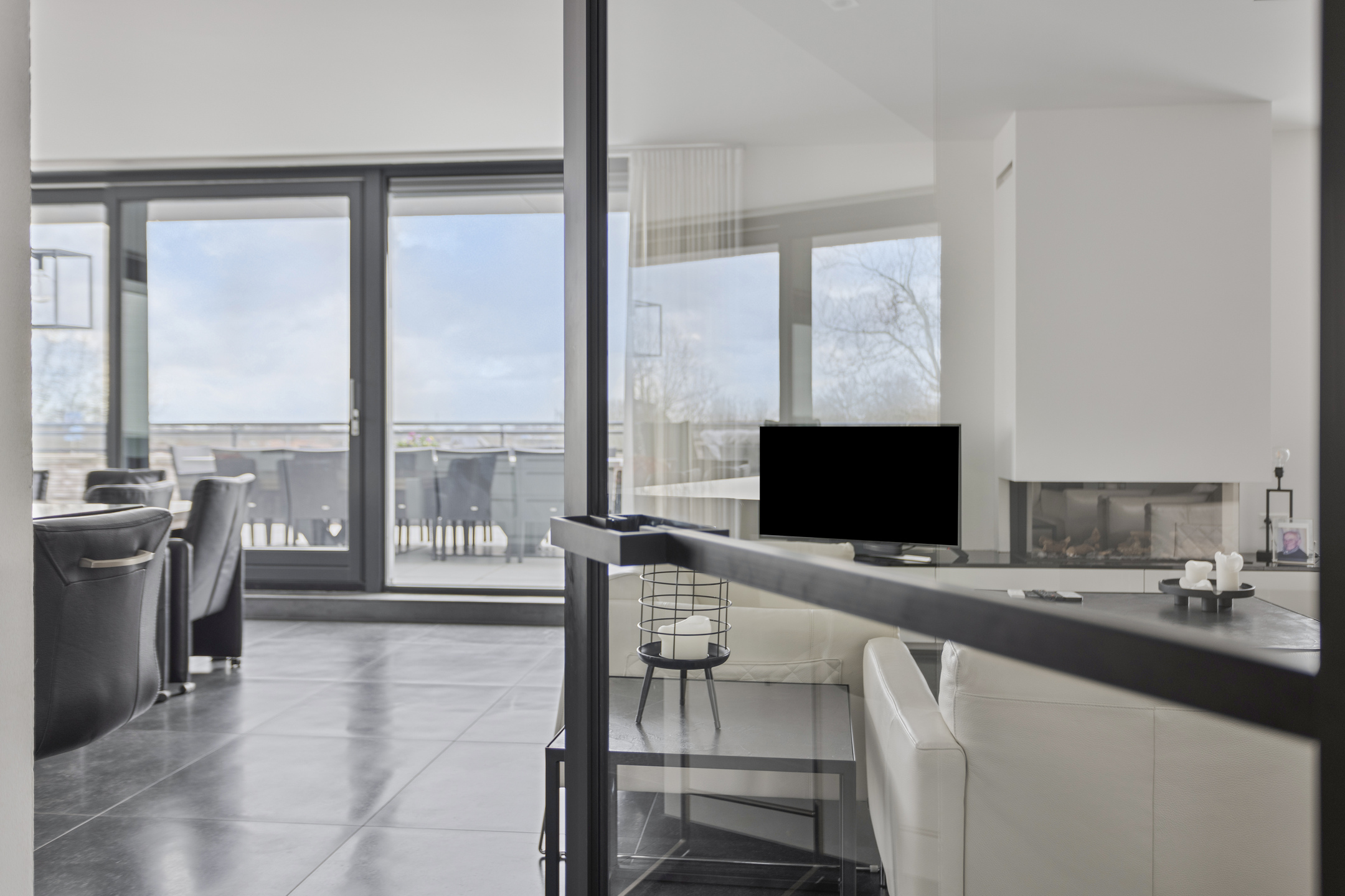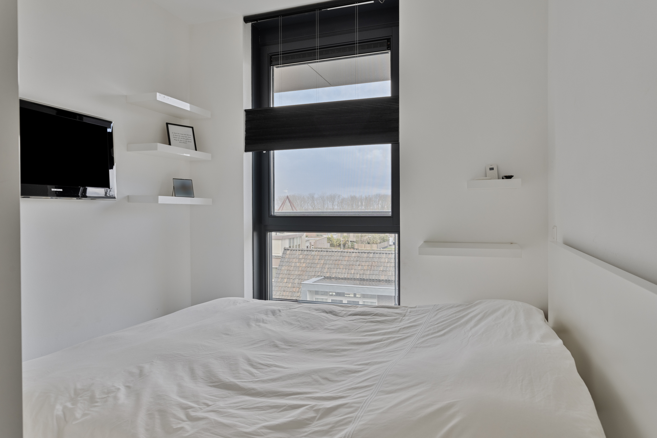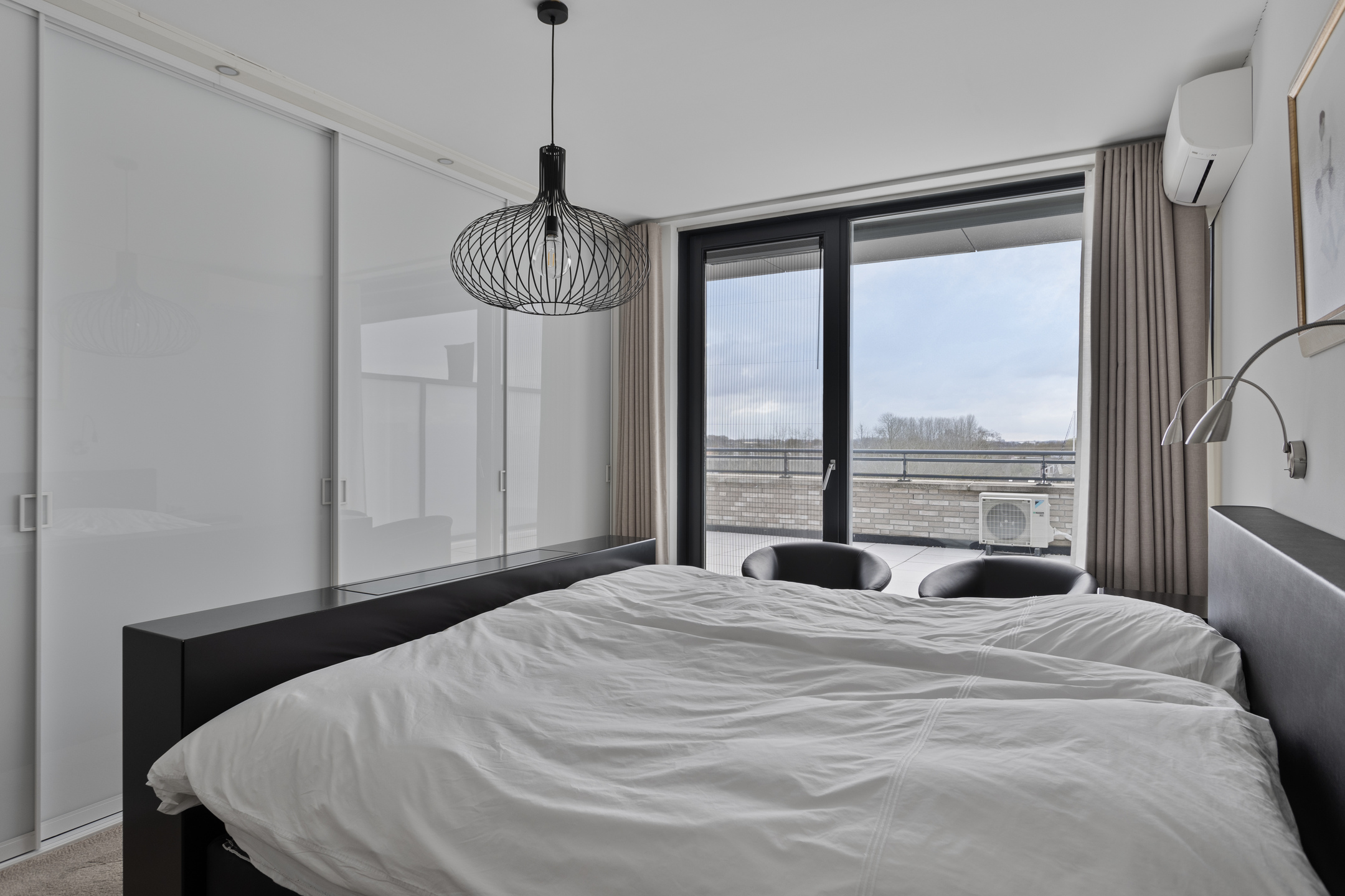 Really every detail has been thought of in the styling and design of the whole. Think of sleek floor, wall and ceiling finishes, solid pivot door from the hallway / entrance to the living room, electric screens, electric pleated curtains, power point in the floor of the living room, room by room controllable underfloor heating, UTP wiring in almost all rooms, tilt / turn windows, a beautiful gas fireplace in the living room, fitted wardrobes in the guest bedrooms, 2 air conditioning units and above all, 10 private solar panels for low energy consumption.