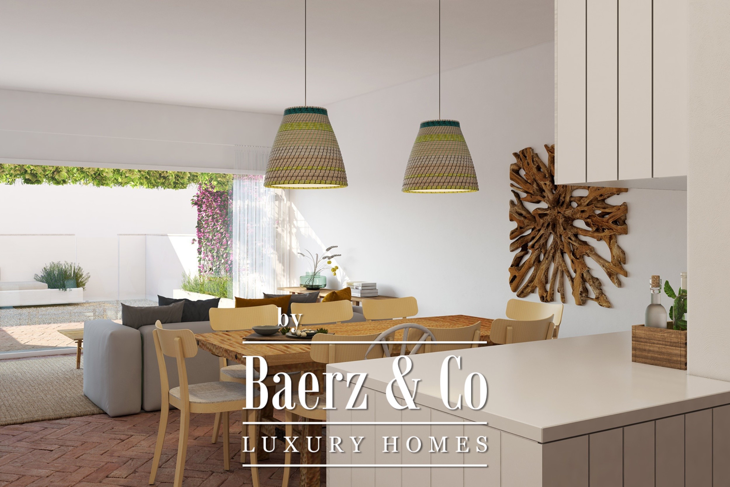 Villa Tavira unfolds within a sophisticated gated condominium in the heart of the city's historic center, its three bedrooms and 134 m² of living space embodying the perfect union of tradition and architectural clarity. This villa Tavira is quietly poised above the bustle, complemented by a tranquil 53 m² outdoor area that extends the spatial experience into the gardens and light.