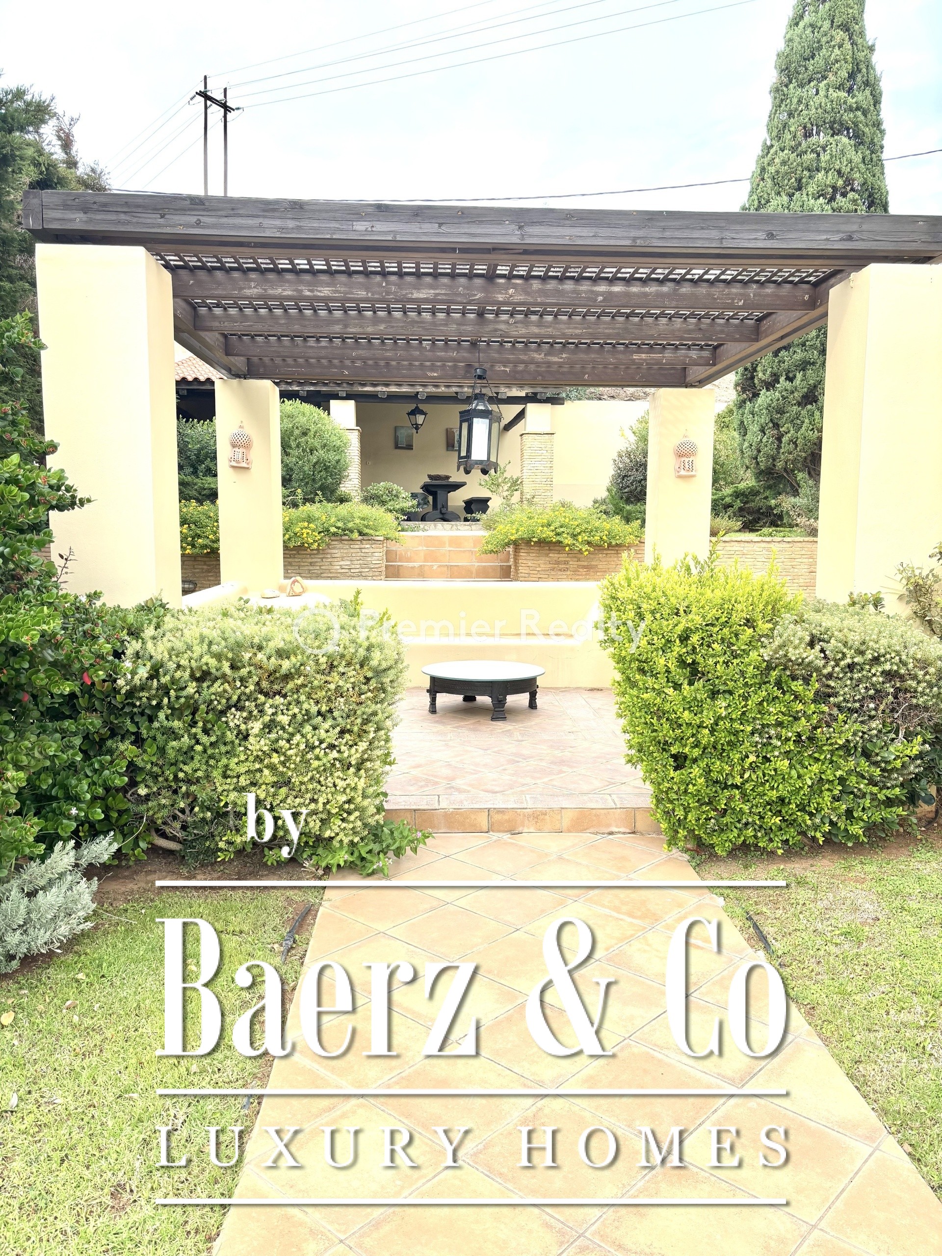 A 25 sq.m. infinity pool is the focal point of the outdoor spaces, set against panoramic sea views. Manicured gardens with automatic irrigation, shaded terraces, and balconies create multiple settings for relaxation. A dedicated built-in BBQ area with wood oven and al fresco dining space invites gatherings with family and friends, embodying the Mediterranean lifestyle. With the beach just 200 m away, the residence seamlessly combines privacy with coastal ease.
