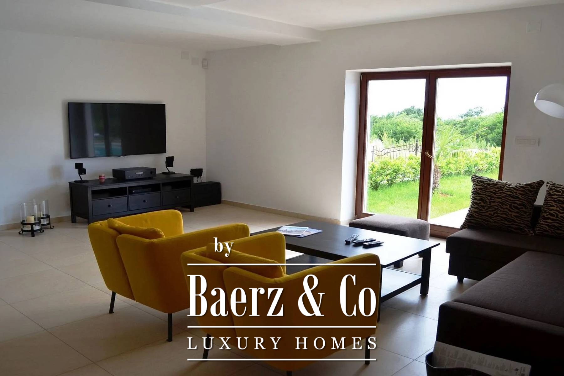 Stone villa Tinjan quietly redefines Istrian living, merging luminous interiors with the calm of a landscaped garden. The property spans 216 m² across thoughtful spaces, anchored by a 62 m² heated swimming pool, all set on a secluded 1086 m² plot. Upon entry, a versatile floor plan reveals a guest toilet and storage, then opens to a contemporary kitchen and living room with access to the sundeck and pool. Beyond, a covered terrace with a summer kitchen extends the pulse of family gatherings, while a detached suite offers a bedroom and private bathroom for guests.