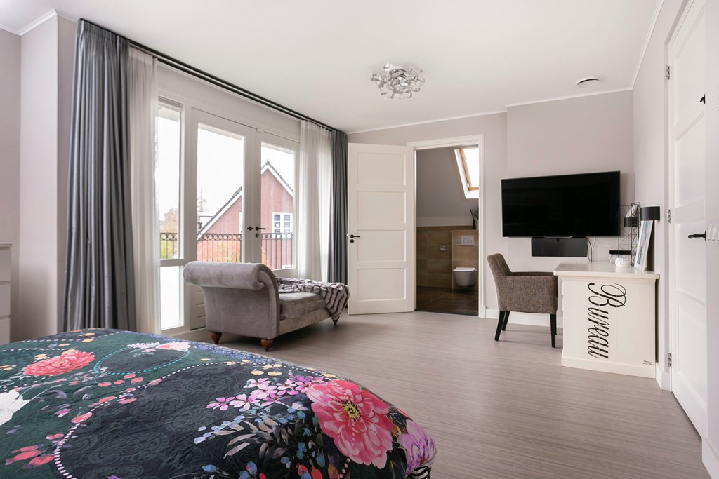 The garden-facing living room with conservatory is wonderfully bright, featuring a roof light and two pairs of French doors to the garden. The live-in kitchen is just as sunny and stands out for its generous, luxurious design. Big family or many guests? With seven bedrooms and three bathrooms, there’s room for everyone. The primary suite also features a balcony and a luxury en-suite bathroom. With a spacious, garden-facing office and a vast souterrain, the home offers countless possibilities. Add a utility room, a large back garden with play area and pool, driveway, and double garage—this is a truly unique villa.