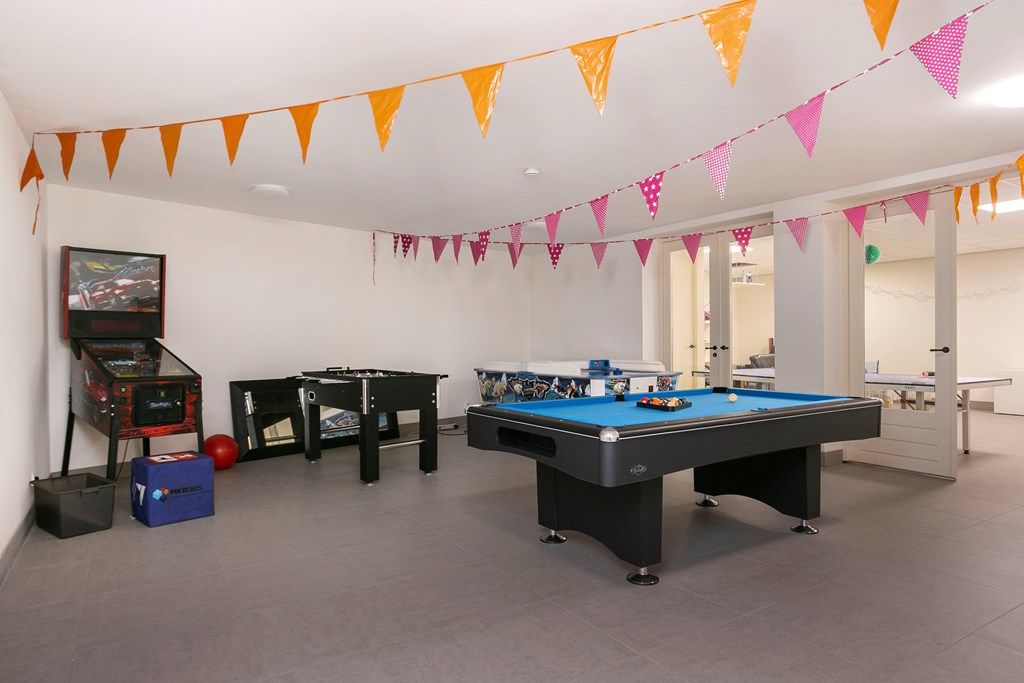 The home features an enormous souterrain of well over 200 m², highly versatile. Several generous, separate rooms are currently used as a cinema and playroom, with storage, study, or extra guest accommodation also very feasible. In addition, a very large room currently serving as storage would make an excellent personal gym. The souterrain also includes its own bathroom with walk-in shower, vanity, and toilet.