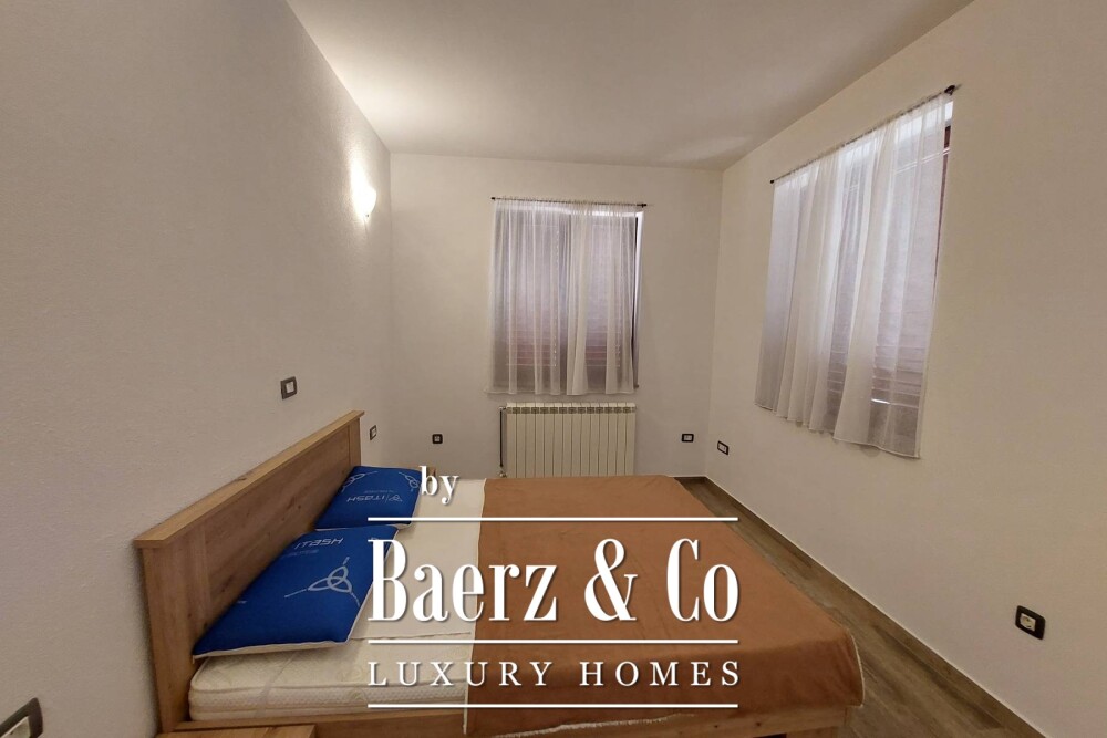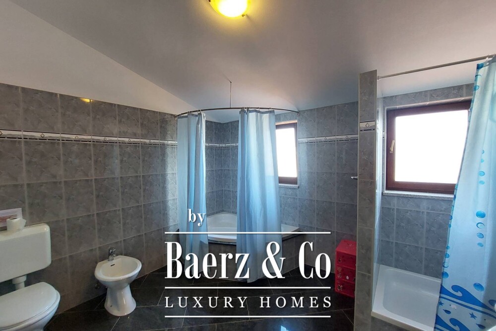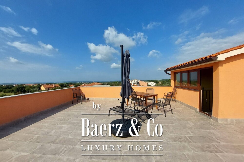 An internal staircase leads to a broad roof terrace overlooking the sea, ideal for sunlit gatherings or quiet contemplation. The property’s basement, 80 m², includes utility and flexible space for a private tavern. Outdoors, a 770 m² olive grove awaits further landscaping or the introduction of new leisure elements, such as a pool or playground. Secure parking for four to five vehicles underlines the emphasis on both hospitality and seclusion, making this luxury townhouse for sale in Vodnjan a poised investment or retreat.