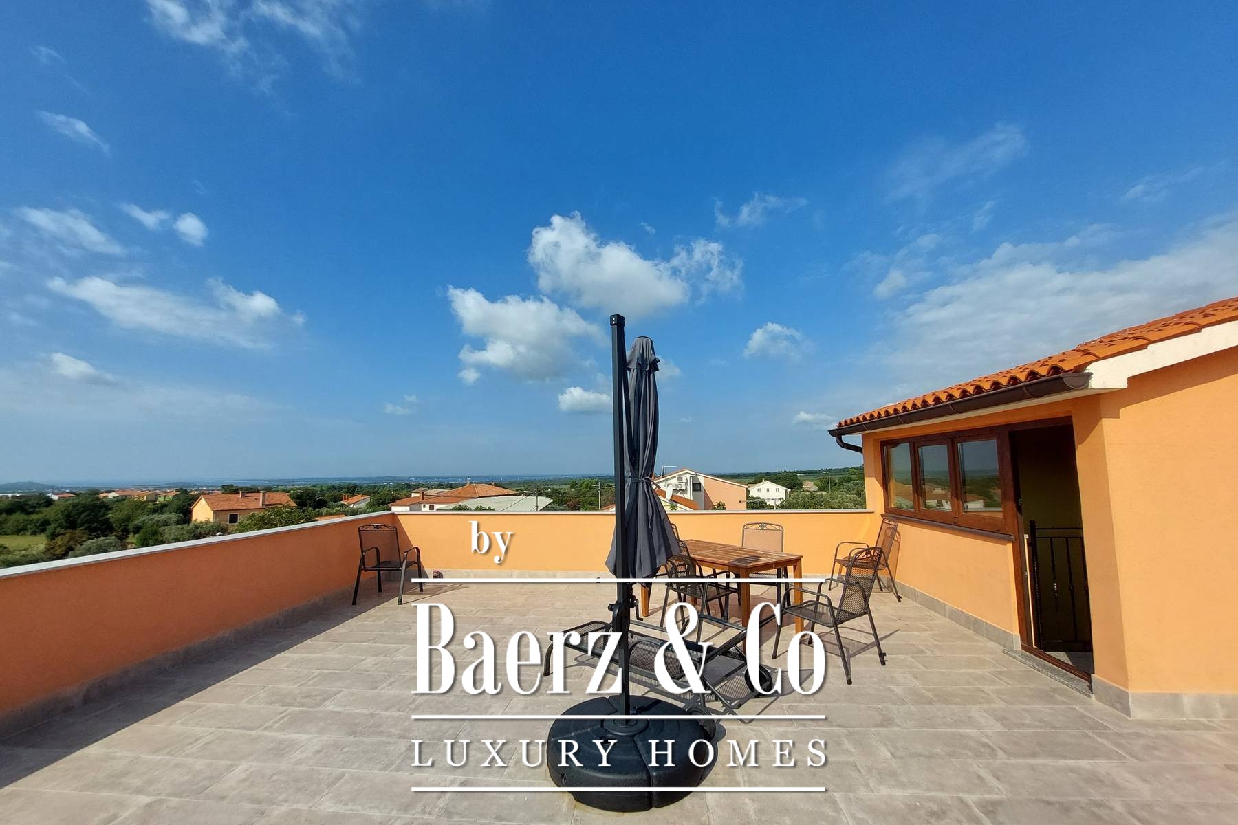 Townhouse Vodnjan presents a rare composition of space and views along the Istrian coast. Located in Croatia, this property offers 523 m² of living area thoughtfully divided into four self-contained apartments, each with independent terraces, complemented by a 1,614 m² fenced and illuminated garden. The focus keyword, townhouse Vodnjan, frames a residence balancing intimate gathering areas with panoramic coastal scenery.