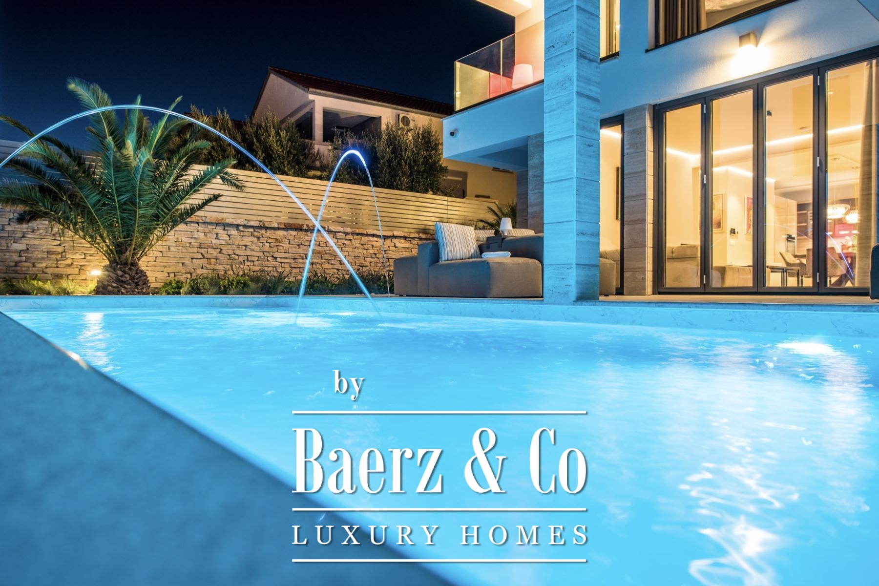Altogether, the complex provides 370.65 m² of living space within a landscaped 806 m² plot, with four bedrooms and four bathrooms. Amenities include a sauna, rooftop jacuzzi, two contemporary kitchens, home cinema, integrated sound and surveillance systems, automatic irrigation, a shared pool, and outdoor showers. Garden spaces are planted with Mediterranean species, and there are four parking spaces. This luxury villa for sale in Vrsi appeals both as a refined private residence and as a high-calibre investment for discerning international buyers.