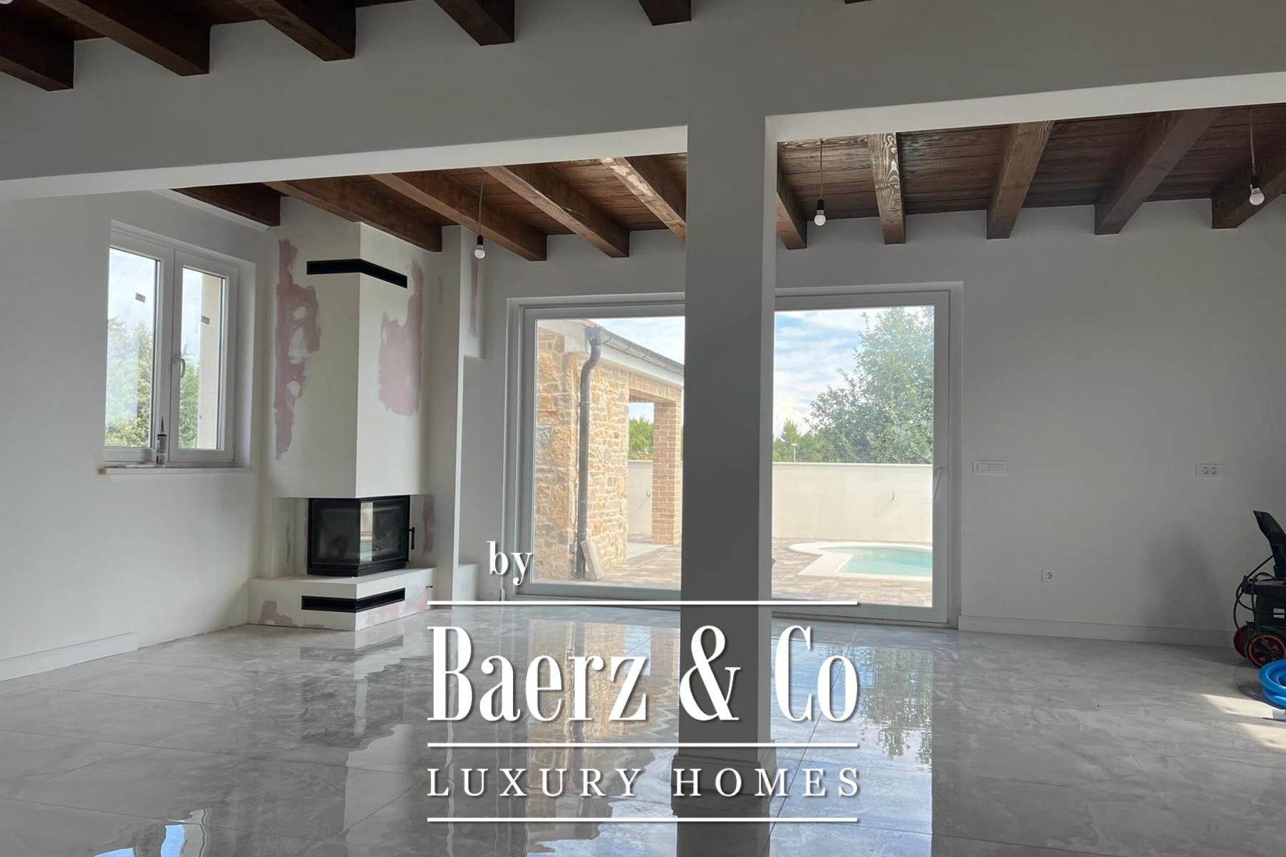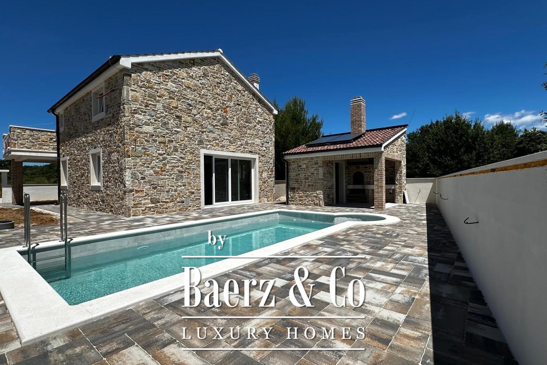 Stone house Vrsi stands as a newly built retreat in a discreet and tranquil corner of Croatia. This property, comprising 165 m² across two levels, rests on a 394 m² plot, harmoniously blending contemporary comforts with natural stone architecture. The focus keyword, stone house Vrsi, underscores the authenticity found throughout the home’s structure and setting.