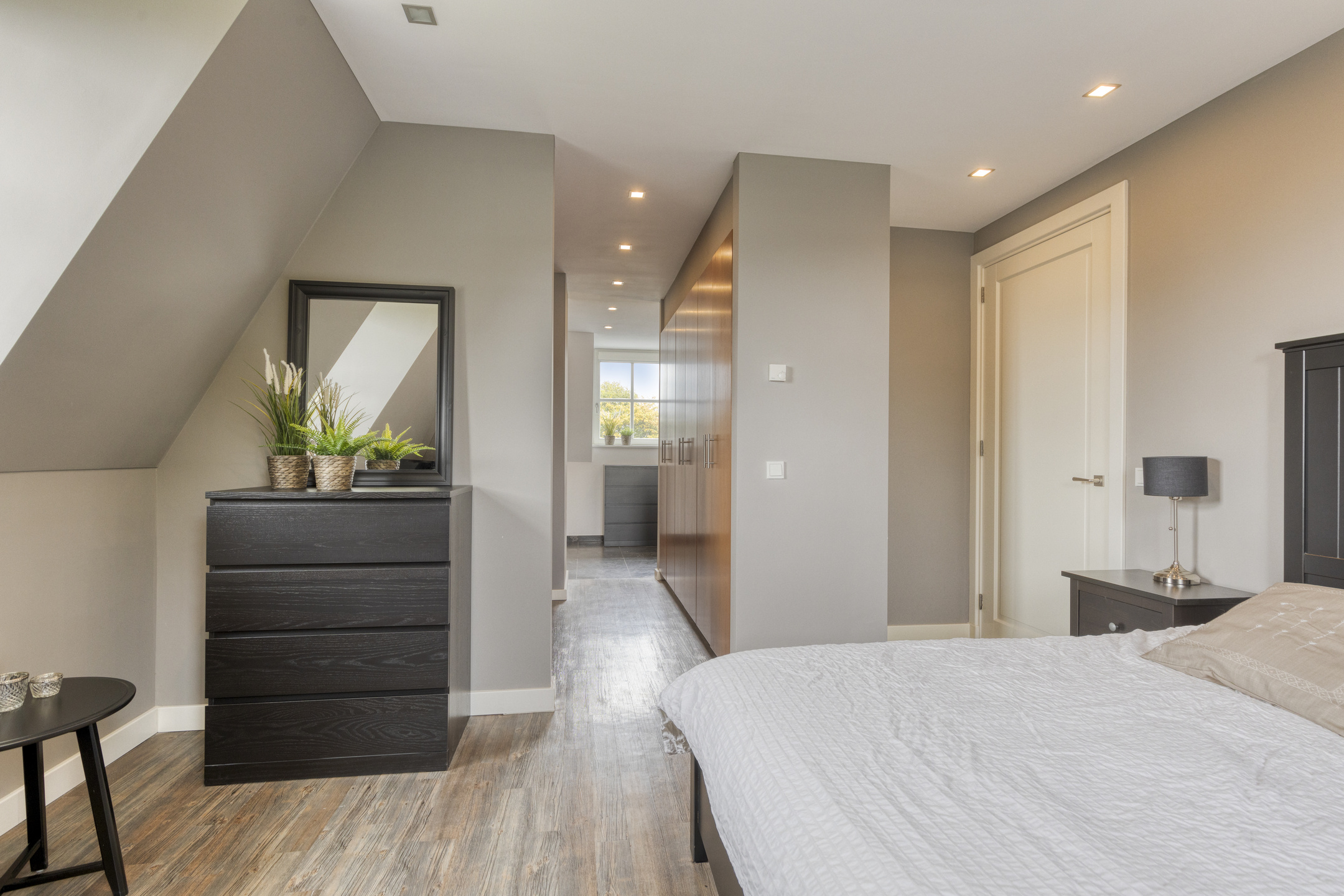 Three additional bedrooms: each with two dormer windows; plastered walls; PVC flooring; ceilings with recessed lighting; from the middle bedroom a loft ladder leads to the second floor.