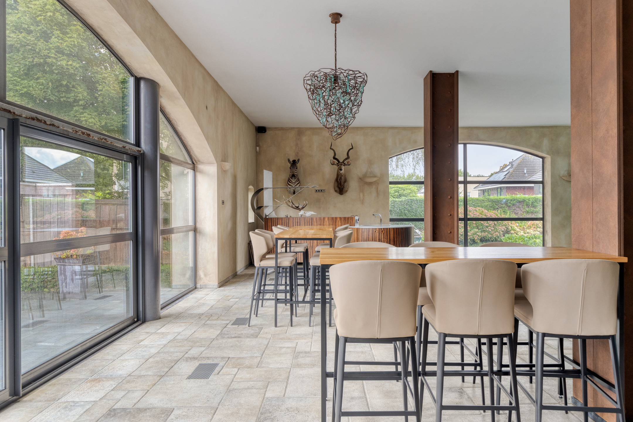 Het fraaie bijgebouw is voorzien van een ontspannings- en wellnessruimte met een bar, overdekt zwembad, sauna, was- en douchegelegenheid, fitness-ruimte, 3 royale garages en een berging.