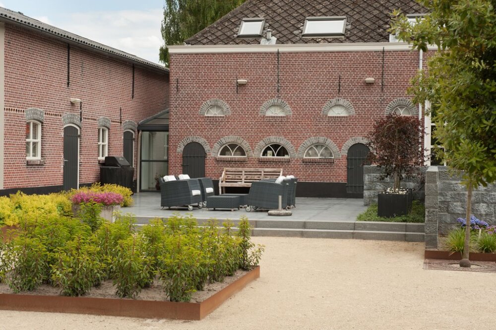 Erf verhard met authentieke kasteelkeien en paden met Dolomiet;