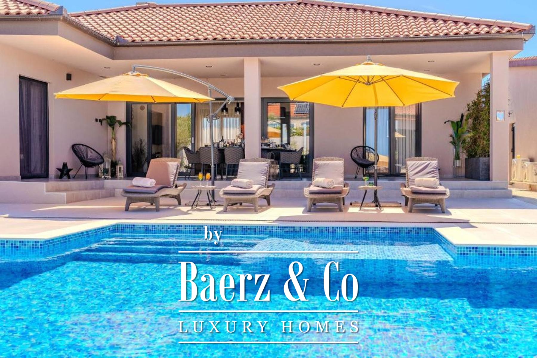 The villa is set within a plot of 483 m², finished to the highest standards for modern comfort. Amenities including a supermarket, pharmacy, school, and the essential pulse of village life are nearby, while Zadar’s city center lies just a brief drive away. Here, the equilibrium between calm retreat and dynamic access defines the pace and promise of daily living.