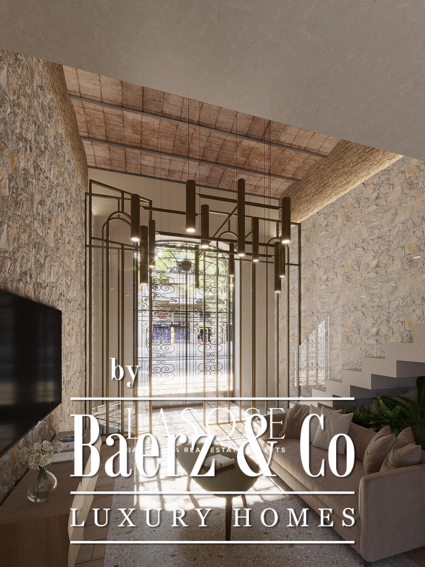 Tres dormitorios y tres baños aseguran privacidad y comodidad; la suite principal destaca por su techo abovedado catalán, vestidor y un elegante baño en suite. La terraza privada, ubicada en la planta superior, es a la vez reservada y funcional, con un área de lavandería discretamente integrada para mayor comodidad diaria. Aire acondicionado, espacios de almacenaje empotrados y acabados sofisticados enriquecen cada momento.