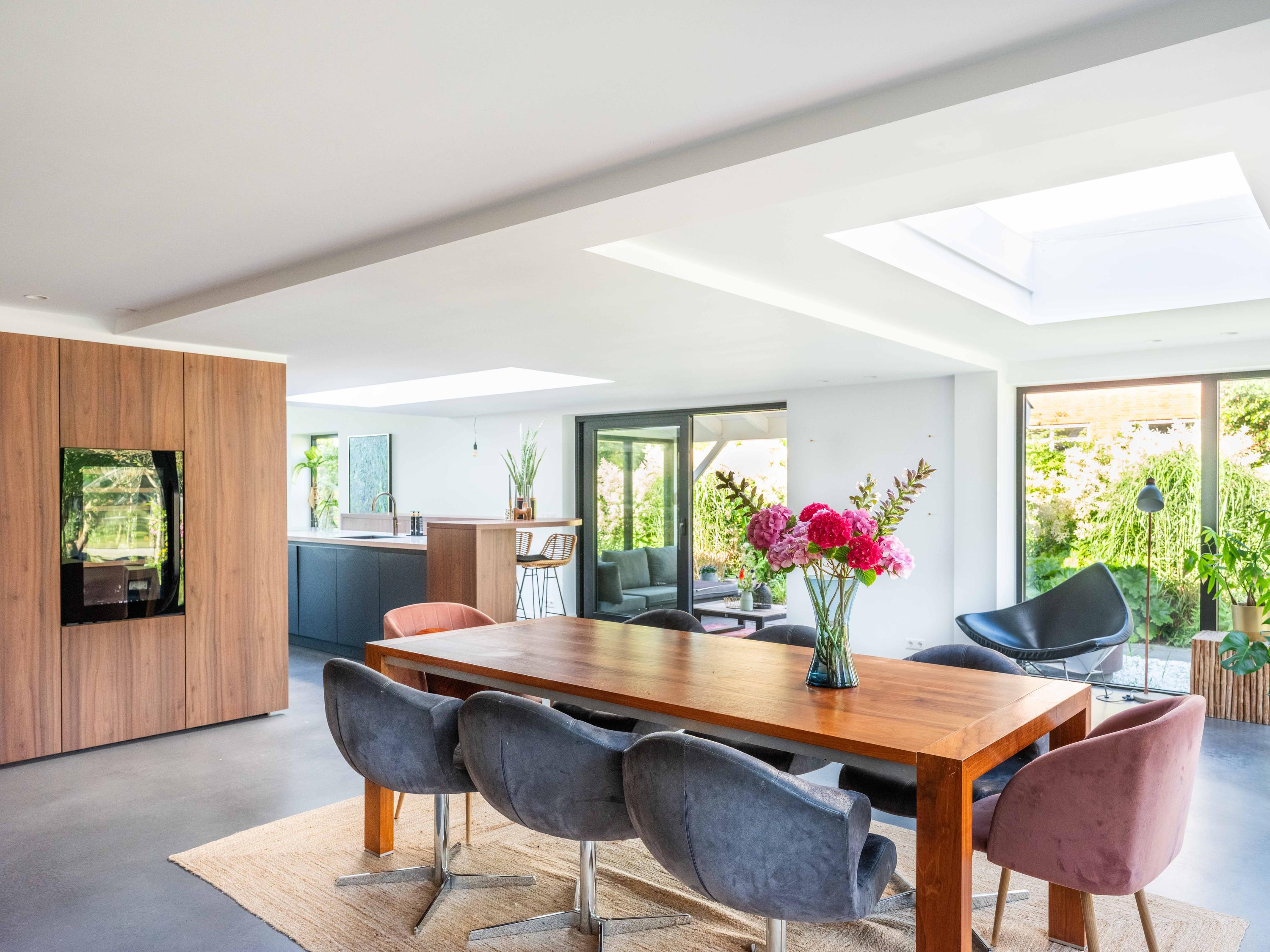 Villa Bergen NH, con vistas a la campiña, ofrece una rara síntesis de calidad, entorno y sostenibilidad. Ubicada en la tranquila Nesdijk, esta villa de 326 m² se asienta sobre una generosa parcela de 1.301 m², brindando interiores silenciosos y vistas despejadas sobre el pólder circundante. Cada detalle de la vivienda, desde los suelos continuos de hormigón calefactado hasta la cocina de nogal a medida y la escalera de diseño, transmite elegancia y mesura.