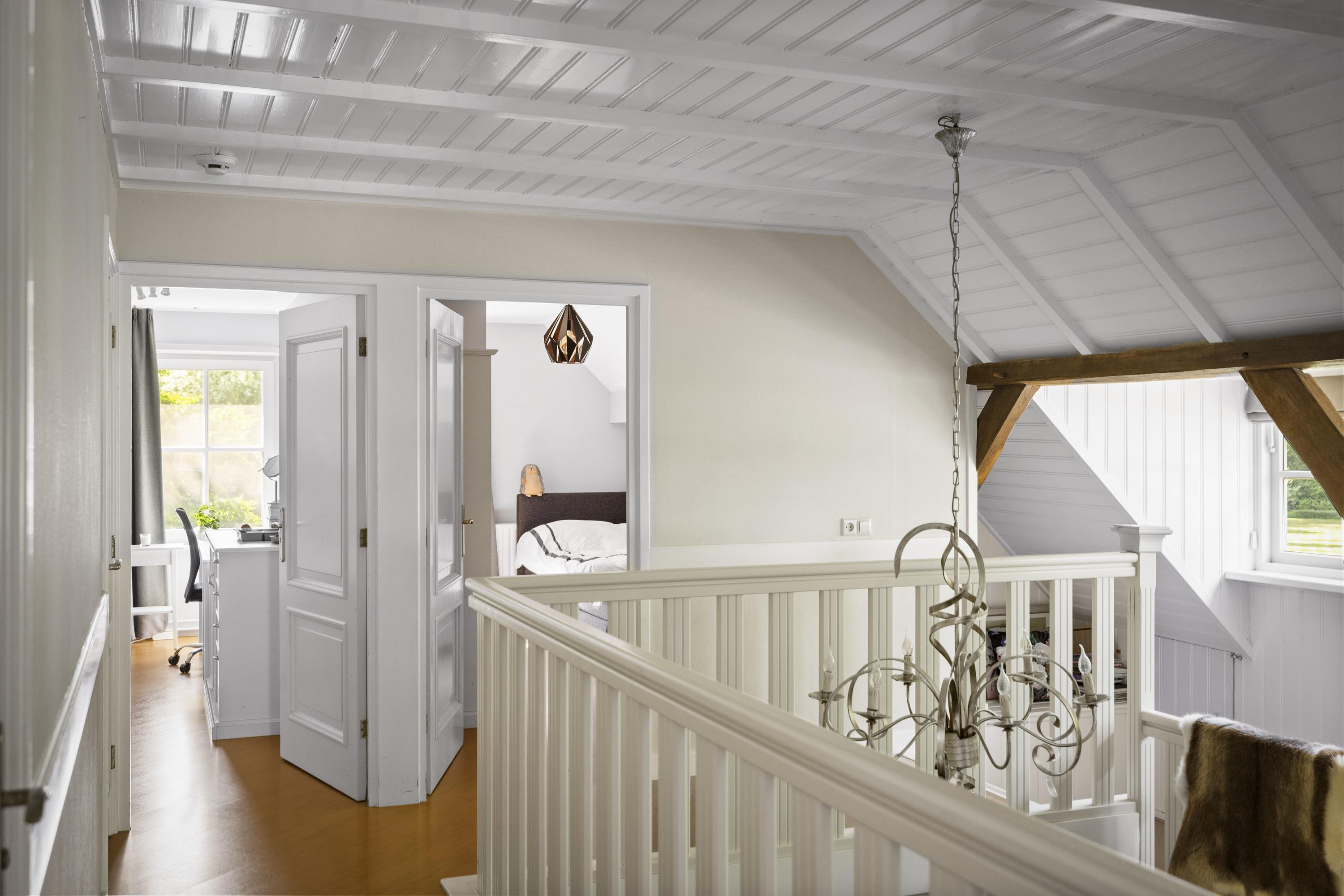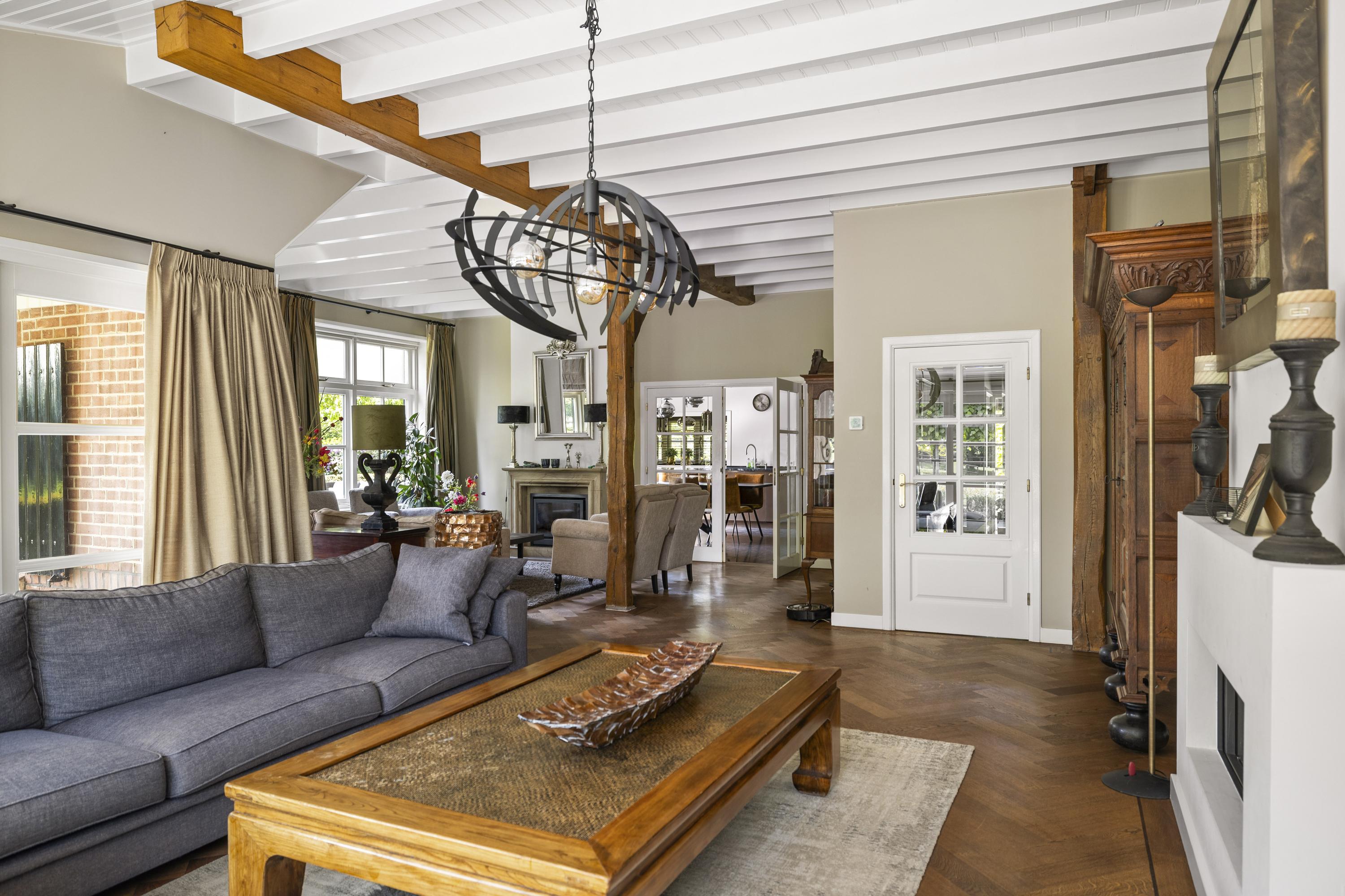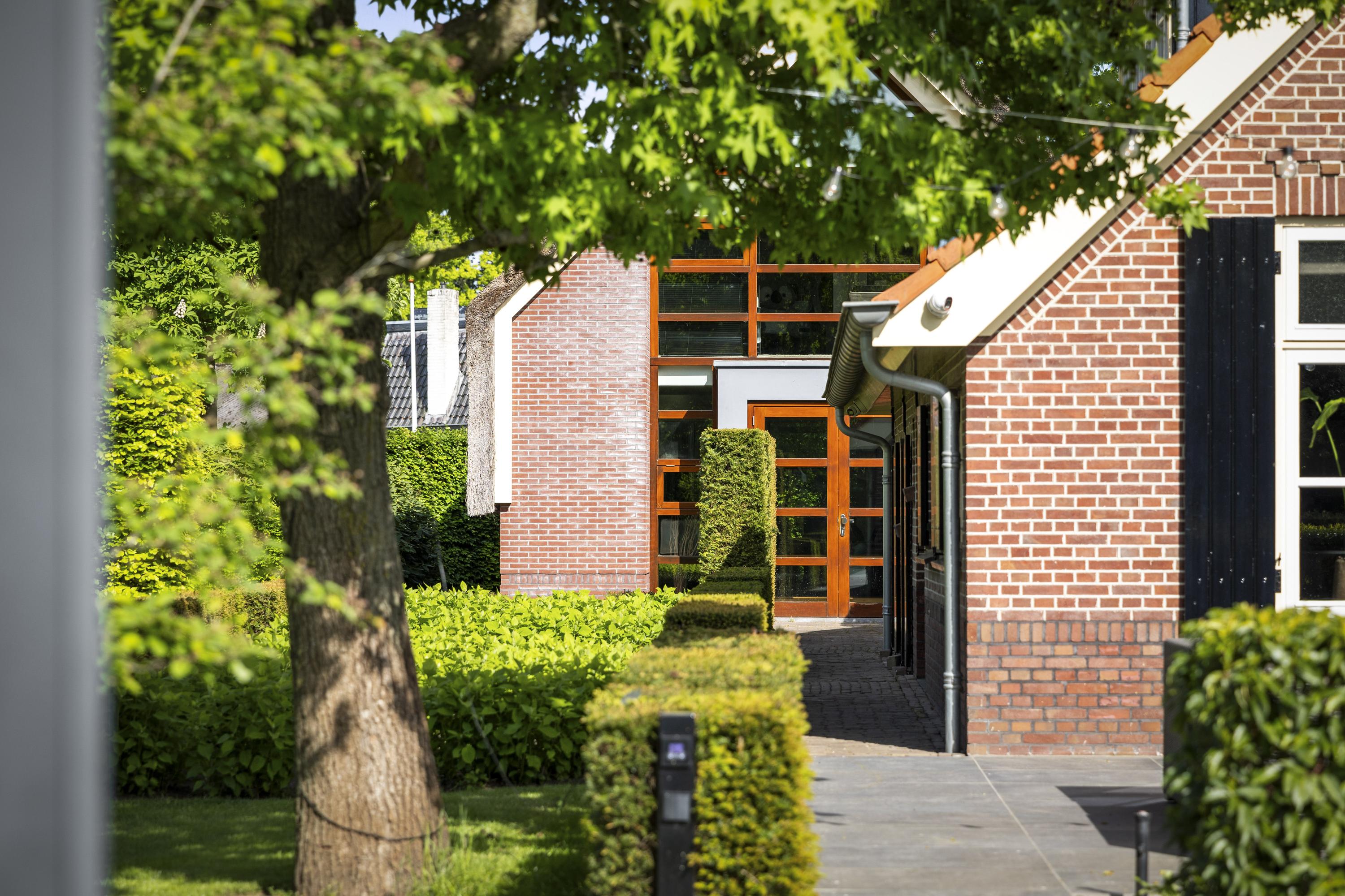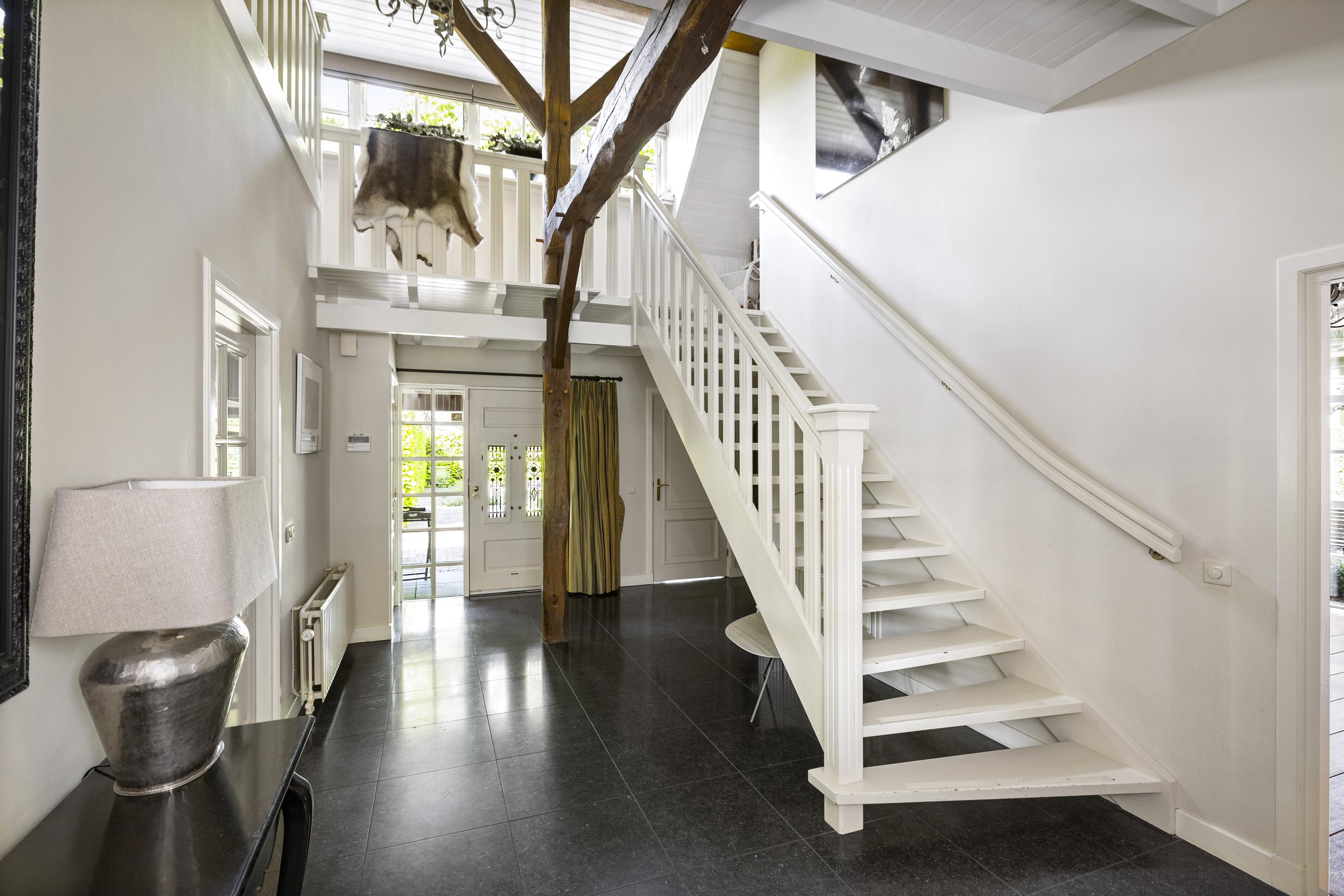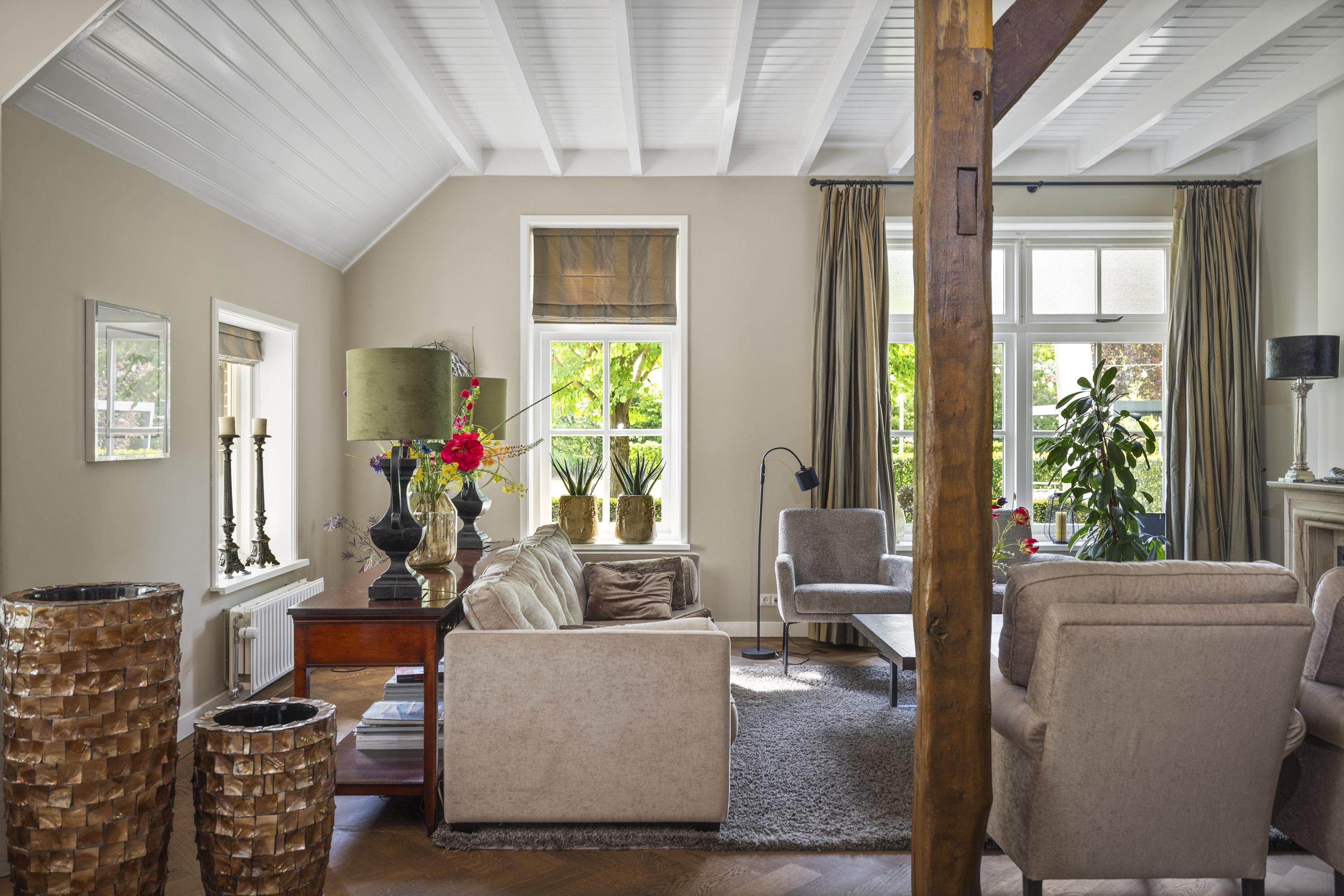 La residencia principal, erigida por primera vez en 1935 y renovada con esmero en los últimos años, ofrece actualmente 258 m² habitables, donde la utilización de piedra natural y parquet de roble en espiga imprime un ritmo cálido y acogedor. Cuatro dormitorios, dos baños y un luminoso vestíbulo central fluyen en un interior artesanal de discreto refinamiento. La cocina, de Lodder Keukens, está pensada tanto para el día a día como para reuniones sociales, con frentes de tonos cobrizos y encimeras de mármol. Los espacios de estar cuentan con dos chimeneas y vistas a jardines cuidados, establos y huertos.