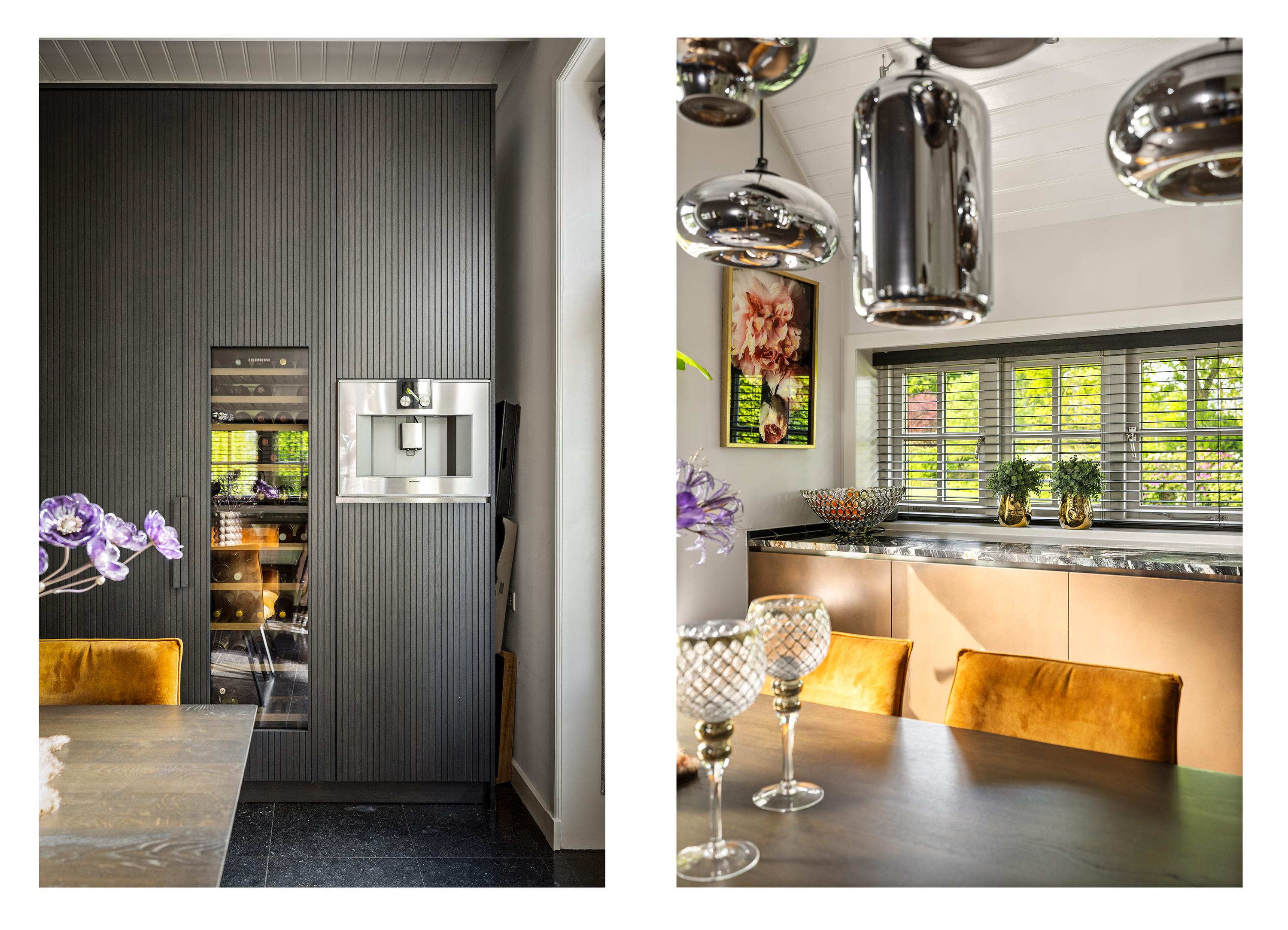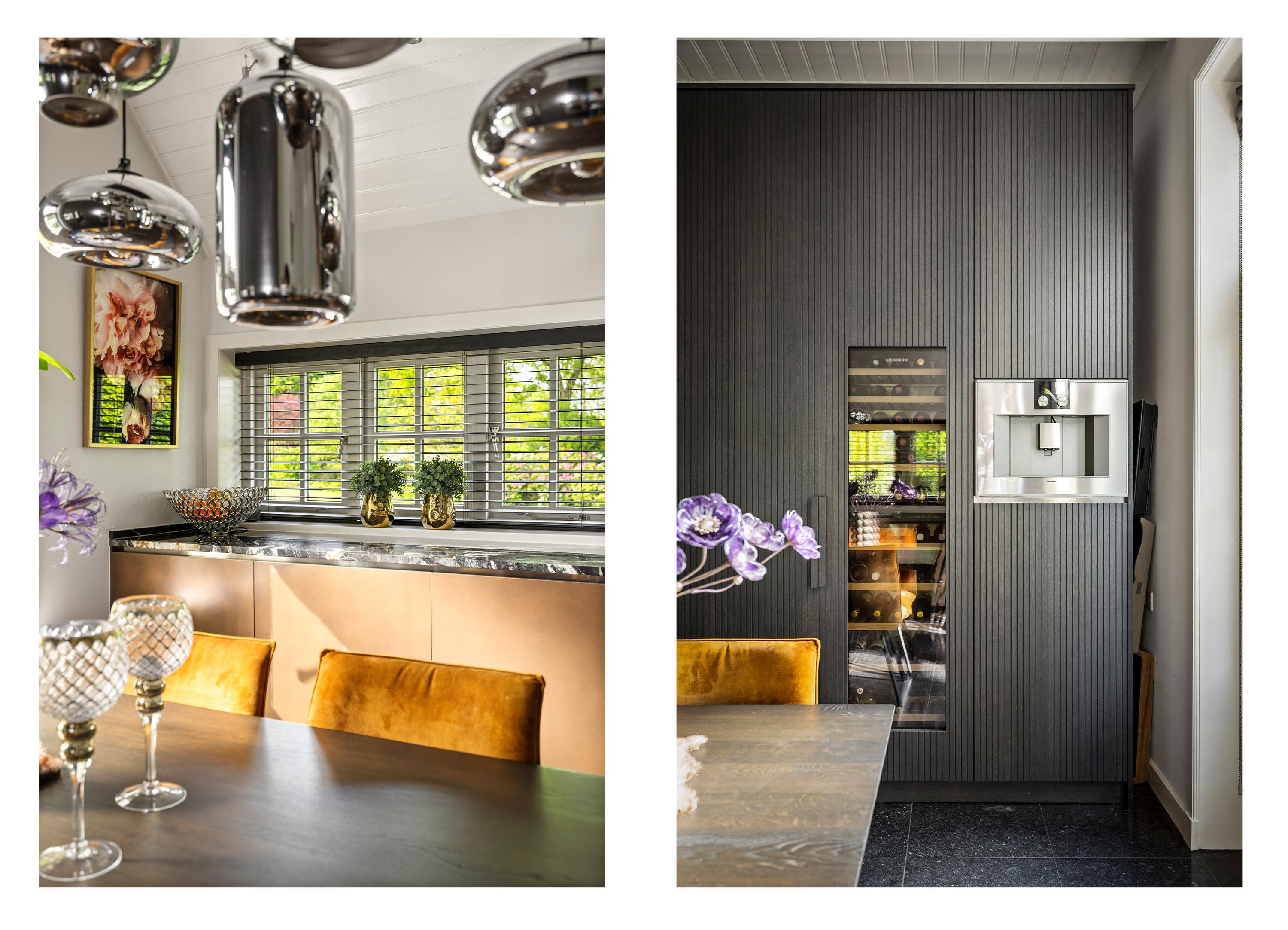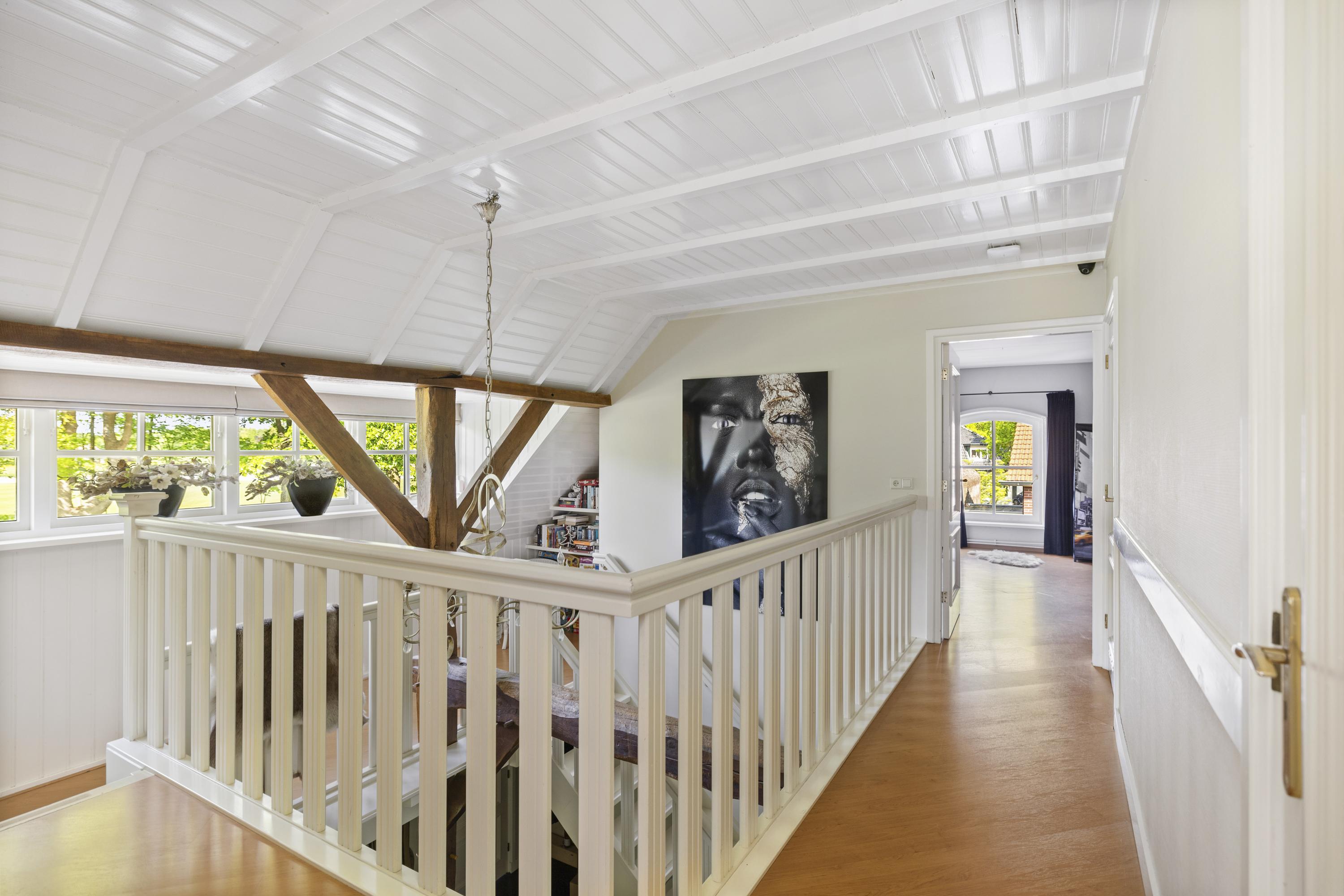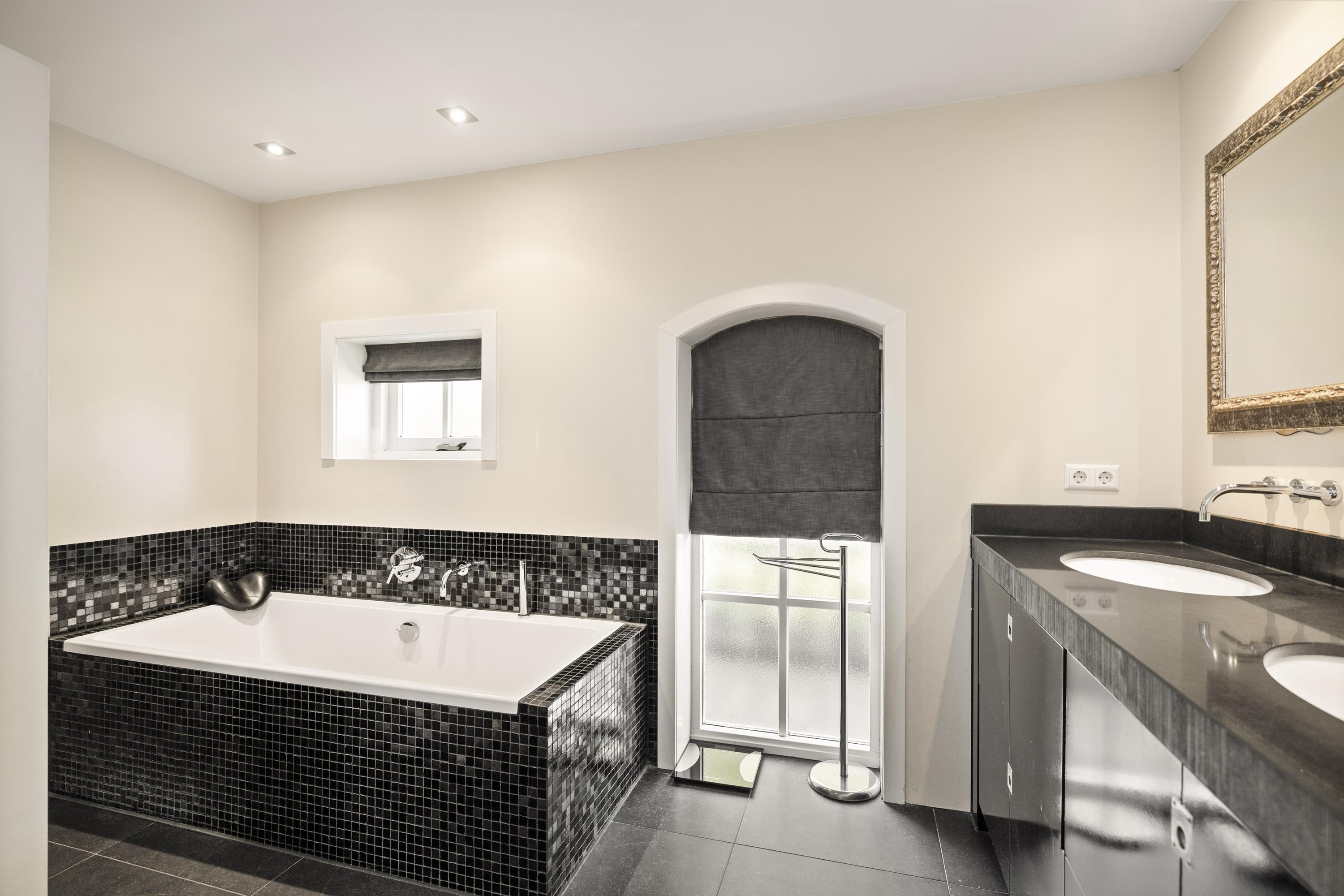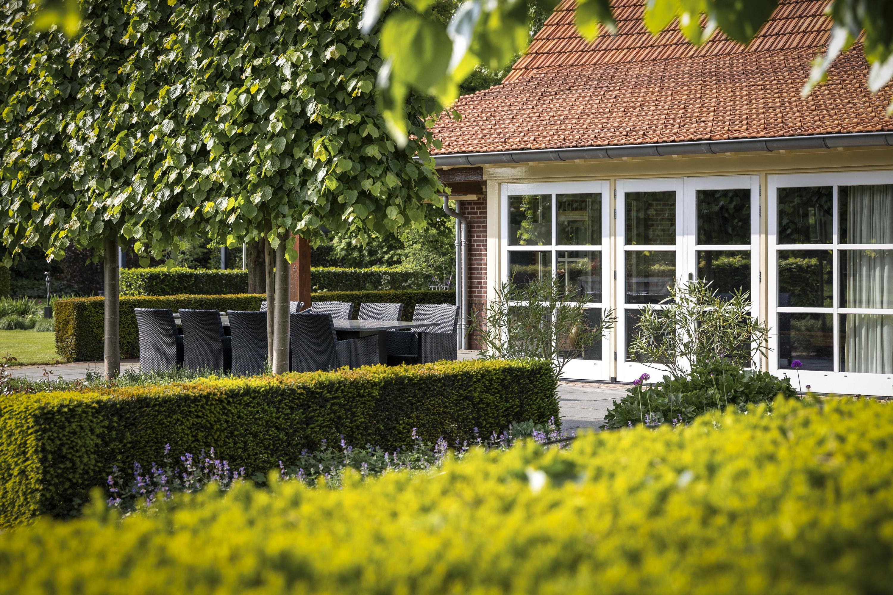 La residencia principal, erigida por primera vez en 1935 y renovada con esmero en los últimos años, ofrece actualmente 258 m² habitables, donde la utilización de piedra natural y parquet de roble en espiga imprime un ritmo cálido y acogedor. Cuatro dormitorios, dos baños y un luminoso vestíbulo central fluyen en un interior artesanal de discreto refinamiento. La cocina, de Lodder Keukens, está pensada tanto para el día a día como para reuniones sociales, con frentes de tonos cobrizos y encimeras de mármol. Los espacios de estar cuentan con dos chimeneas y vistas a jardines cuidados, establos y huertos.