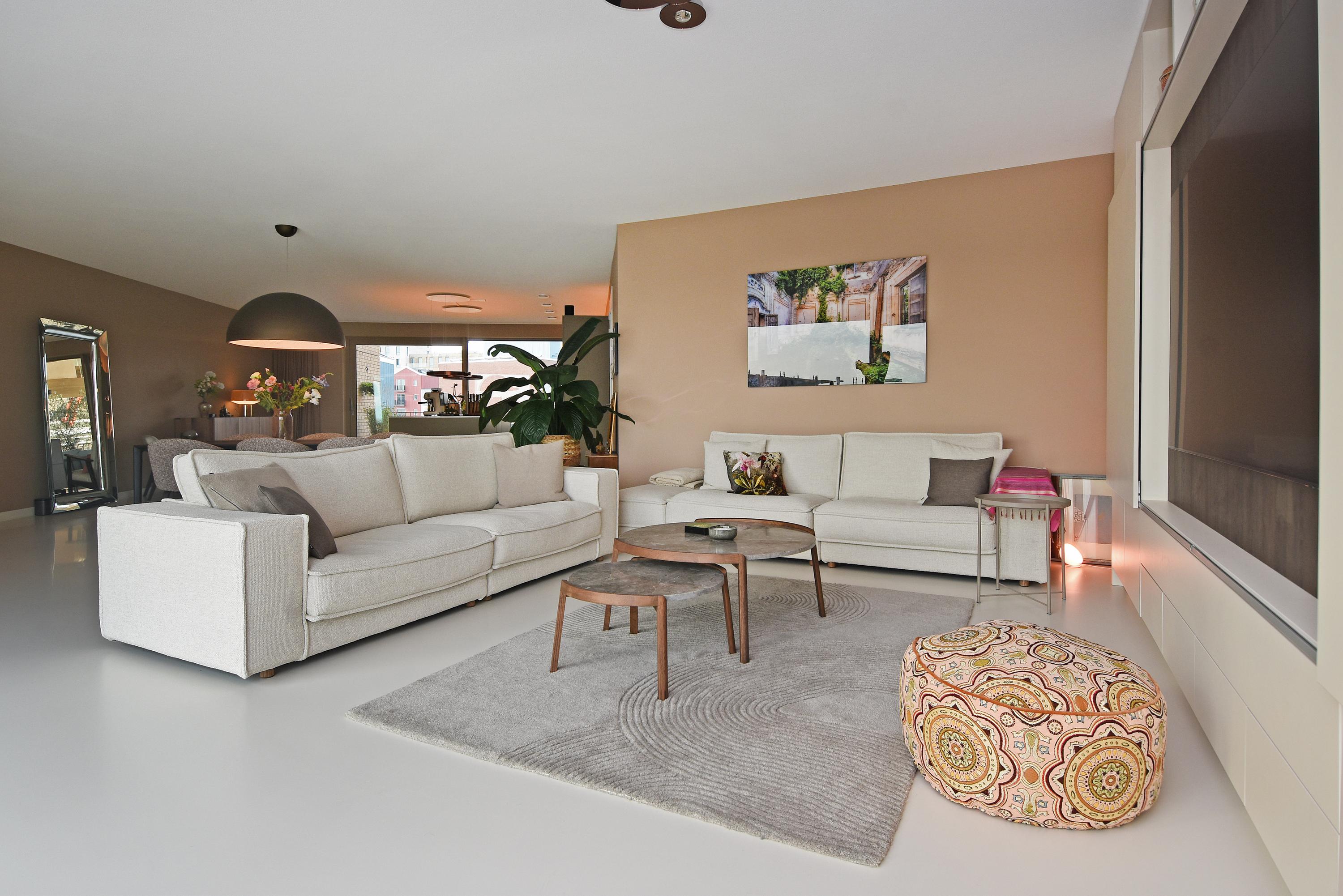 Aan de voorzijde bevindt zich het zitgedeelte met een stijlvolle, op maat gemaakte kastenwand met afsluitbare werkplek. Aan de achterzijde ligt de designkeuken met kookeiland en alle denkbare luxe inbouwapparatuur, waaronder een inductiekookplaat met geïntegreerde afzuiging, Quooker, vaatwasser, combi-oven, ruime koelkast en aparte ruime vriezer. Vanuit de keuken opent de grote schuifpui naar het riante balkon, waar u in alle rust kunt genieten van de middag- en avondzon.