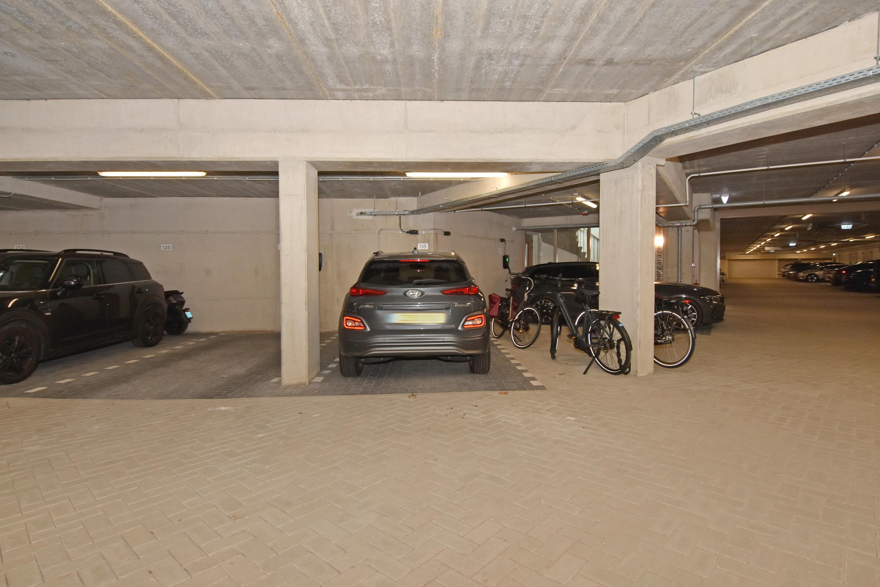 In de onderbouw bevinden zich een eigen ruime berging (van 4 meter hoog) en een privéparkeerplaats, inclusief eigen laadpunt, in de afgesloten parkeergarage.
