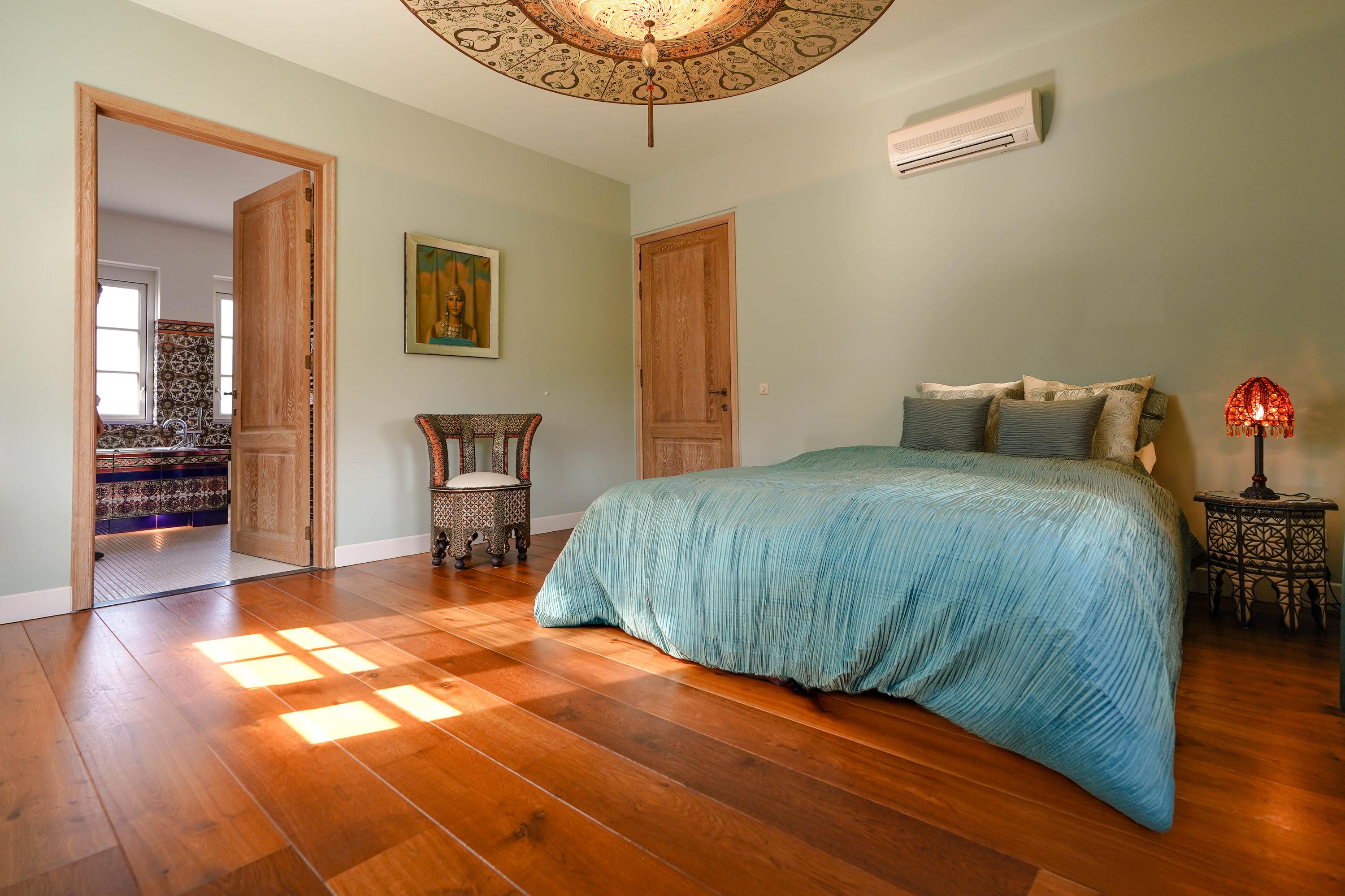 The large master bedroom has air conditioning and direct access to a private terrace and the en-suite bathroom.