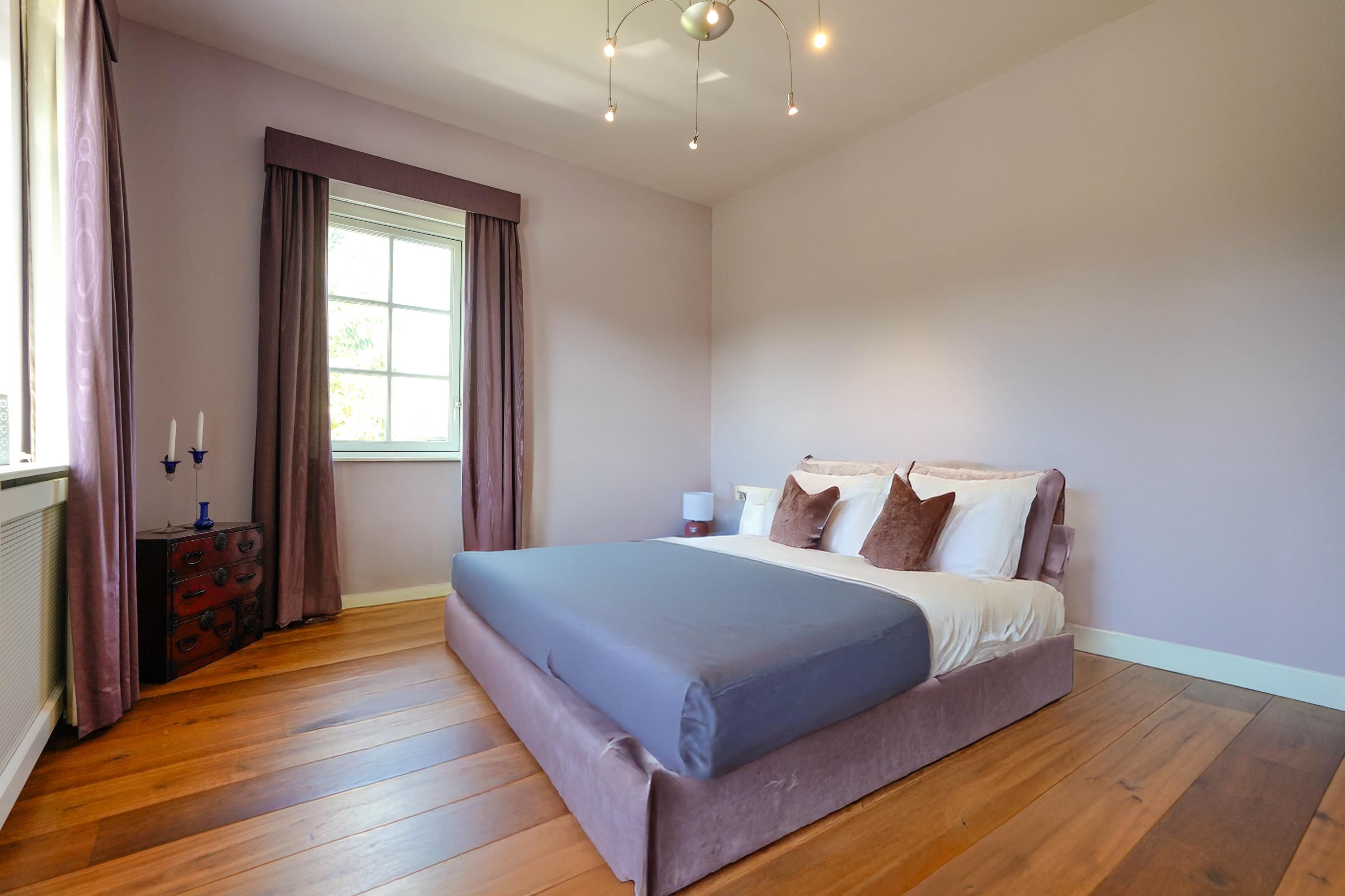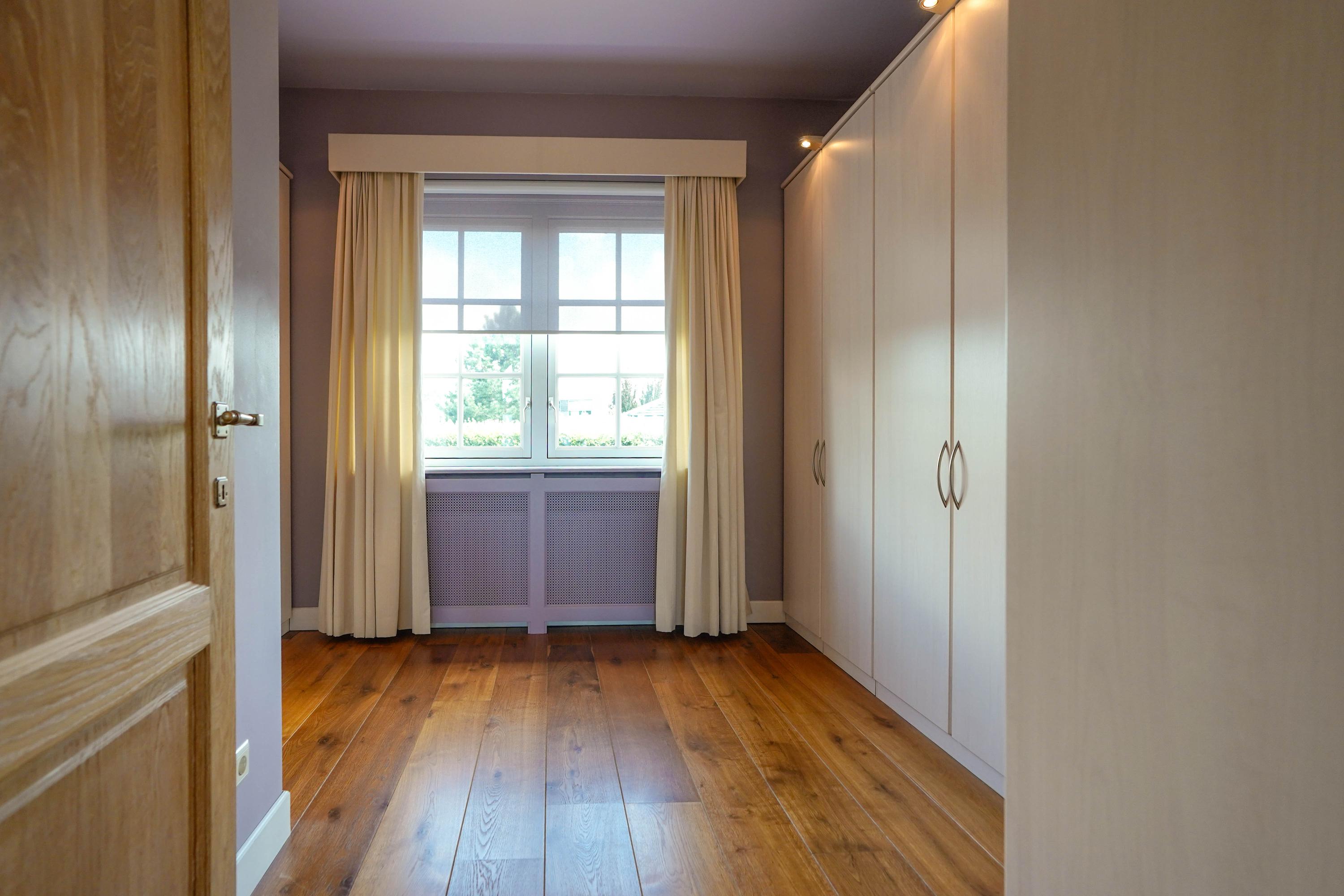 A spacious landing gives access to all rooms. The ceiling height is 2.9 meters throughout. Solid wood flooring (except in bathroom and toilet) is laid over the concrete subfloor across all rooms.