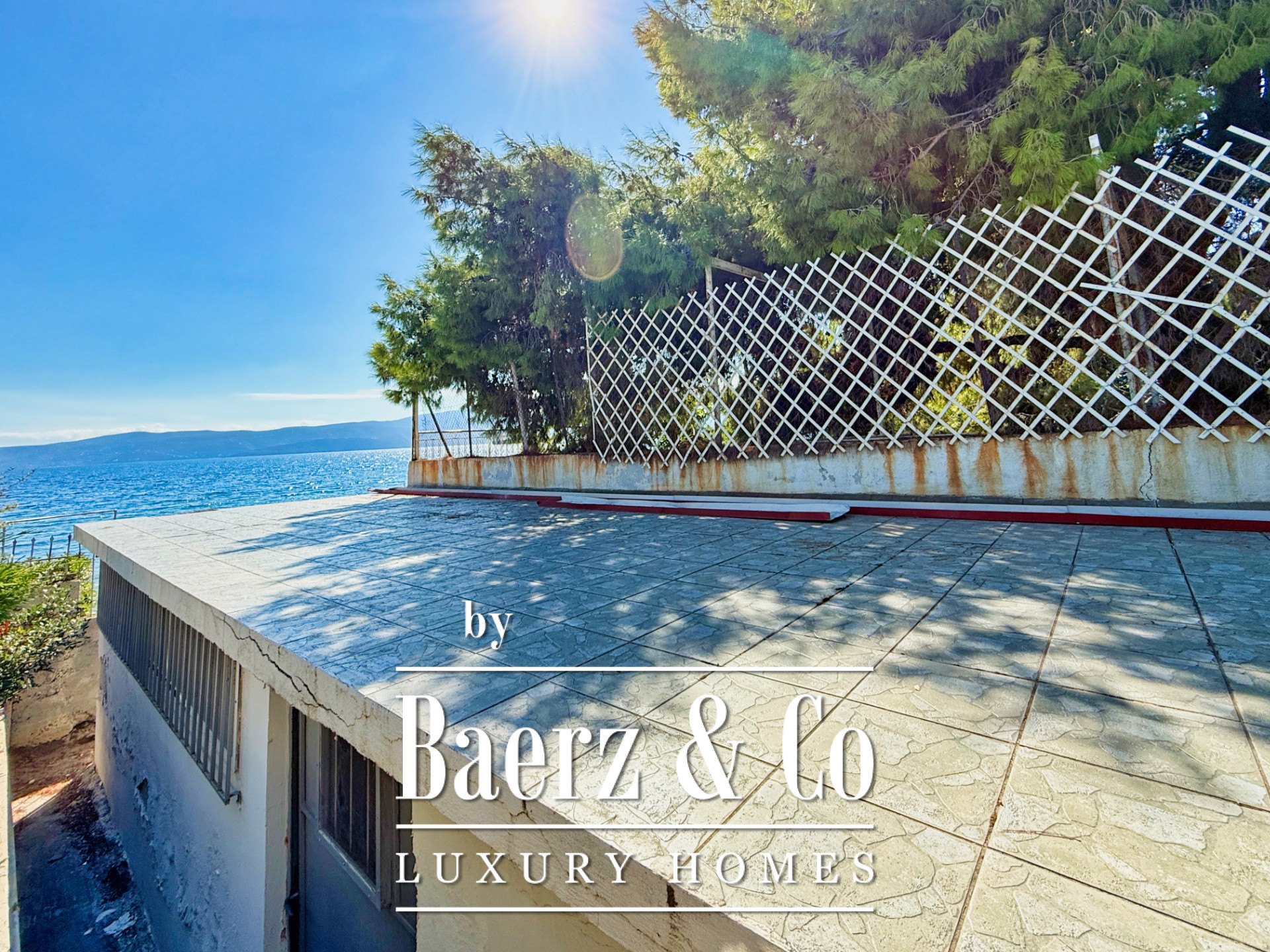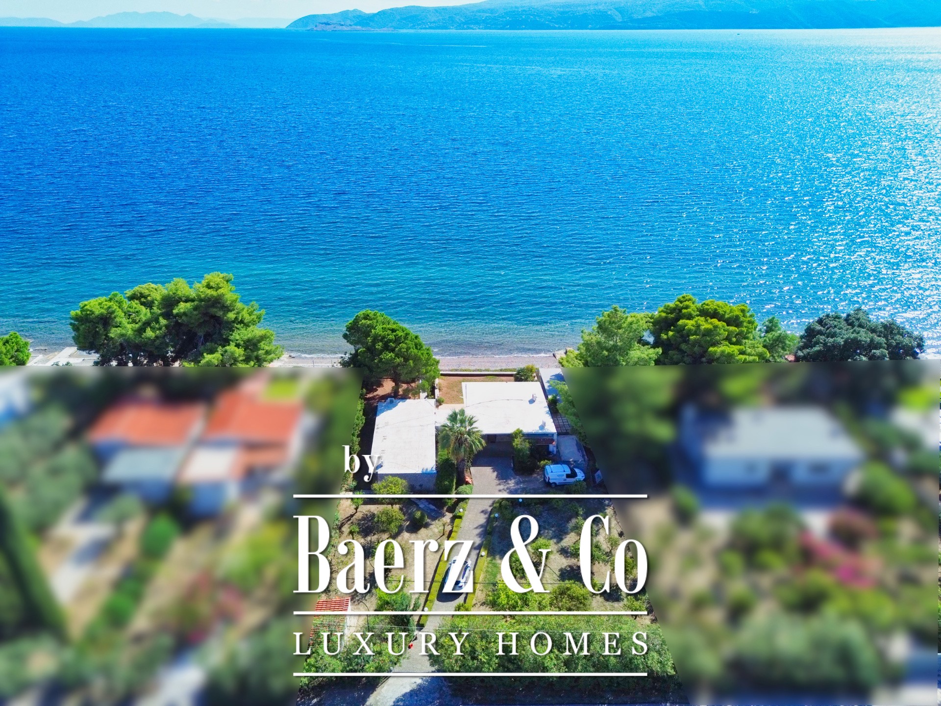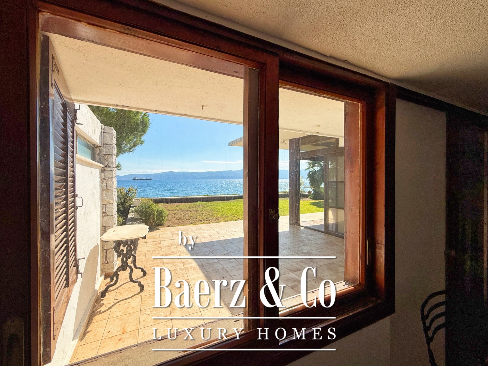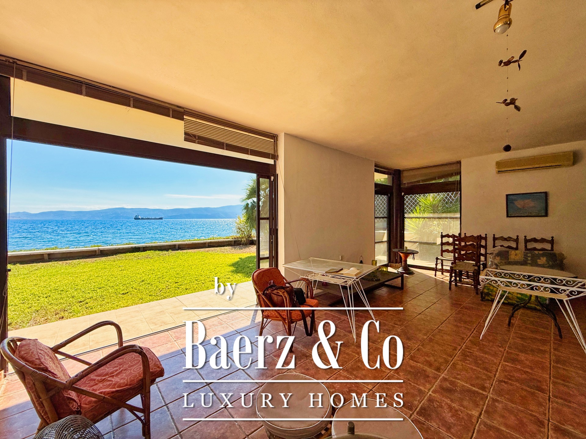Deze vrijstaande woning in Agioi Theodoroi bevindt zich op een unieke locatie direct aan zee in Korinthe, op een perceel van 1.400 m² met panoramisch en onbelemmerd uitzicht op het water. Gebouwd in 1967 omvat de woning van 140 m² vijf slaapkamers, twee badkamers, een keuken, een woonkamer en een lichte zitkamer omgeven door royale raampartijen. De verbinding tussen binnen en buiten is direct, waarbij de woonkamer overvloedig natuurlijk licht ontvangt en elke beleving verankert aan de zee vlakbij.