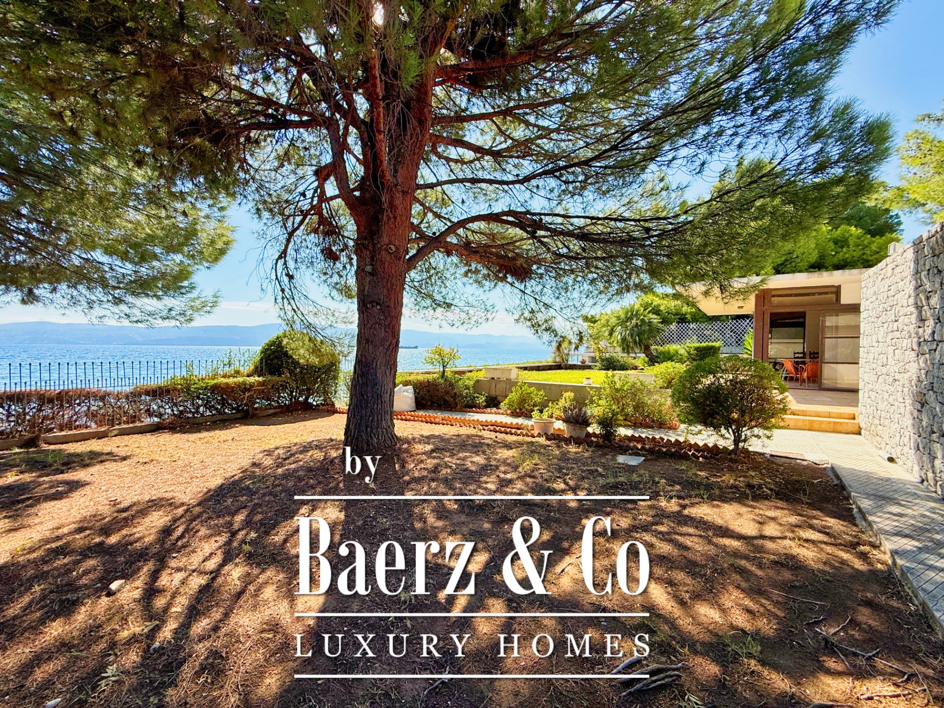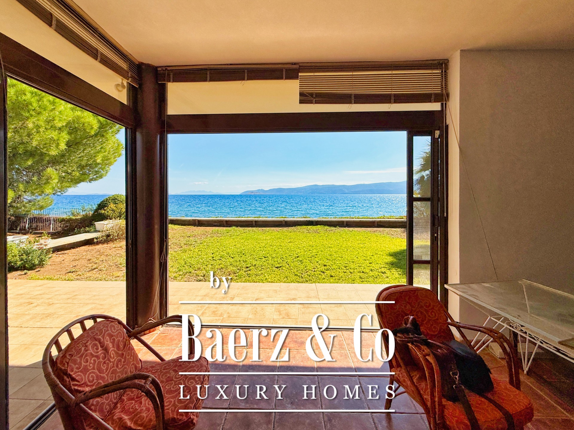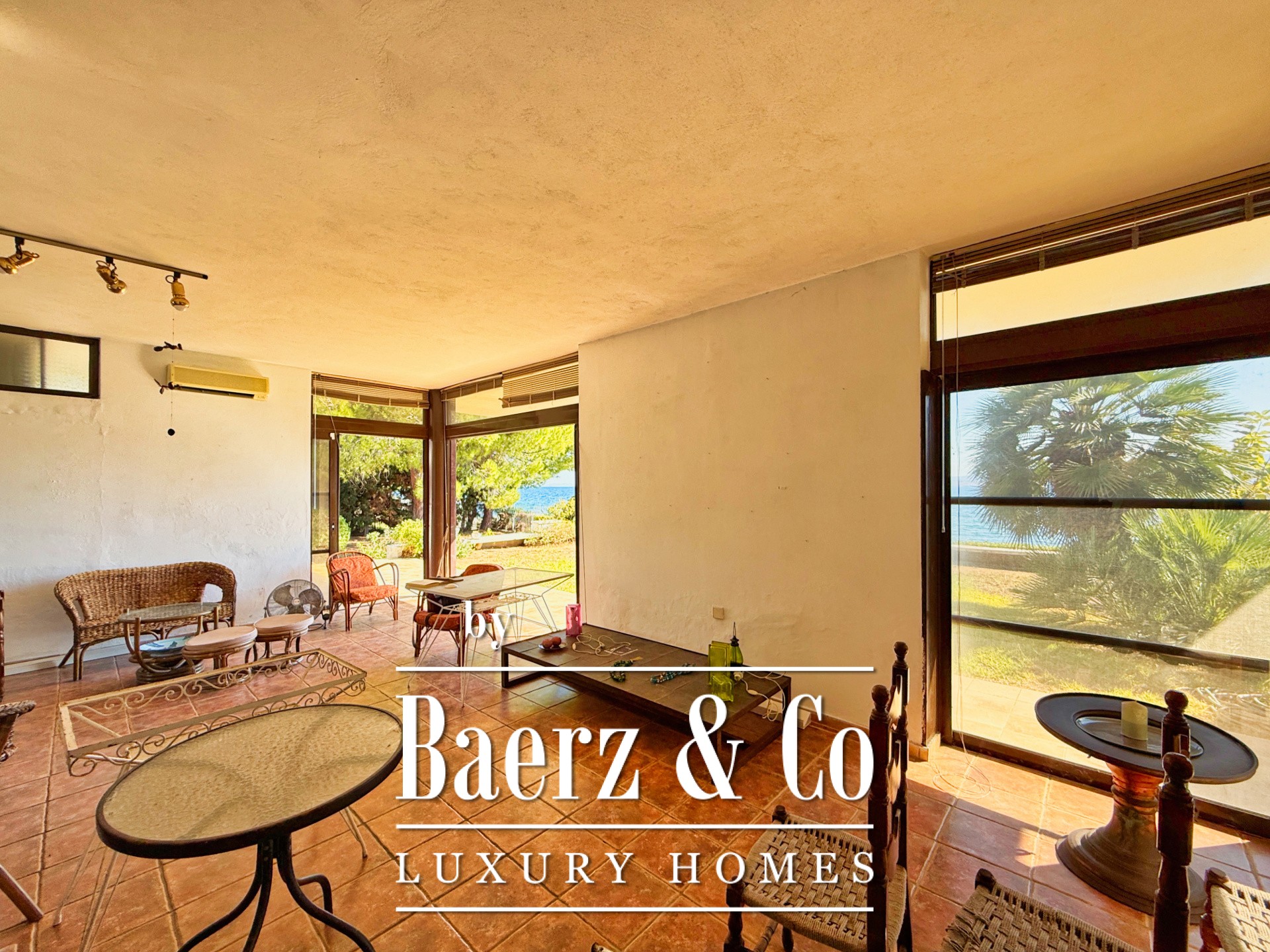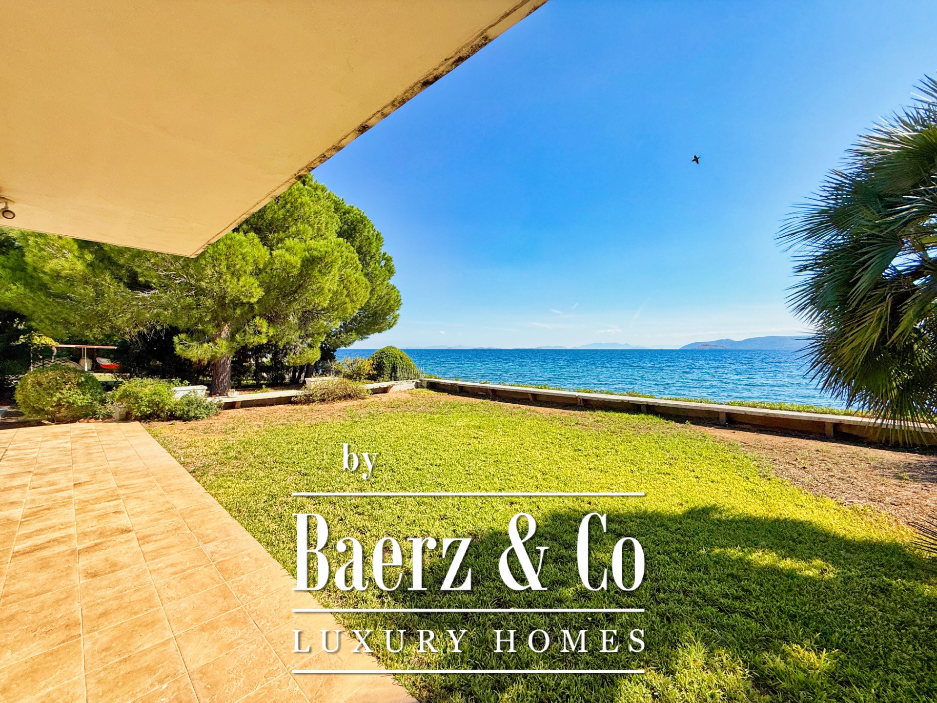 Deze vrijstaande woning in Agioi Theodoroi bevindt zich op een unieke locatie direct aan zee in Korinthe, op een perceel van 1.400 m² met panoramisch en onbelemmerd uitzicht op het water. Gebouwd in 1967 omvat de woning van 140 m² vijf slaapkamers, twee badkamers, een keuken, een woonkamer en een lichte zitkamer omgeven door royale raampartijen. De verbinding tussen binnen en buiten is direct, waarbij de woonkamer overvloedig natuurlijk licht ontvangt en elke beleving verankert aan de zee vlakbij.