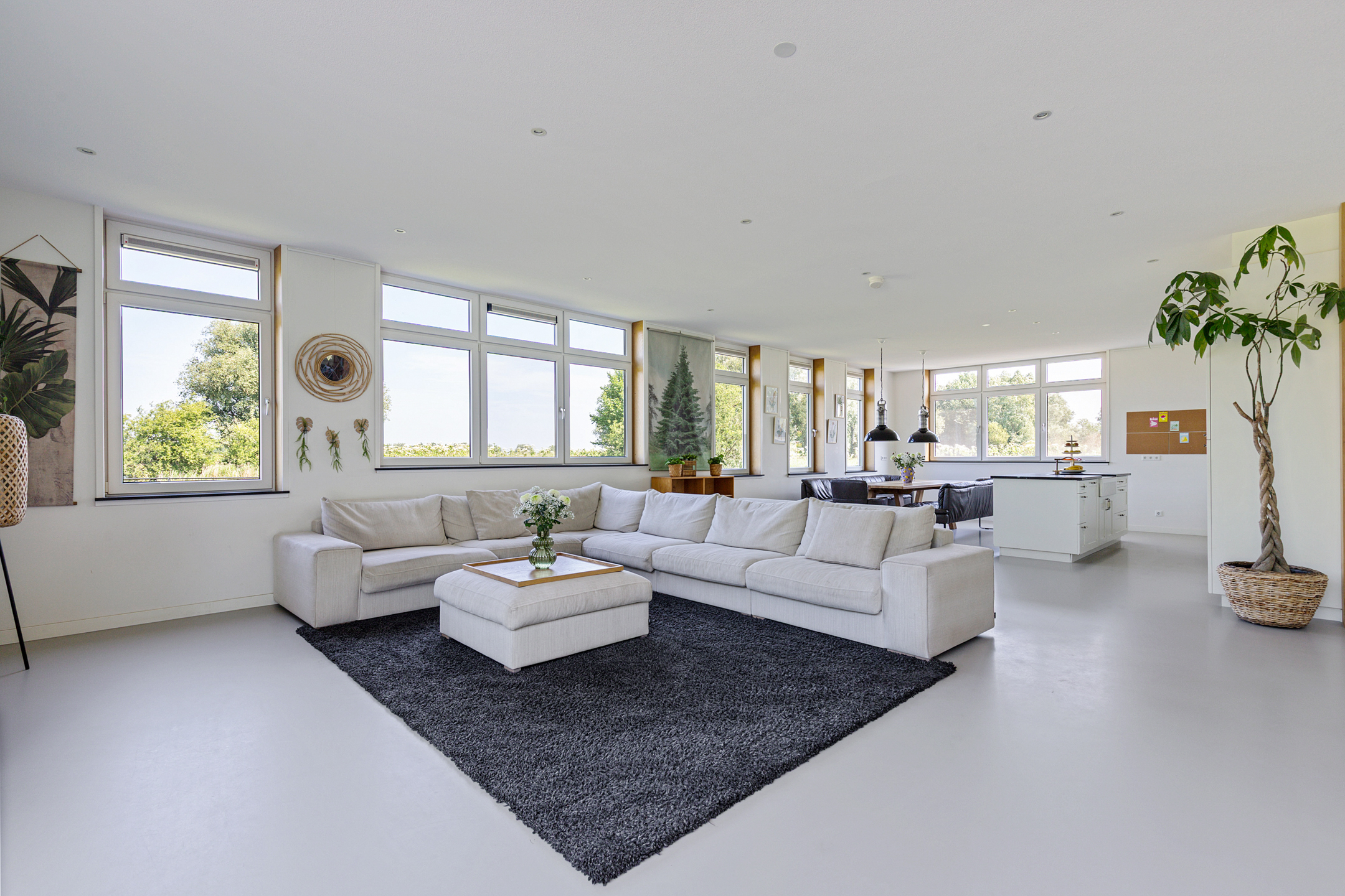 De gehele woning is afgewerkt met een moderne gietvloer inclusief vloerverwarming.