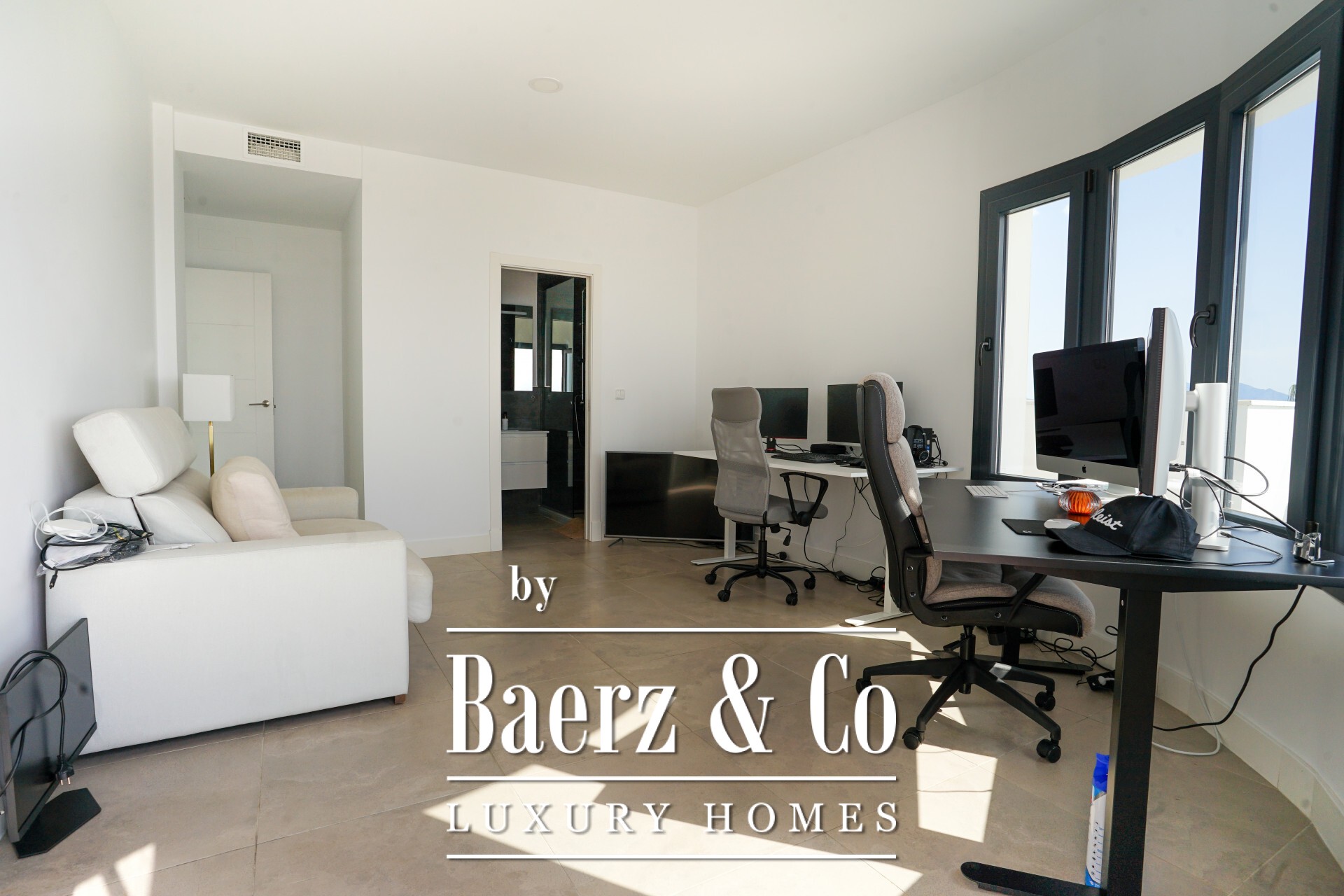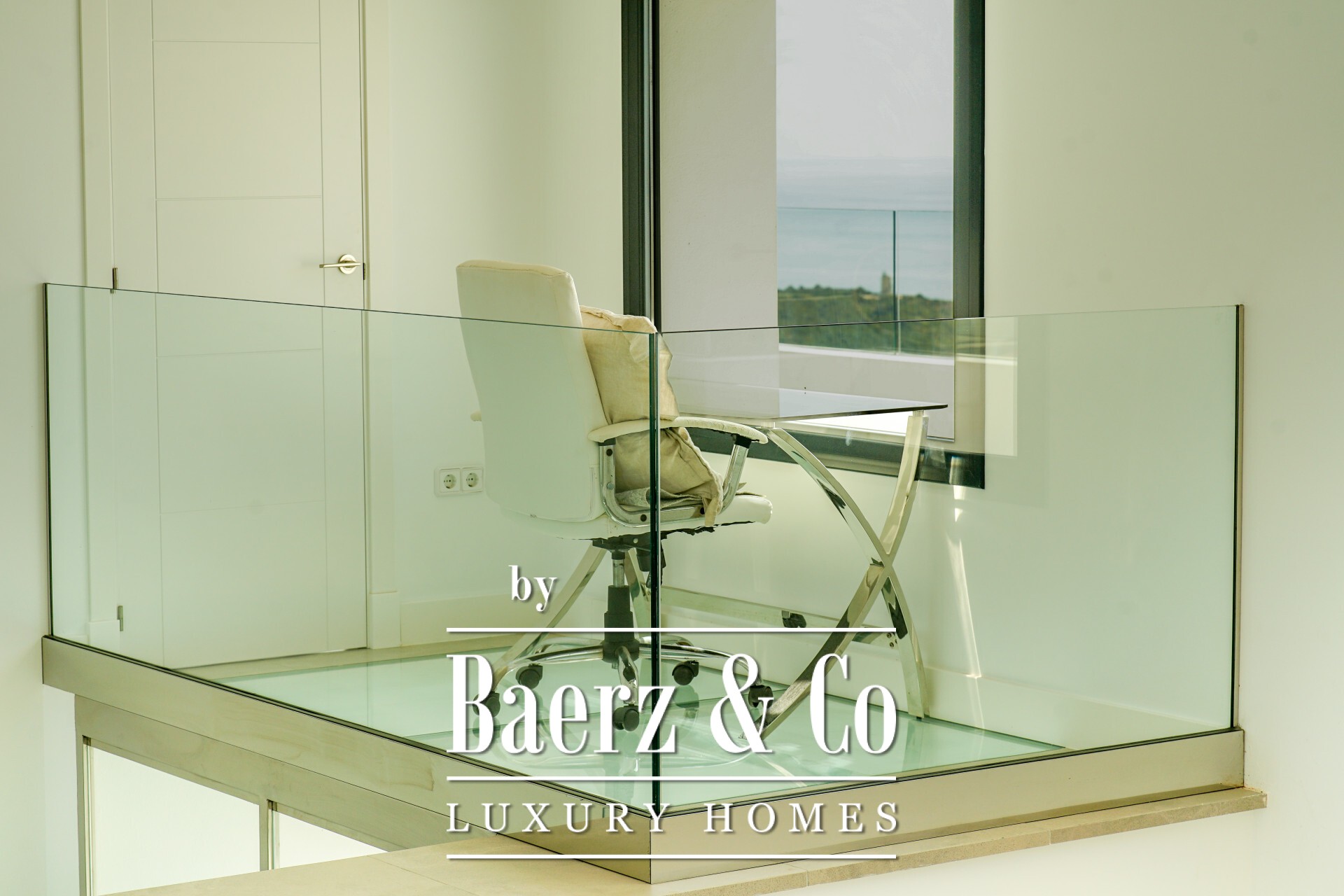 Deze moderne villa in Alcaidesa met panoramisch zeezicht zet een zeldzame standaard voor hedendaags wonen aan de Middellandse Zee. Voltooid in 2020, rustig gelegen op een verhoogd perceel van 1.200 m² met circa 500 m² woonoppervlak verspreid over diverse fraai ontworpen niveaus. Brede terrassen van 221,91 m² lopen uit op een aangelegde tuin met privézwembad, waarbij lichte, open binnenruimten moeiteloos overgaan in het verre uitzicht op zee, Gibraltar en de Noord-Afrikaanse kustlijn.