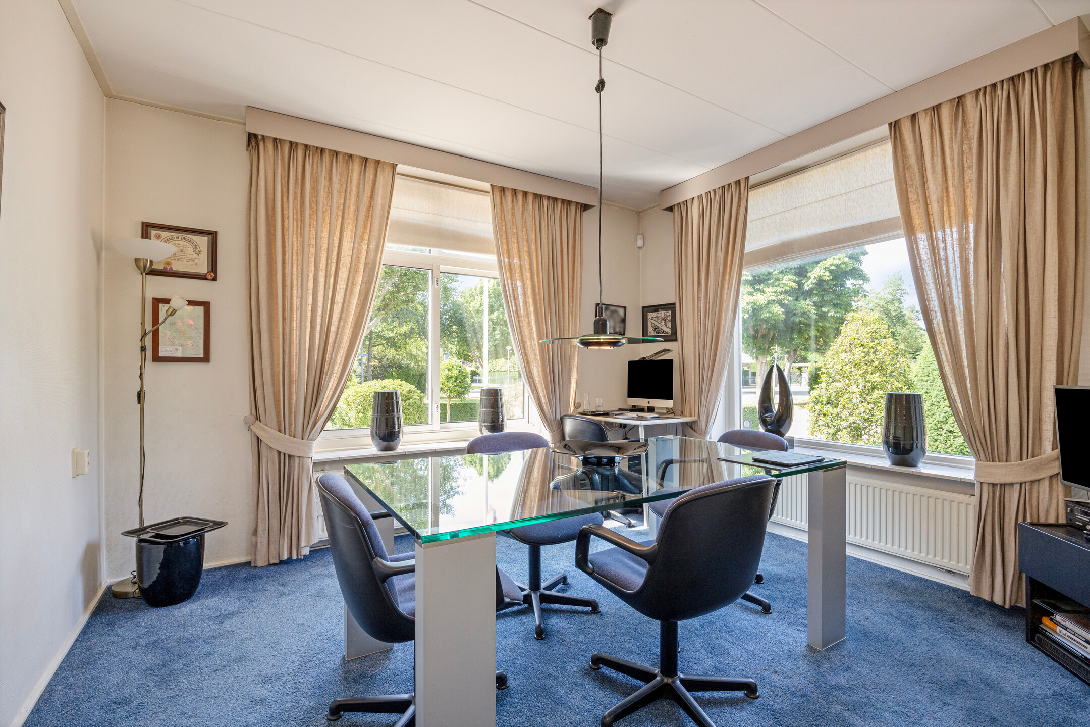 De ruime en lichte werkkamer met vaste kast bevindt zich aan de voorzijde op de hoek van de villa direct aan rechterzijde van de gang.