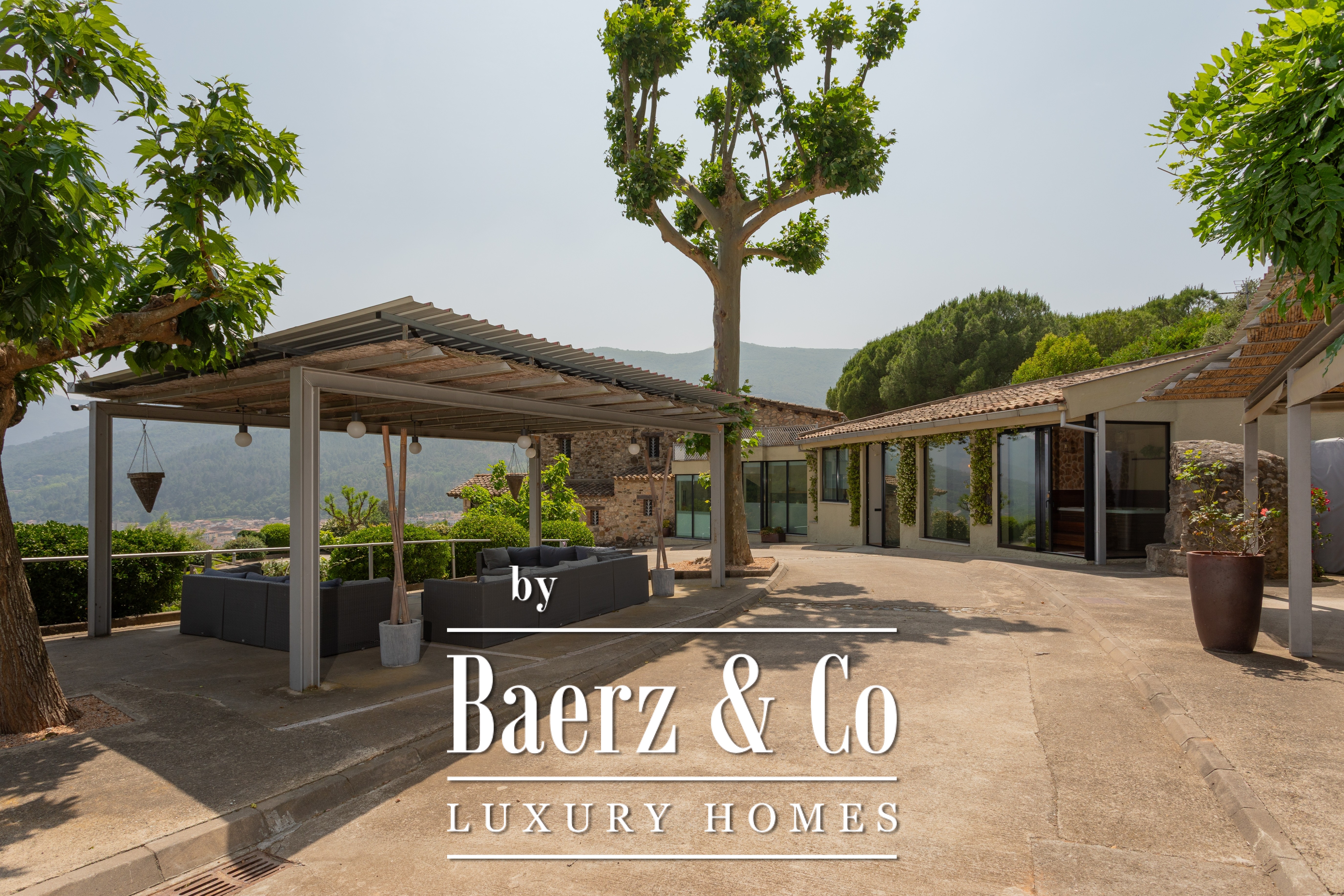 Masia te koop in Amer biedt een zeldzame kans om een authentiek stuk Catalaanse geschiedenis te verwerven. Deze indrukwekkende masia uit 1720 is met grote zorg gerestaureerd en ligt op een privélandgoed van 20.245 m², verheven boven de Amer-vallei met een weids uitzicht op La Selva en de omliggende bergen. De sfeer wordt bepaald door natuursteen, licht en ruimte, terwijl er reeds een zorgvuldig uitgewerkt hospitalityconcept operationeel is, waardoor zowel een gerieflijke levensstijl als bedrijfsmatige continuïteit is gegarandeerd. De hoofdwoning beschikt over vijf stijlvolle slaapkamers en zes badkamers, verfijnde leefruimtes en een professionele keuken. Hedendaags comfort en historisch erfgoed gaan moeiteloos samen dankzij airconditioning, verwarming en snel Wi-Fi in het gehele pand. Een wellnesssuite met jacuzzi en aparte relaxzones biedt extra ontspanning, aangevuld met diverse terrassen en een groot verlicht zwembad dat naadloos overgaat in de fraai aangelegde tuinen.